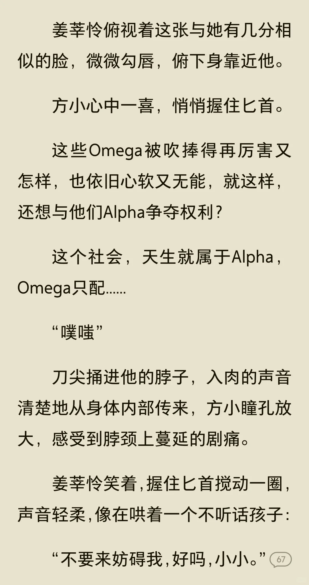 姜莘怜被系统绑定,扮演恶毒女配对此她分外自信:“交给我吧!”\n几个世界过去后,某系统询问惆怅不已的086:“你怎么不去帮你宿主完成任务?”\n086:“哦不用,我的宿主快把男女主干掉了。”\n \n【娇艳明媚深受宠爱的贵妃娘娘&清贵俊朗深受宠信的丞相大人】\n贵妃姜莘怜,深受皇帝宠爱,赐居蒹葭宫,育有皇三子。\n随着时间的推移,有人发现:哎?皇三子怎么长得有点像那位权倾朝野的丞相大人啊?!\n \n【真圣父真绅士哥哥&伪傲娇真恶毒妹妹 (无血缘)】\n事实证明,做人不能太坏,不然只会被欺负得边哭边骂\n而某人则是一边诚恳道歉,一边继续。\n \n【冷漠无情武力超高alpha&娇柔“无害”钓系omega】\n柔弱omega能有什么坏心思,她只是想要你的命罢了\n \n【温和疏离但是会黑化总裁&甜美娇俏但超恶劣偷心贼】\n \n【痞气十足糙汉大佬&胆小爱哭包菟丝子】\n \n【天生恶人颜嘴硬心软“警官”先生&活泼热情嘴超甜帮凶小姐】\n#快穿文 #古代言情 #甜宠