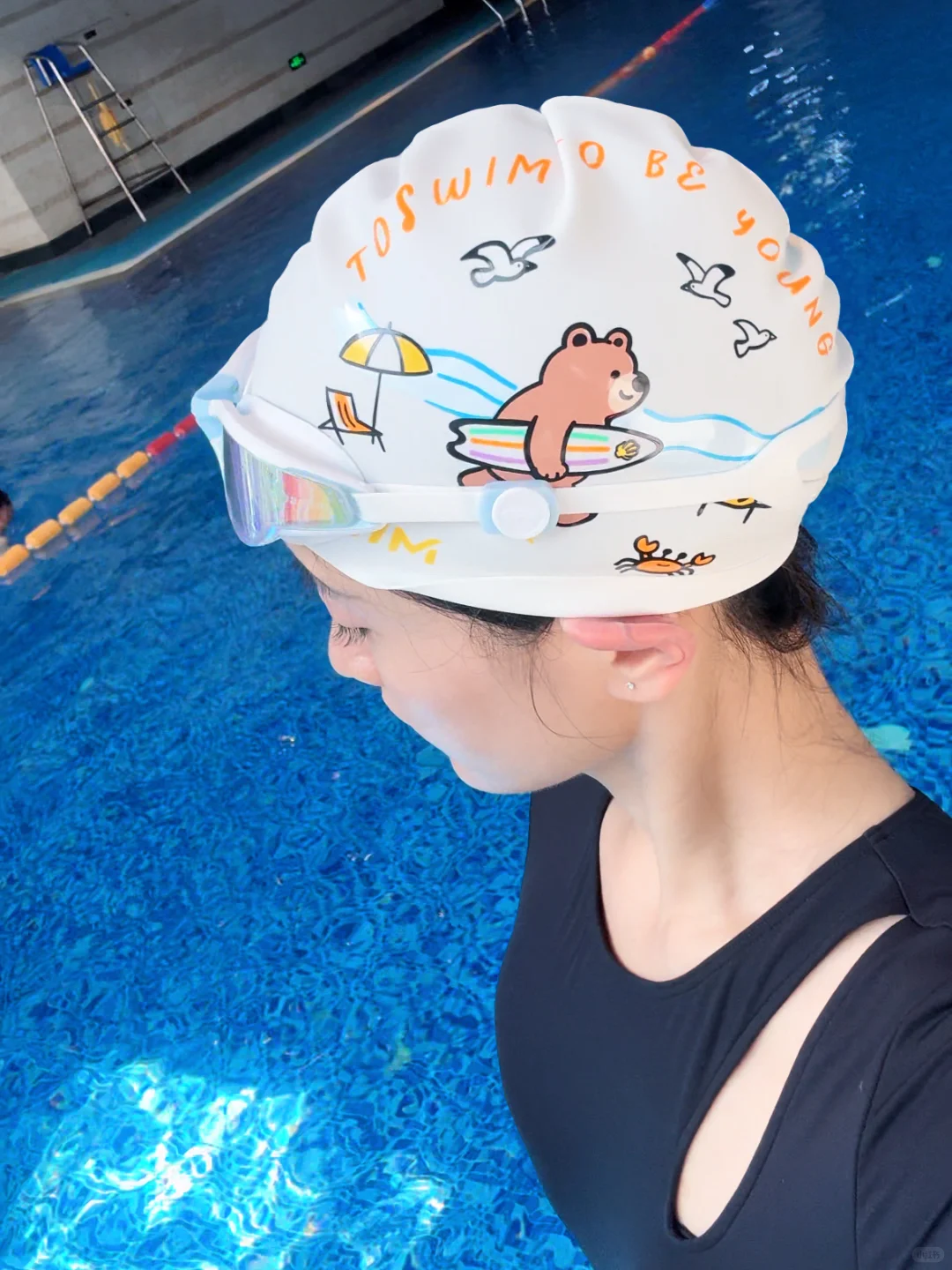 游泳人不游是不可能的[坏笑R]\n冬天也要冲!!!\n今天穿TOSWIM暗夜之眼\n胸前小镂空 凸显颈部线条\n半镂空美背 性感优雅✨\n塑形美腹网 显瘦效果更好\n还可以帮助游泳时收紧核心\n原纱防晒 户外出海玩水更安心🏝️\nA类柔软亲肤的速干浴巾 轻巧便携\nUPF50➕高倍防晒 户外用也很棒\n新款的🐻熊熊假日泳帽尊嘟好可爱~\n高弹不勒头 加大款 长发也轻松收纳\n#TOSWIM#泳镜侠#TOSWIM连体泳衣\n#TOSWIM暗夜之眼#熊熊泳帽#游泳打卡\n#运动万粉助力计划 #游泳 #运动卡皮巴拉