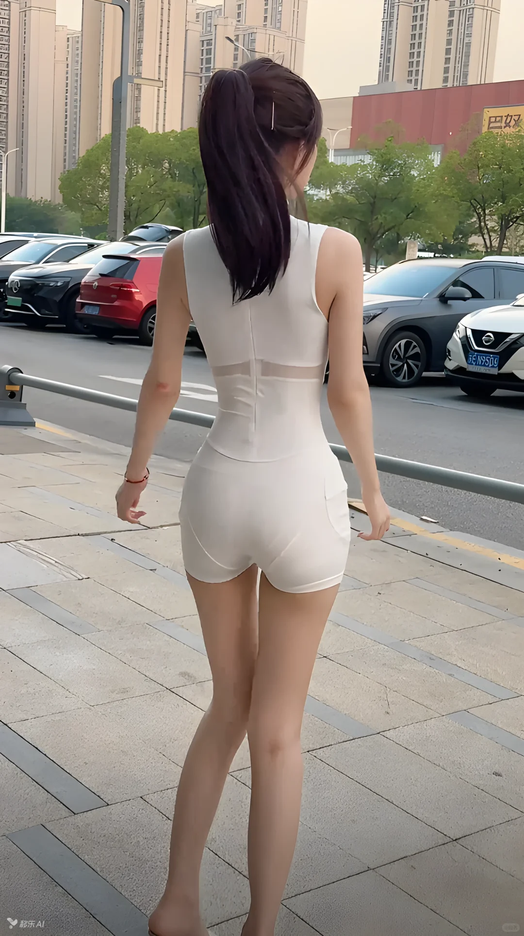 停车场的光影游戏\n她靠车前盖站着\n米白色连体衣与金属车身\n碰撞出意外的高级感\n▪️ 无袖高领连体衣 —— 温度与风度的完美平衡\n垂坠感面料顺着身形流淌\n腰部褶皱设计暗藏显瘦魔法\n阔腿裤管被风扬起时\n露出的银色细带凉鞋成点睛之笔\n▪️ 高马尾发型 —— 活力感的灵魂注脚\n颅顶扯出的蓬松弧度\n鬓角碎发修饰颧骨线条\n发尾扫过后背时\n衣领处露出的脖颈更显纤长\n穿搭巧思: 金属扣腰带点明腰线\n手拿冰美式与车身颜色呼应\n在工业感场景里\n用柔软衣料制造视觉反差\n#穿搭女神范 #连体衣 #穿出完美身材 #白色穿搭 #肤白貌美显气质 #白色系搭配 #自信与舒适 #清爽白色系穿搭 #浅色系穿搭 #白色系