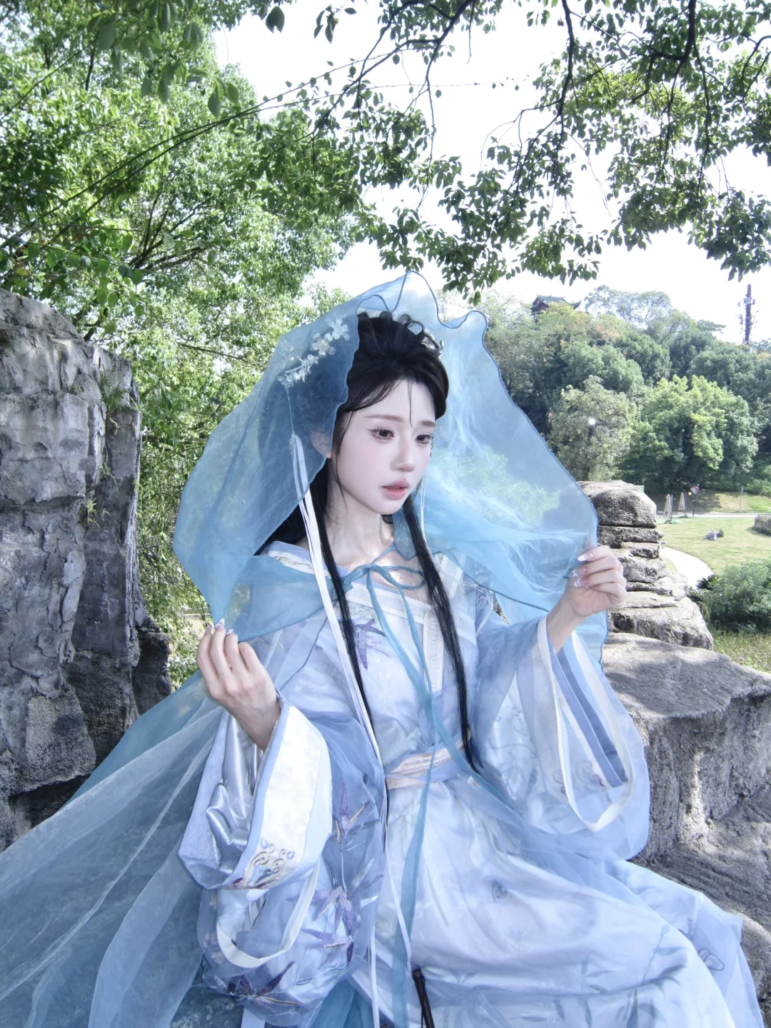 似是故人来\n蓝色斗篷还是太权威了\n#赣州郁孤台 #汉服体验 #古风妆造 #清冷感古装 #不到园林怎知春色如许 #无关风月我题序等你回 #雨纷纷旧故里草木深 #古风才是氛围感天花板吧