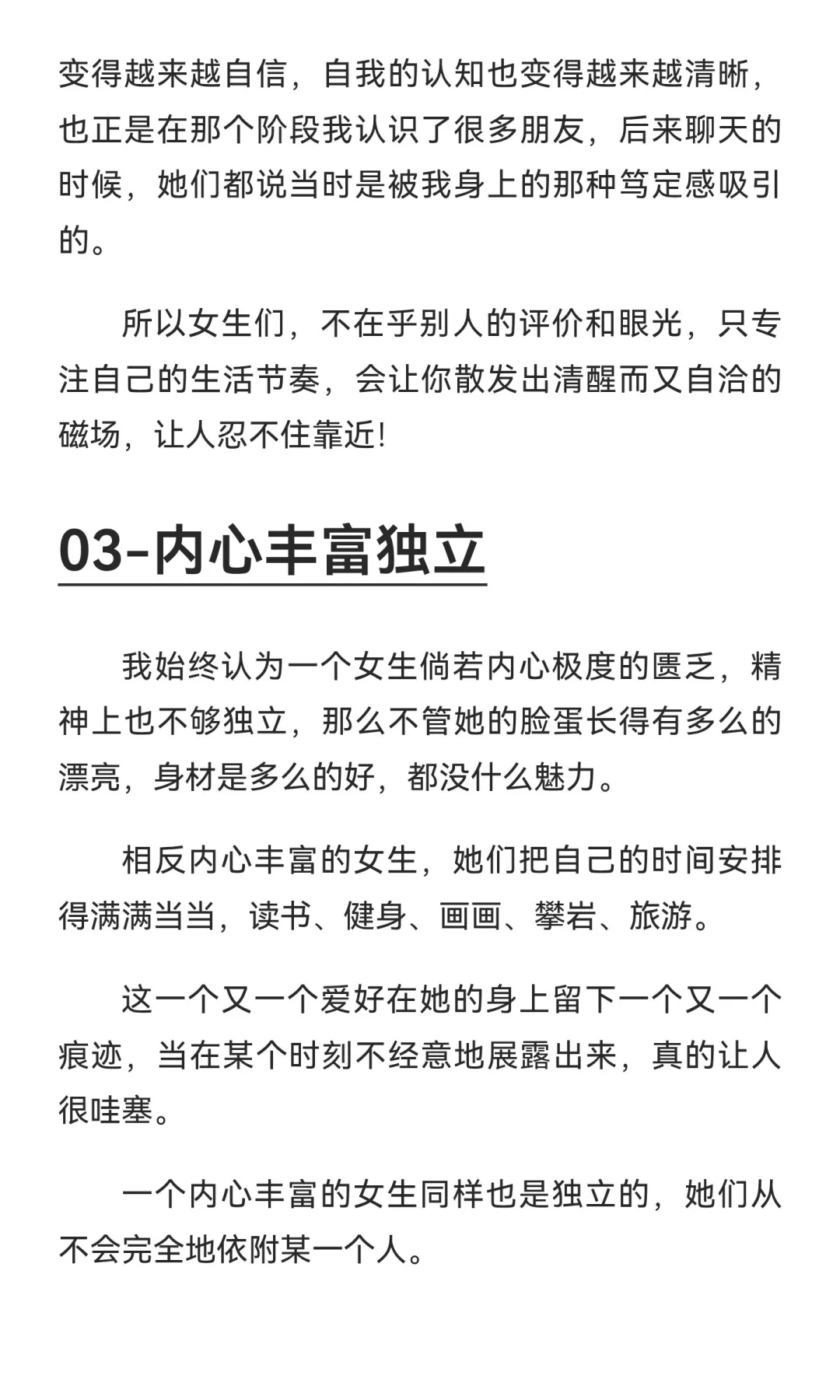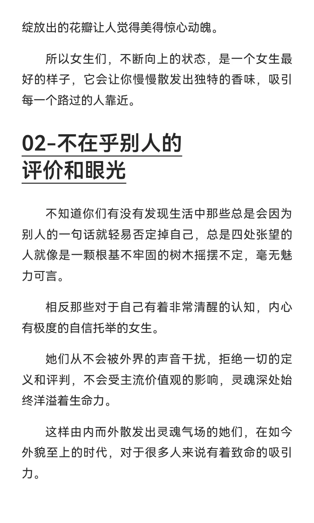 真正的吸引力源于内在品质,而非外貌。不断成长、不在乎他人评价、内心丰富独立的女生更具魅力。她们保持自信与专注,追求自我价值,散发独特光芒,吸引他人靠近。#女性必看 #女性提升 #女性励志 #女生的魅力 #自我觉醒中的女性魅力无限 #有野心的女生 #高端位女生 #自立自强的女生才是最美的 #有主见的女生 #内心强大的女生