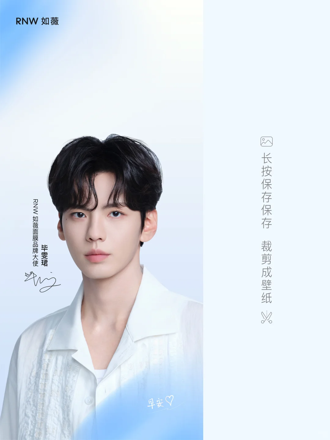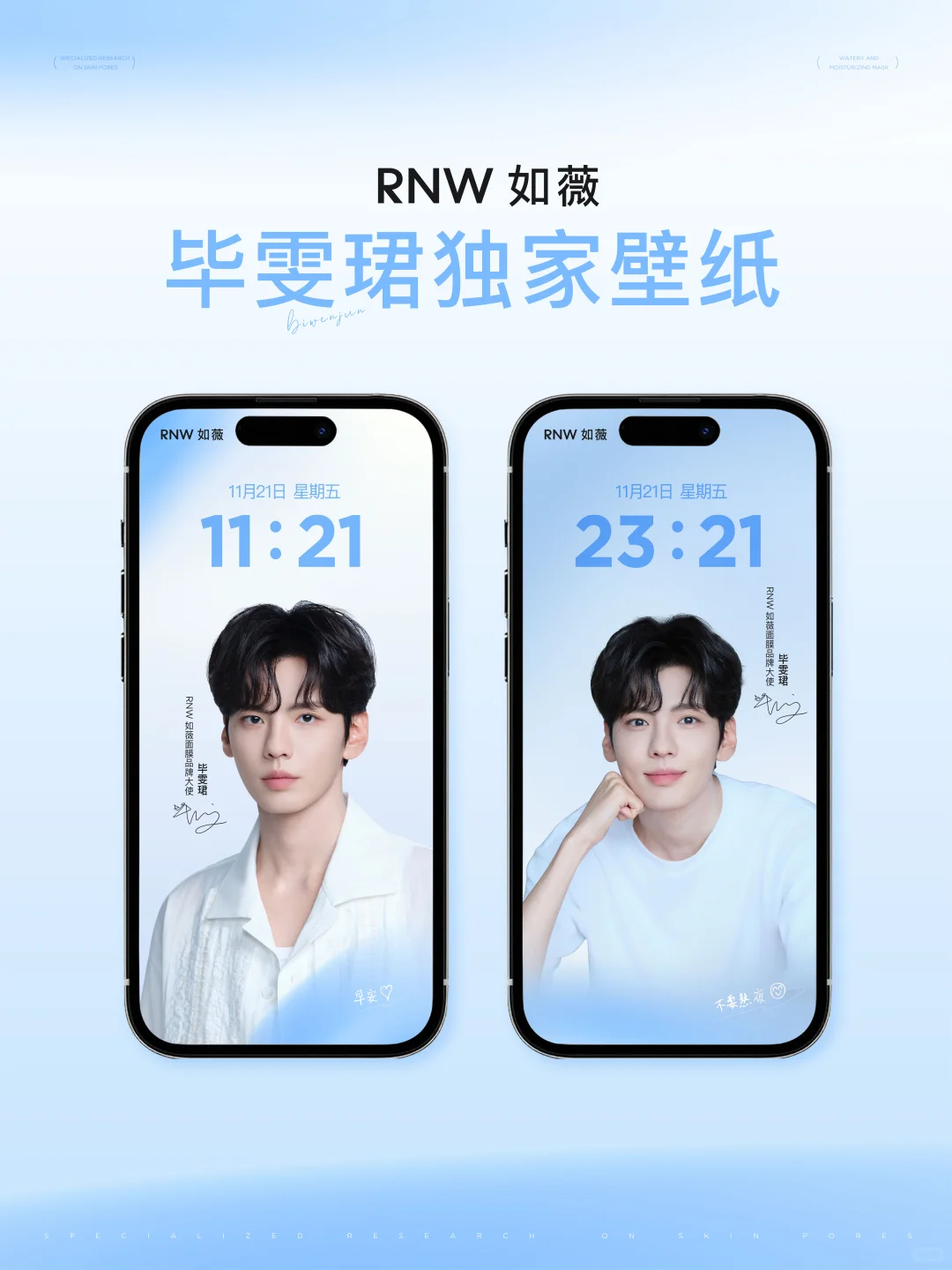 黑户 Beauty 们请查收这份高清壁纸暴击~📸\n今天和 RNW 如薇面膜品牌大使 @Biiiii毕雯珺 一起「膜」力毕现,💙\n敷出透亮好状态,Beauty 在线不掉线!💦\n和偶像同款护肤仪式感 get✅,定格每一帧精致瞬间~💖#补水「毕」需品 #RNW如薇面膜品牌大使毕雯珺 #RNW如薇 #面膜 #rnw补水面膜