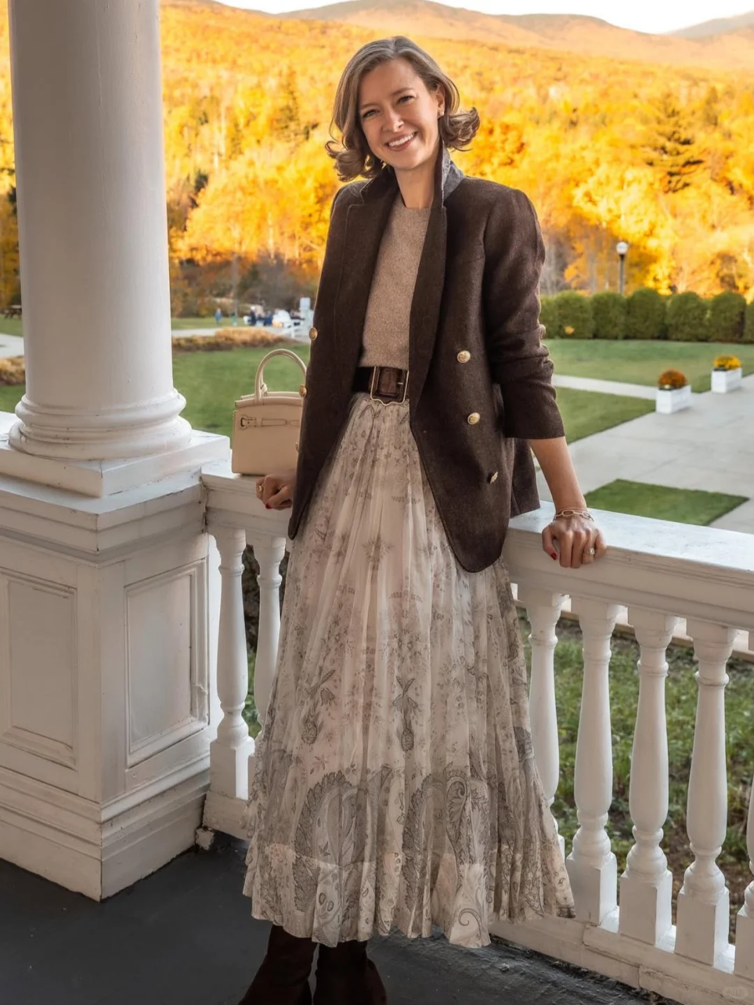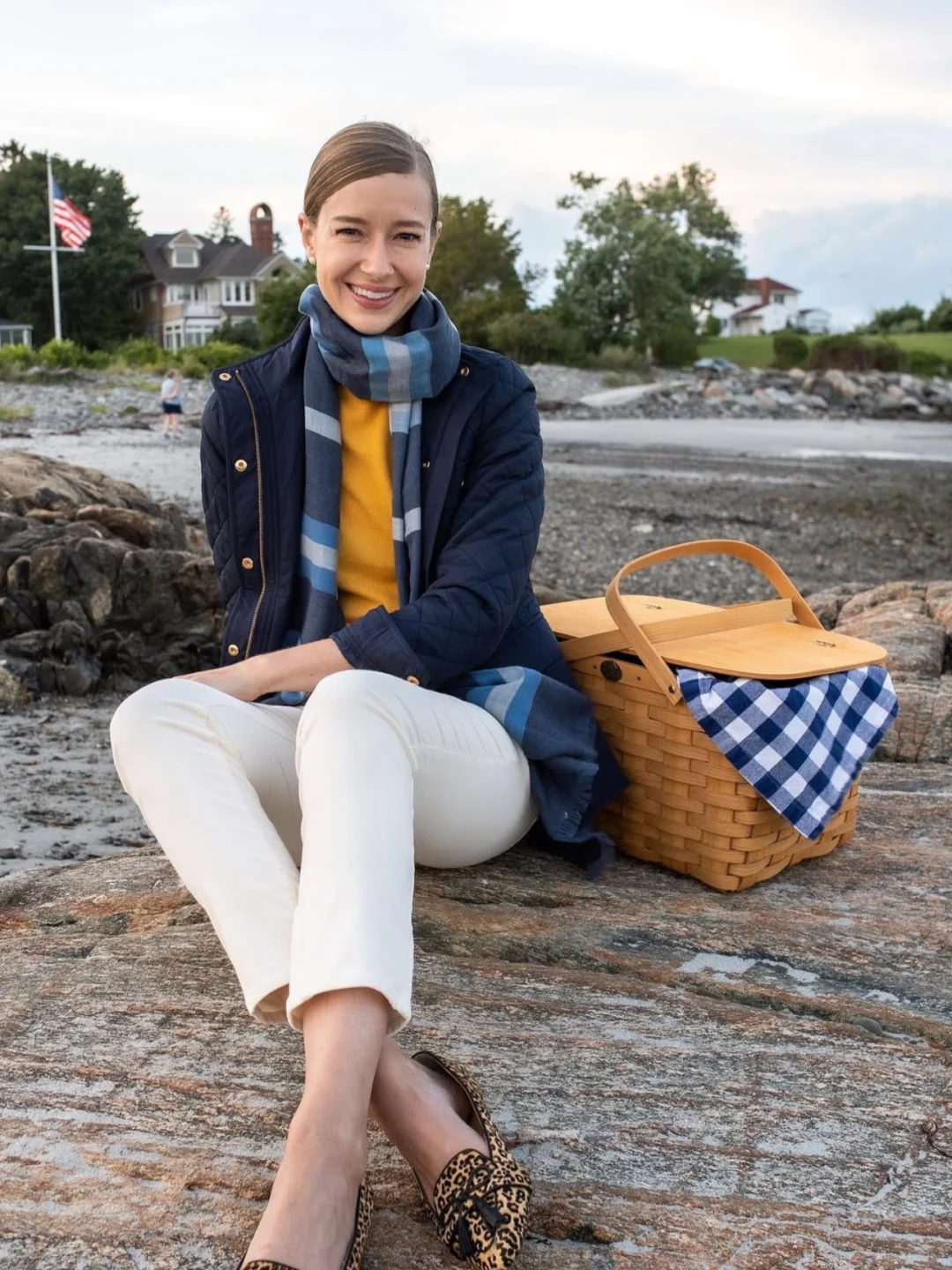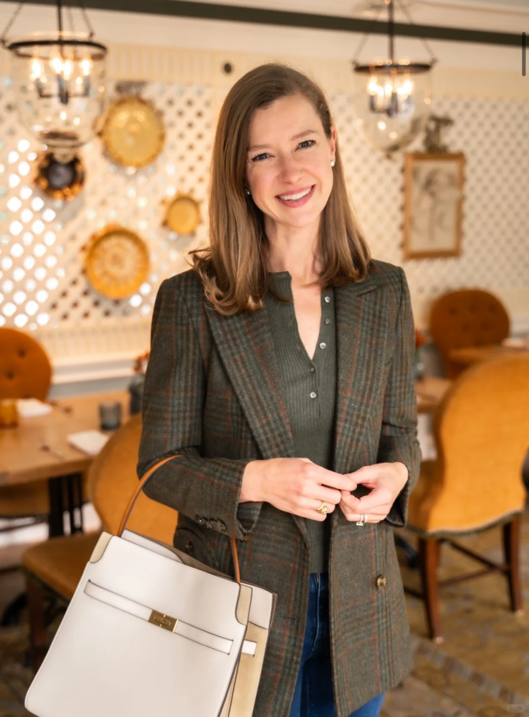 在 Stacie Flinner 身上,你会看到一种典型的中产阶级体面感,一种克制、精致、耐看的穿衣方式。\n \n她毕业于 Wheaton College。2016 年,她创立了个人网站 stacieflinner.com,从一开始,她就希望把旅行、美学与日常生活结合起来,记录自己与丈夫的环球旅程和居家点滴。她的博客很快吸引了大量读者,也为她带来了与 Nordstrom、Sezane、Sarah Flint 等品牌的合作机会。除了穿搭,她也分享室内设计、旅行灵感和生活方式,逐渐成为一位全方位的生活方式创作者。\n \nStacie 的穿衣风格,她自己表达过一个简单的法则:不超过三种颜色。她在采访中提到,这个原则不仅让造型更平衡,也能让人关注到穿衣者本身,而不是被繁复的衣服淹没。\n旅行中的她,也坚持“融入场景”的哲学。她曾说过:“旅行穿搭的关键,不是要引人注目,而是要让自己成为氛围的一部分。”\n \n#ins博主穿搭 #穿搭灵感 #老钱穿搭 #ootd每日穿搭 #ootd #老钱风 #时尚#秋季穿搭 #审美积累 #美式穿搭