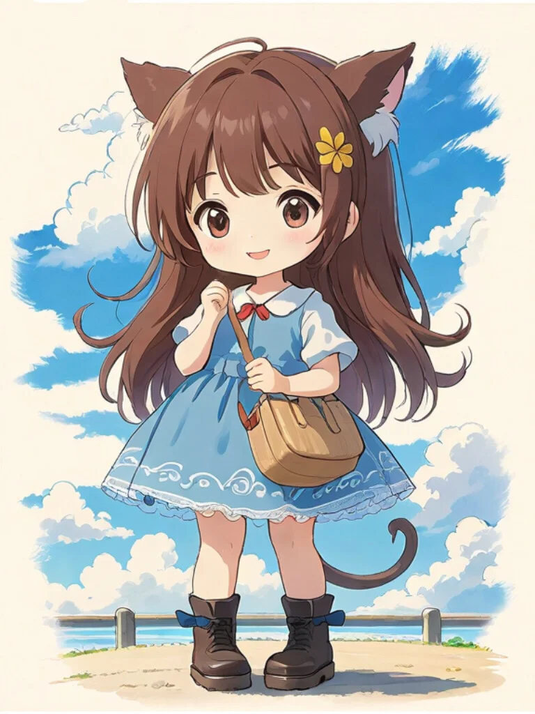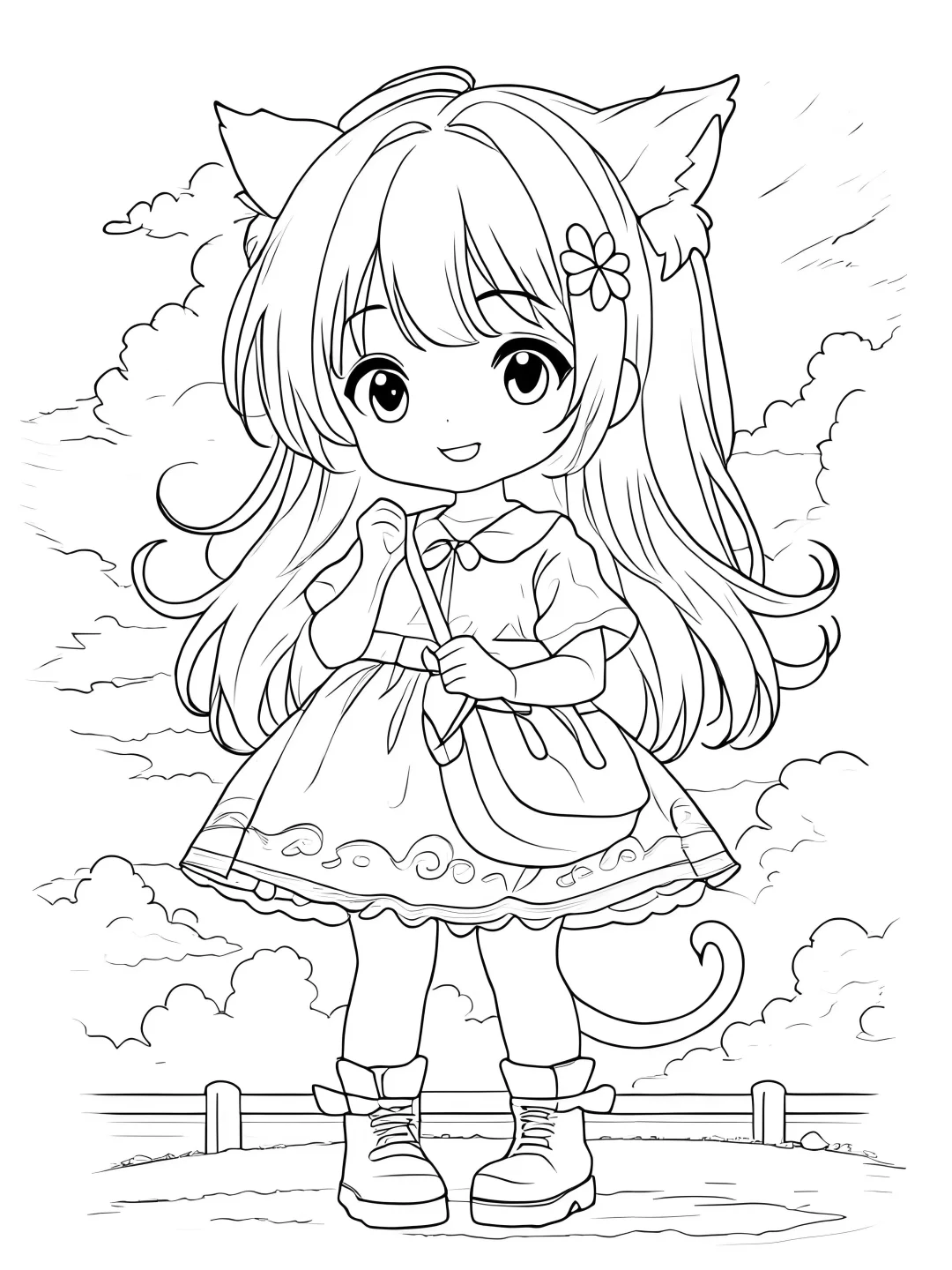 有➡️滑上色小女孩全身动漫卡通可爱简笔画
