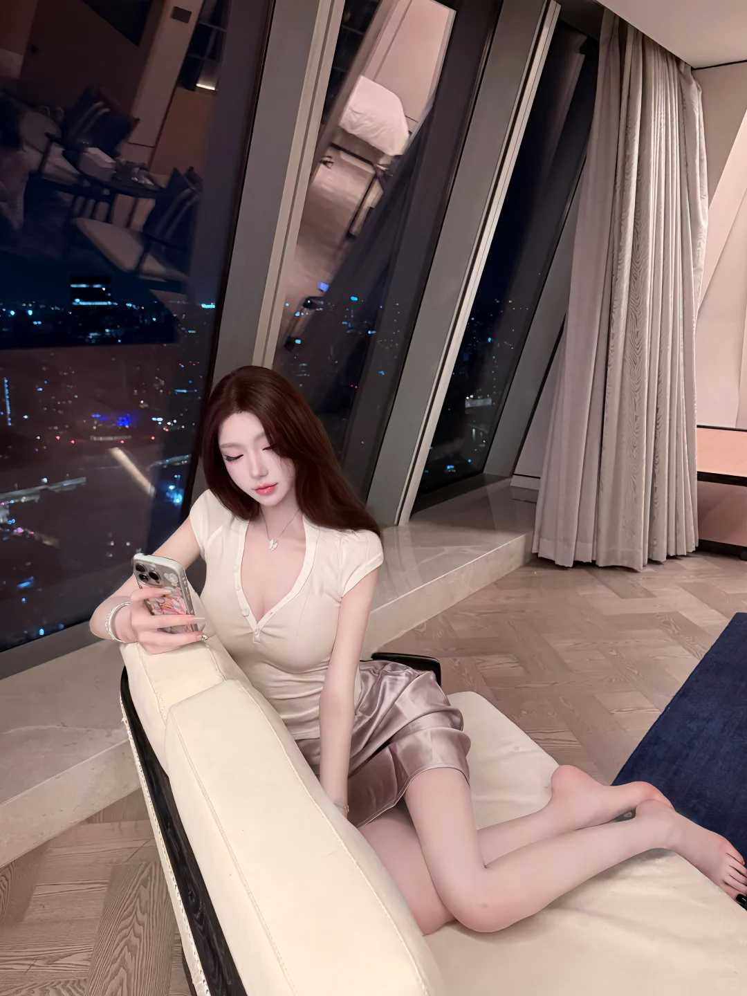 谁懂姐感甜御风拍照的含金量\n酒店 沙发 夜景包出片嘟~\n