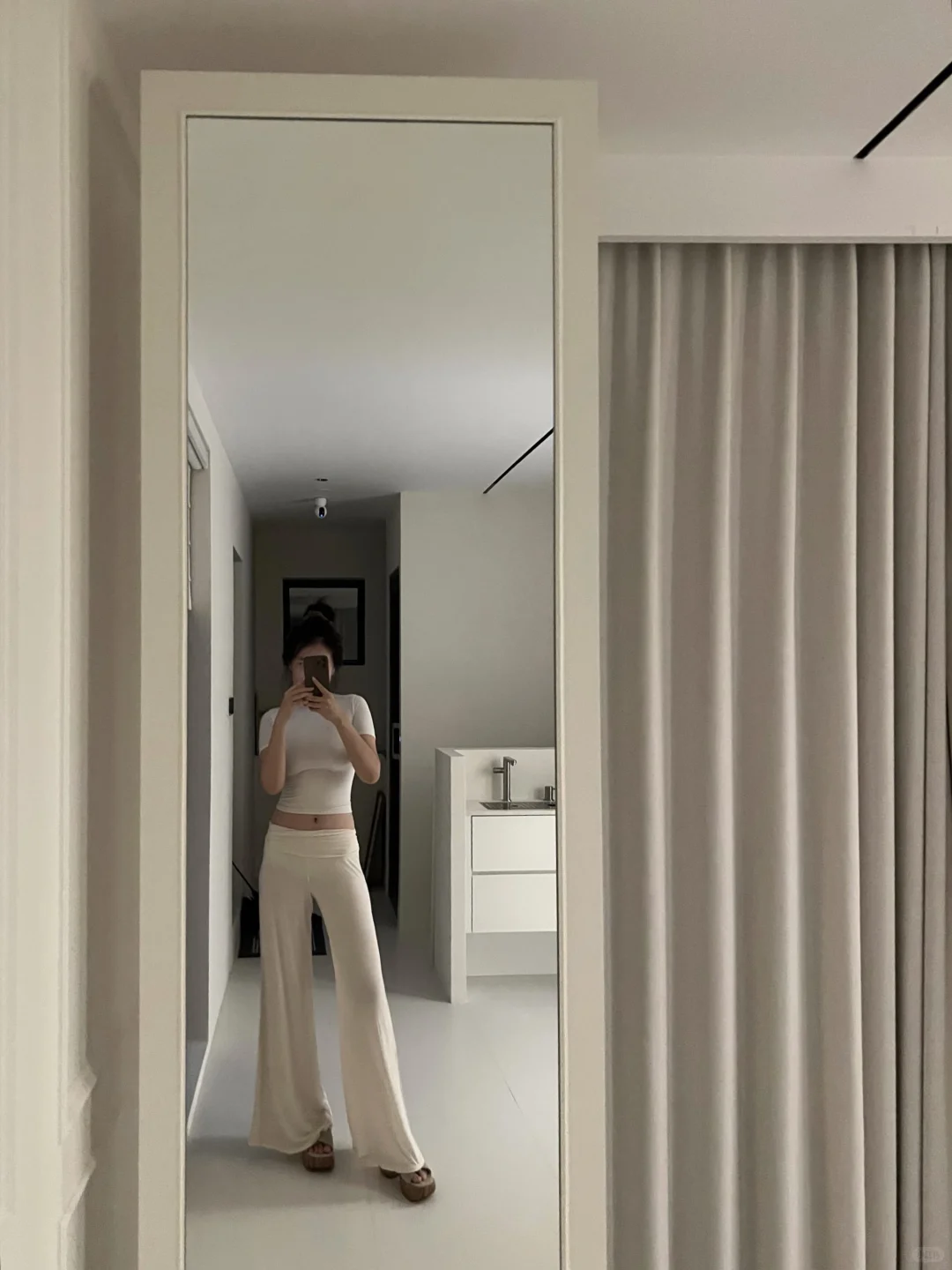 维秘的这个睡裤真的很很很很绝!!\n上身感觉是在试skims的感觉 很显得比例\n而且ta是材质会很有清透感 松驰垂垂顺\n