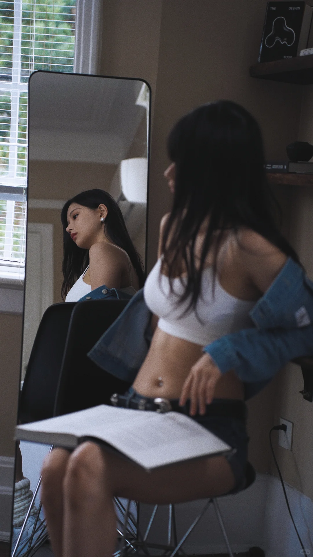 模特身材很好,脸上有点婴儿肥,性格活泼。\n模特: 妮可\n设备: 索尼A7C + 腾龙 28-75 F2.8\n#正常拍摄无任何不良引导 #身材与颜值性感共存 #美女写真 #美丽的女孩子 #室内拍摄 #私房照