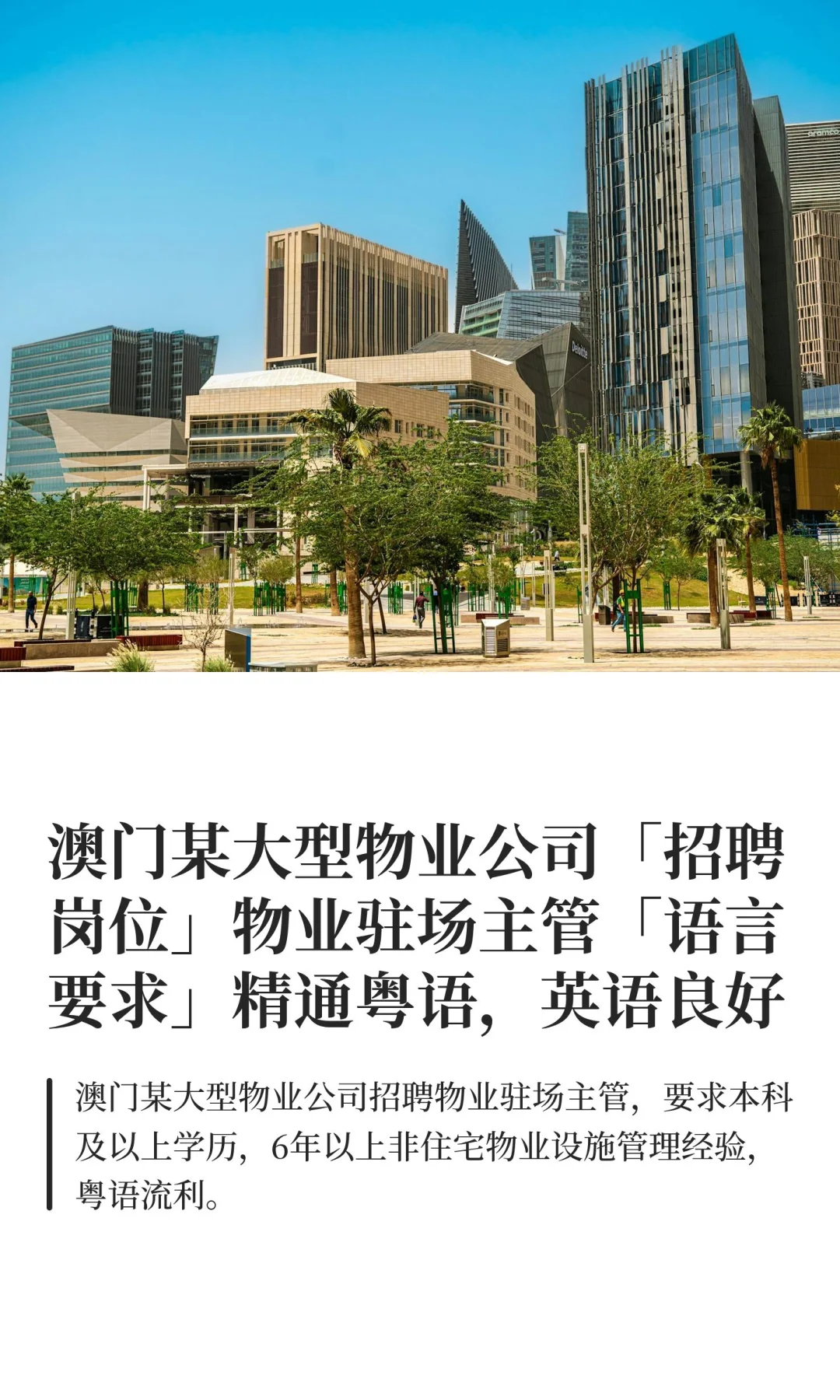 澳门某大型物业公司「招聘岗位」物业驻场主