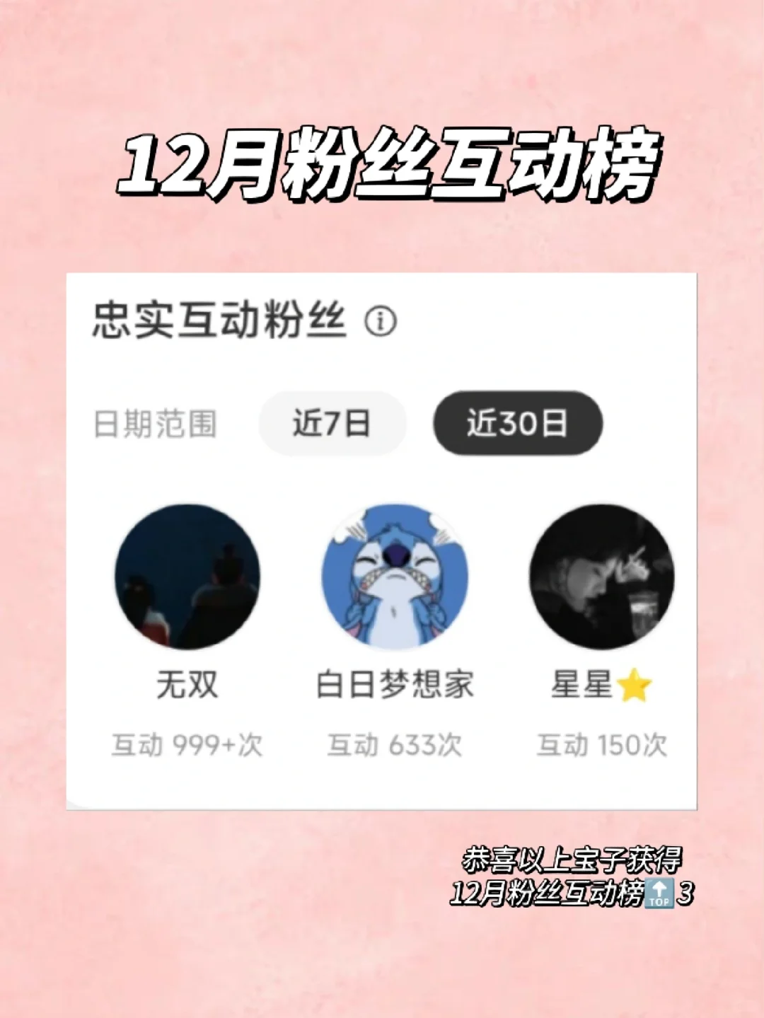 12月粉丝互动榜来了,看看有你吗?