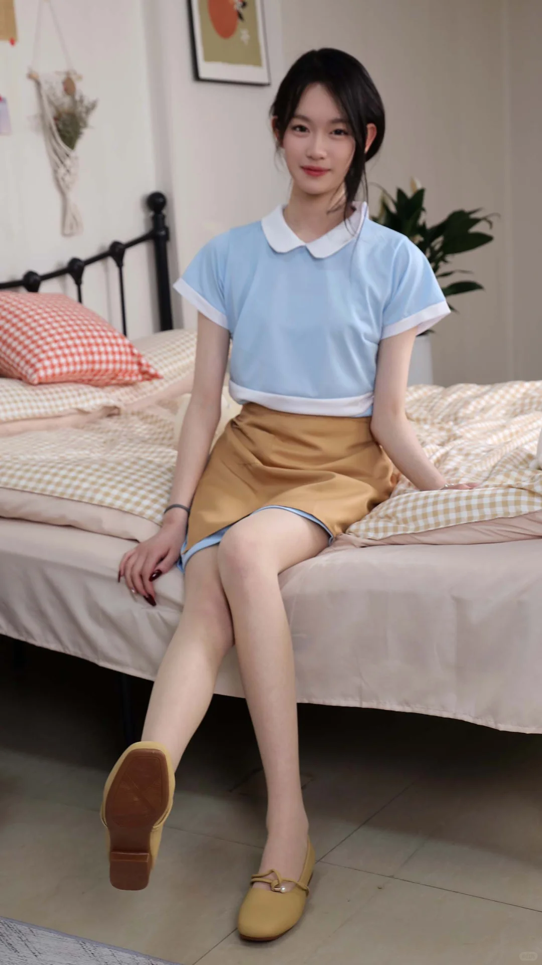浅蓝学院风:丝袜衬出的清甜质感