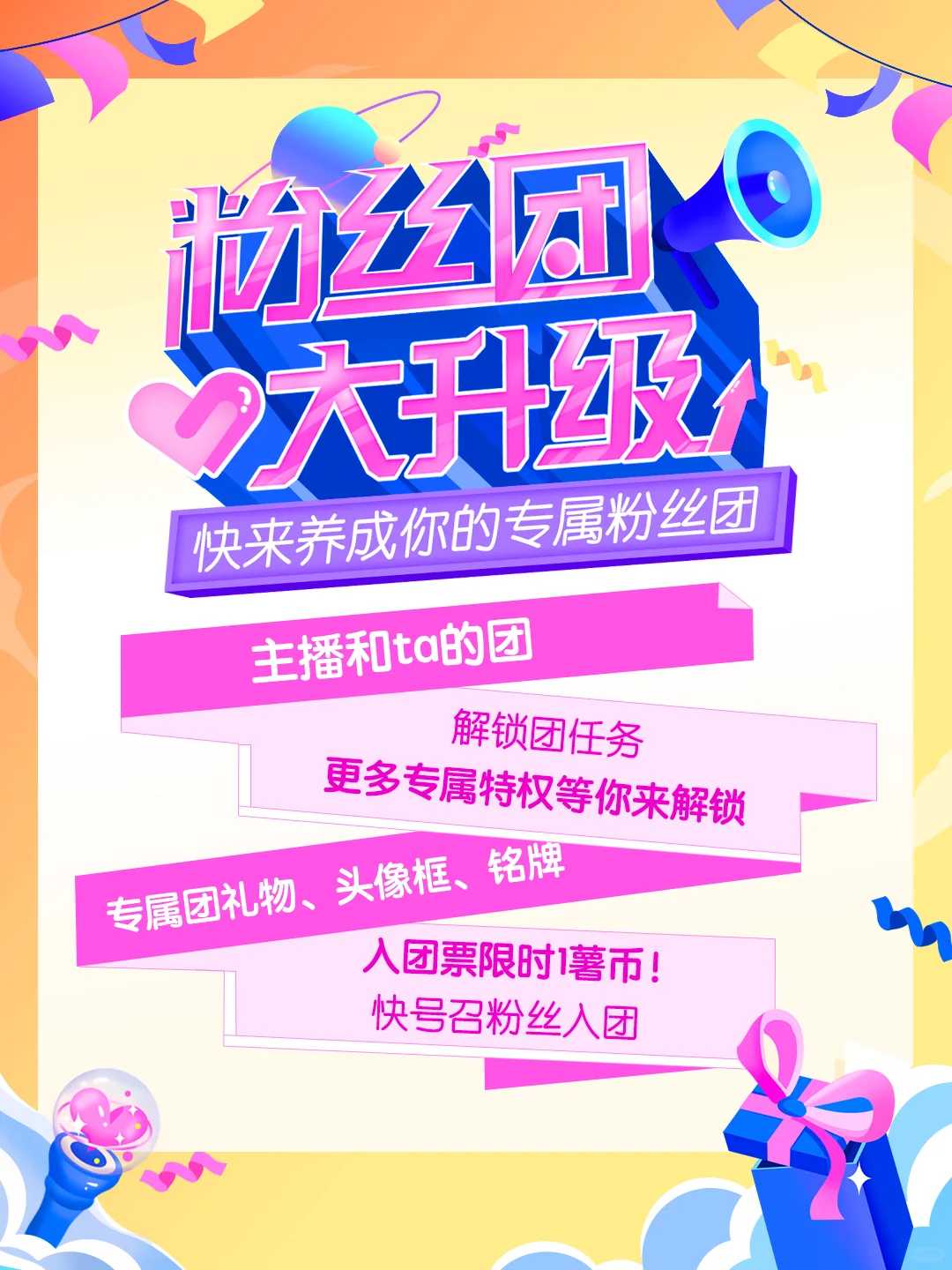 ⭐️限时1薯币即可加入粉丝团!\n快来加入粉丝团,为你喜欢的主播打call吧~\n🔥升级玩法:粉丝每天在对应主播的直播间内完成任务获得亲密度。亲密度越高,团等级越高,还将解锁更多专属特权!\n👉团体解锁特权,团成员人人都可享有~\n快来加入粉丝团,为你喜欢的主播打call吧~