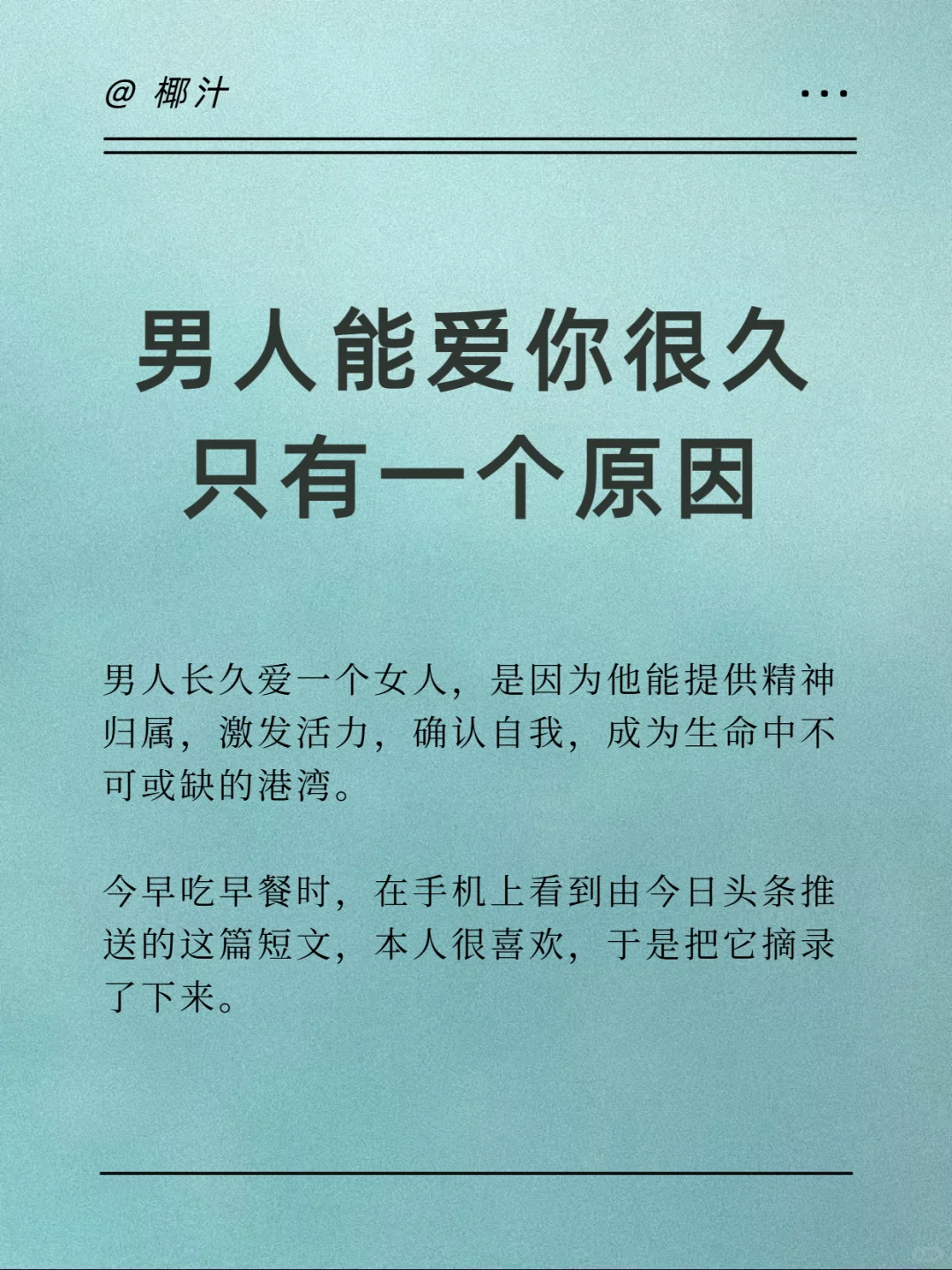 一个男人能爱你很久只有一个原因