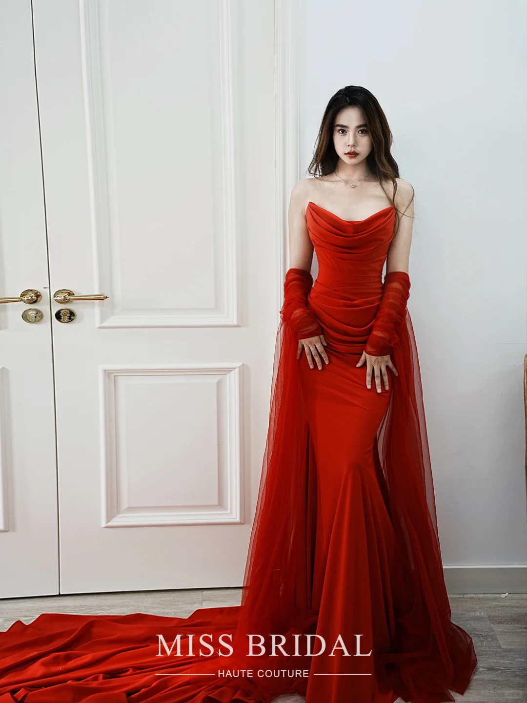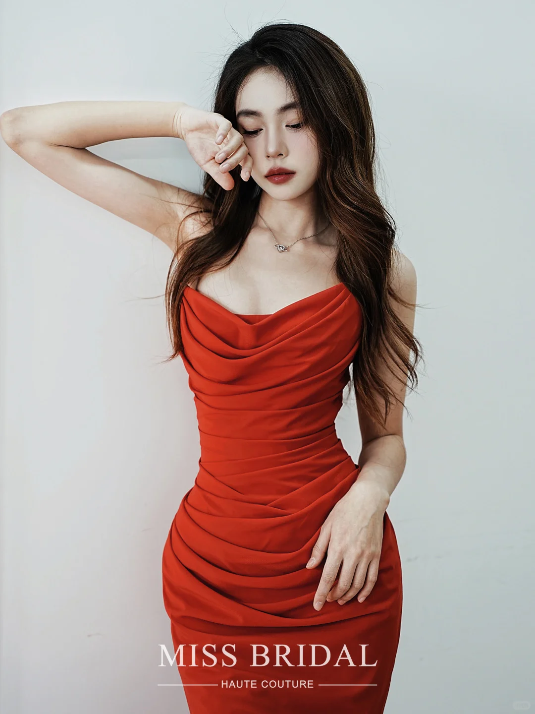红尘滚滚♥️\n有种红♥️叫做风情万种的炽热明媚\n〰️\n以高密纺纱勾勒凹凸曲线轮廓\nU型褶裥营造婀娜性感诱惑🫦\n空气感红纱长袖飘纱又增添一抹神性\n微风轻拂微醺卷发妩媚动人\n〰️\n📷图片来自@Calia Sweet\n🏷️CaliaSweet指定北京授权👇\n🏠北京试纱@MissBridal婚纱试衣间\n〰️\n#北京婚纱店 #小众婚纱 #北京婚纱 #红色礼服 #红尘滚滚礼服 #CaliaSweet #北京小众婚礼 #北京敬酒服 #北京红礼服 #北京婚纱礼服