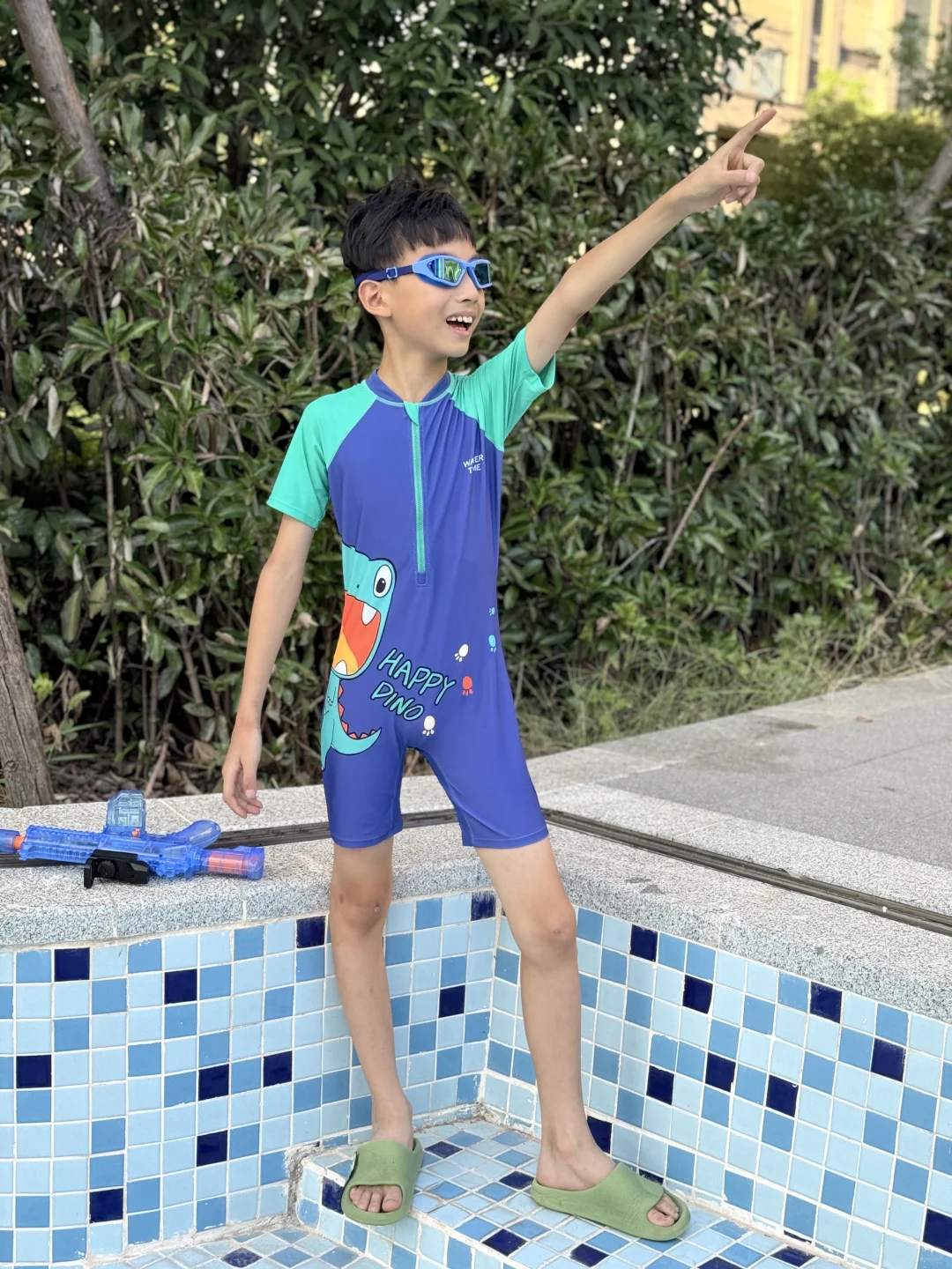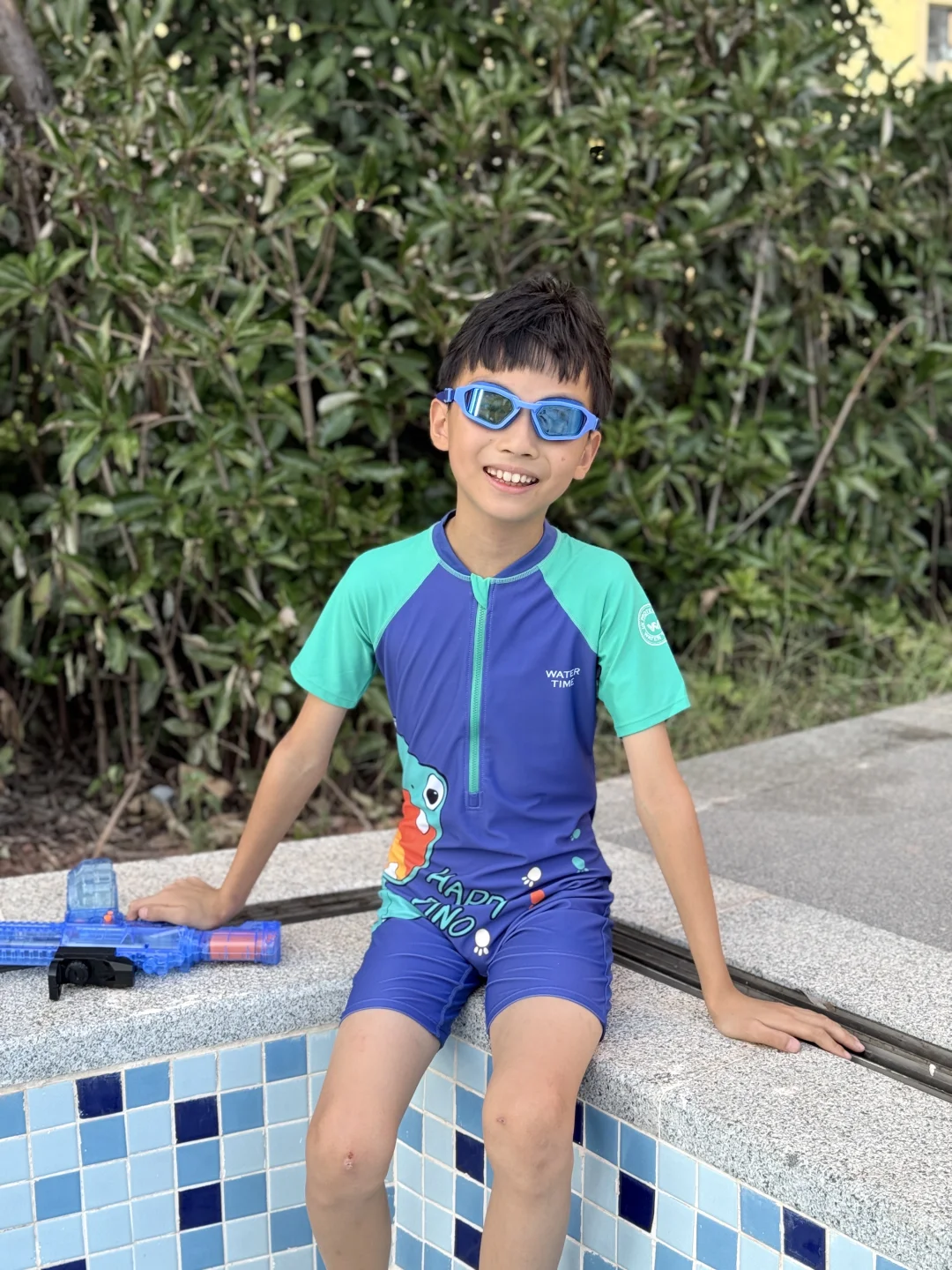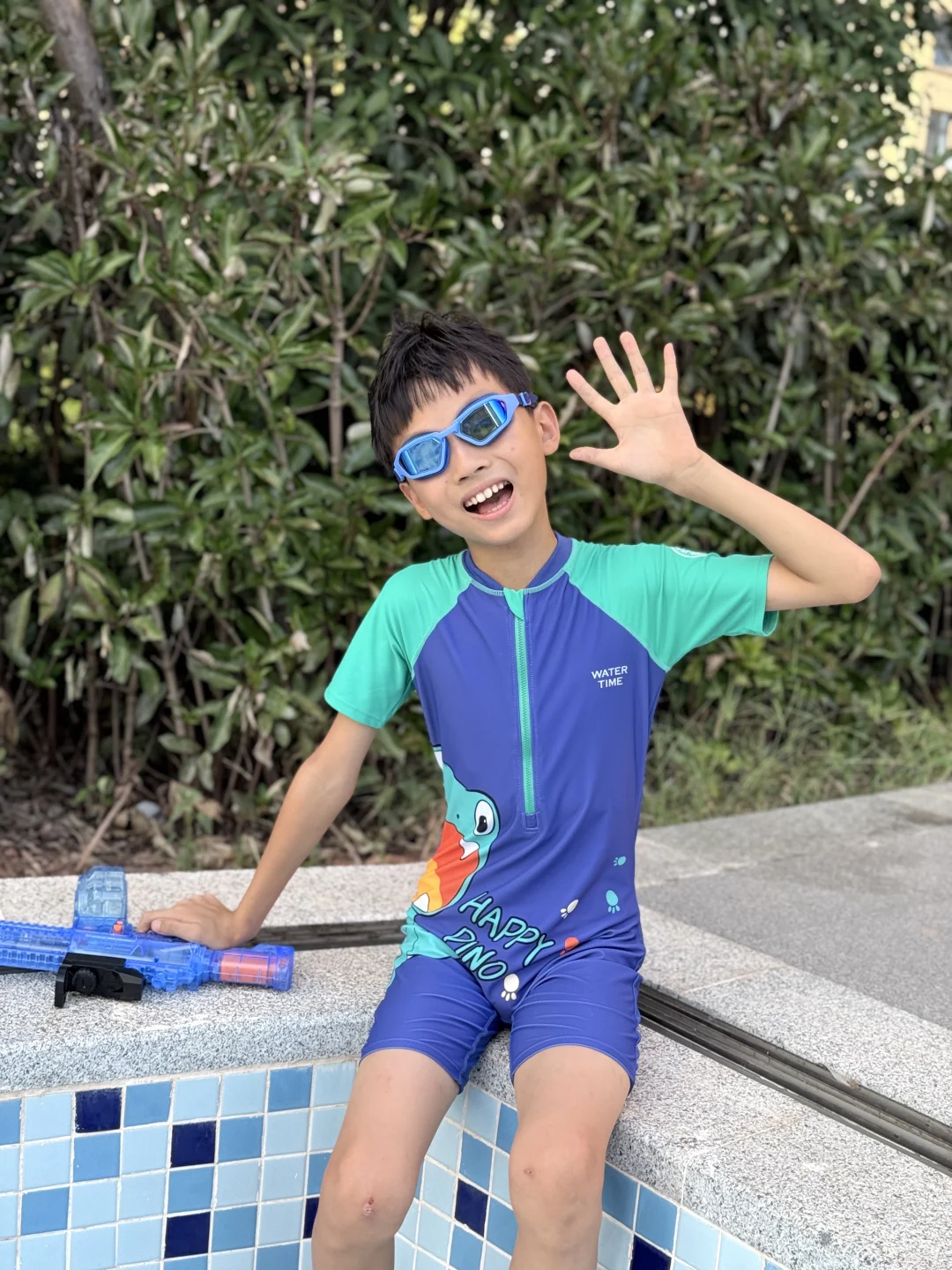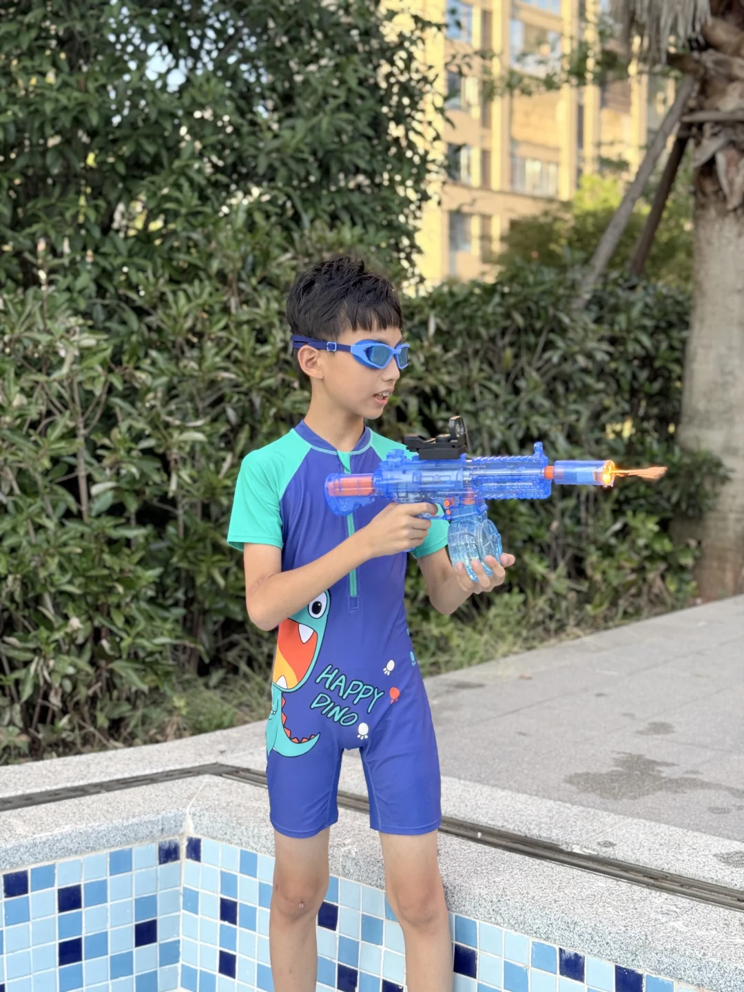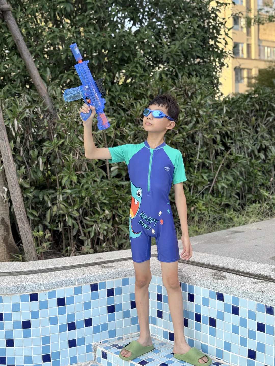 今天的快乐就是穿着泳衣玩水枪