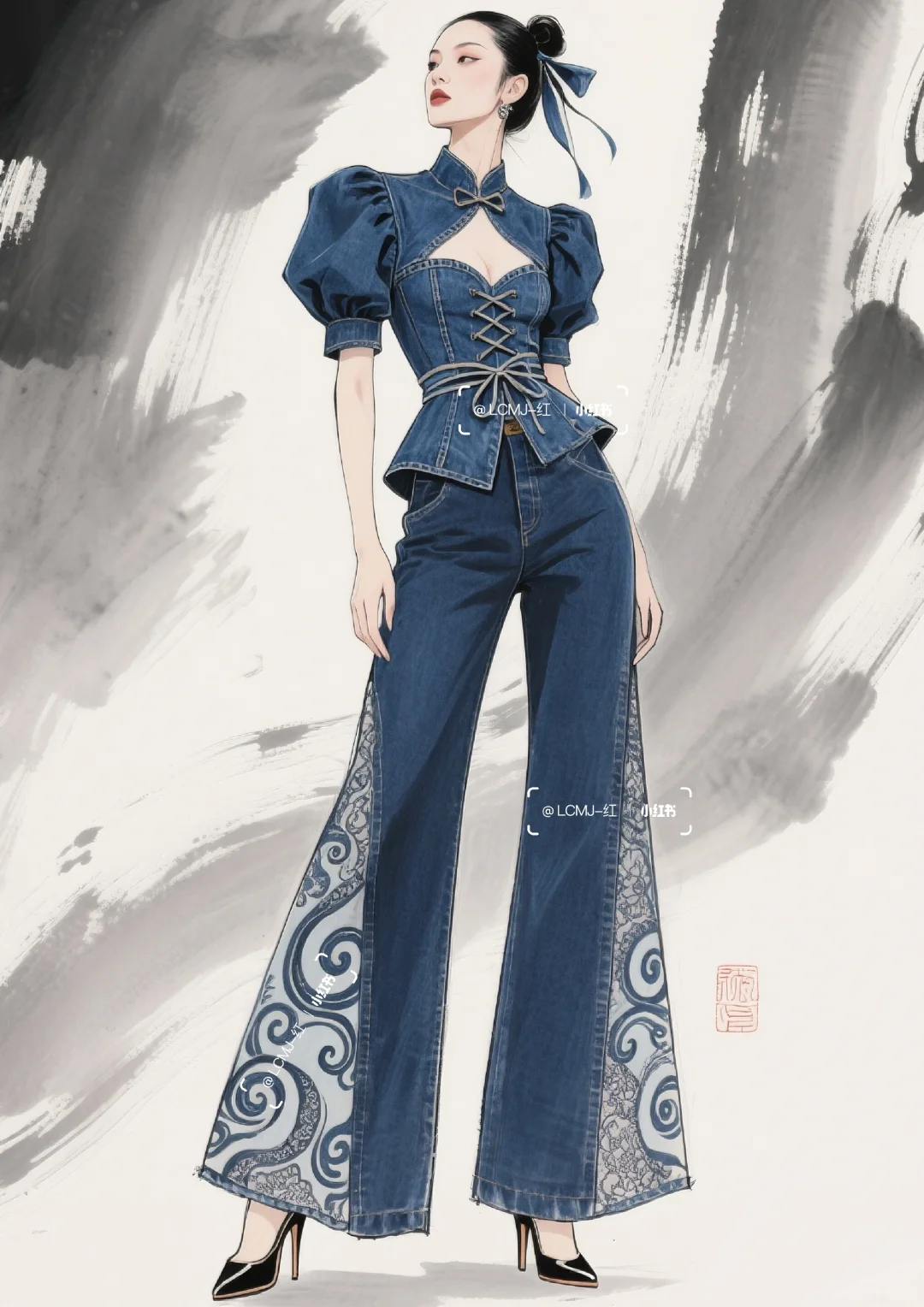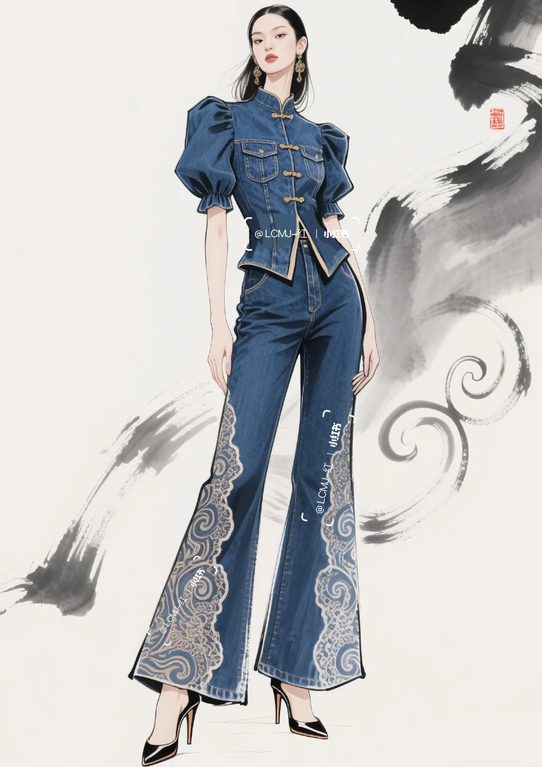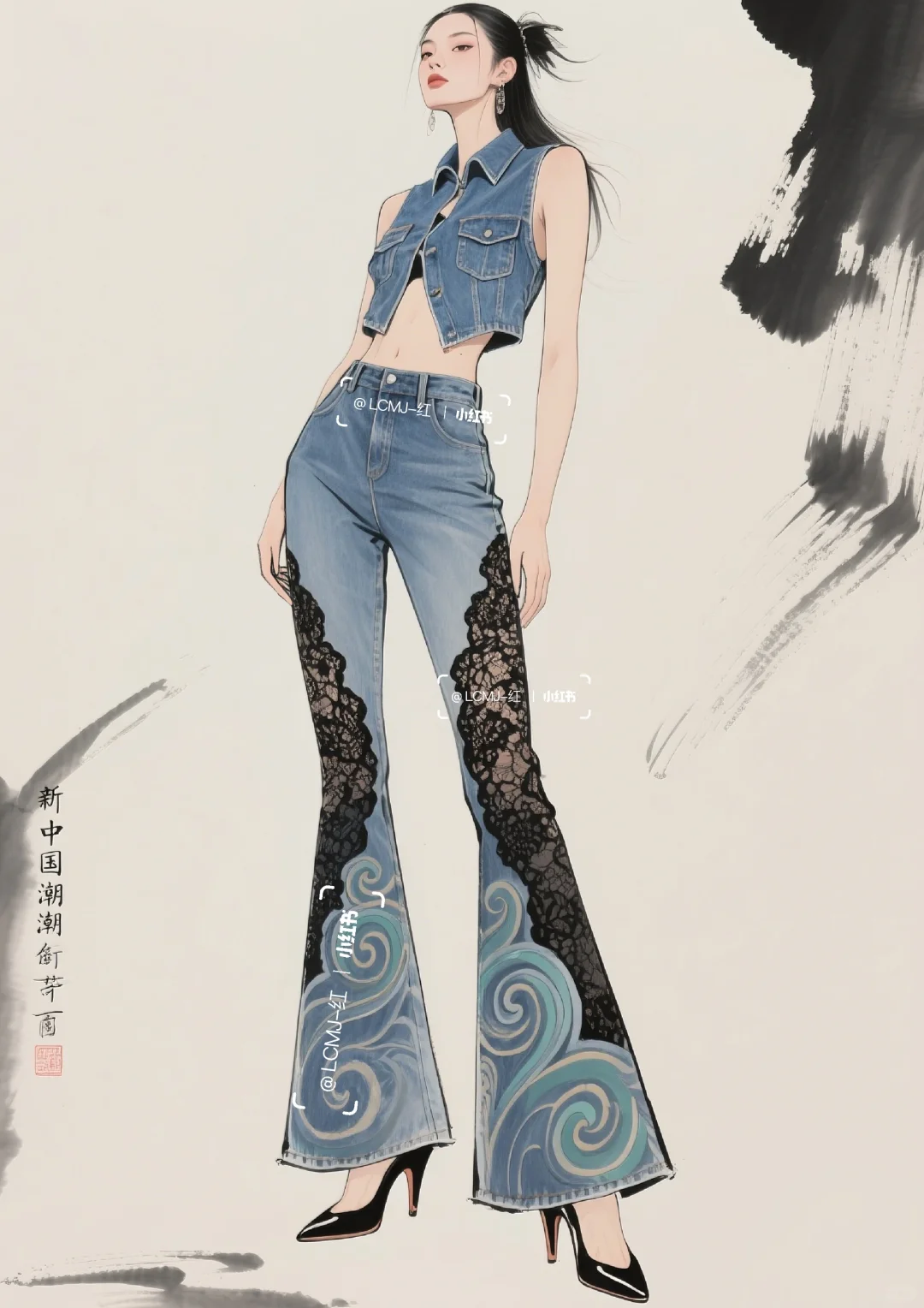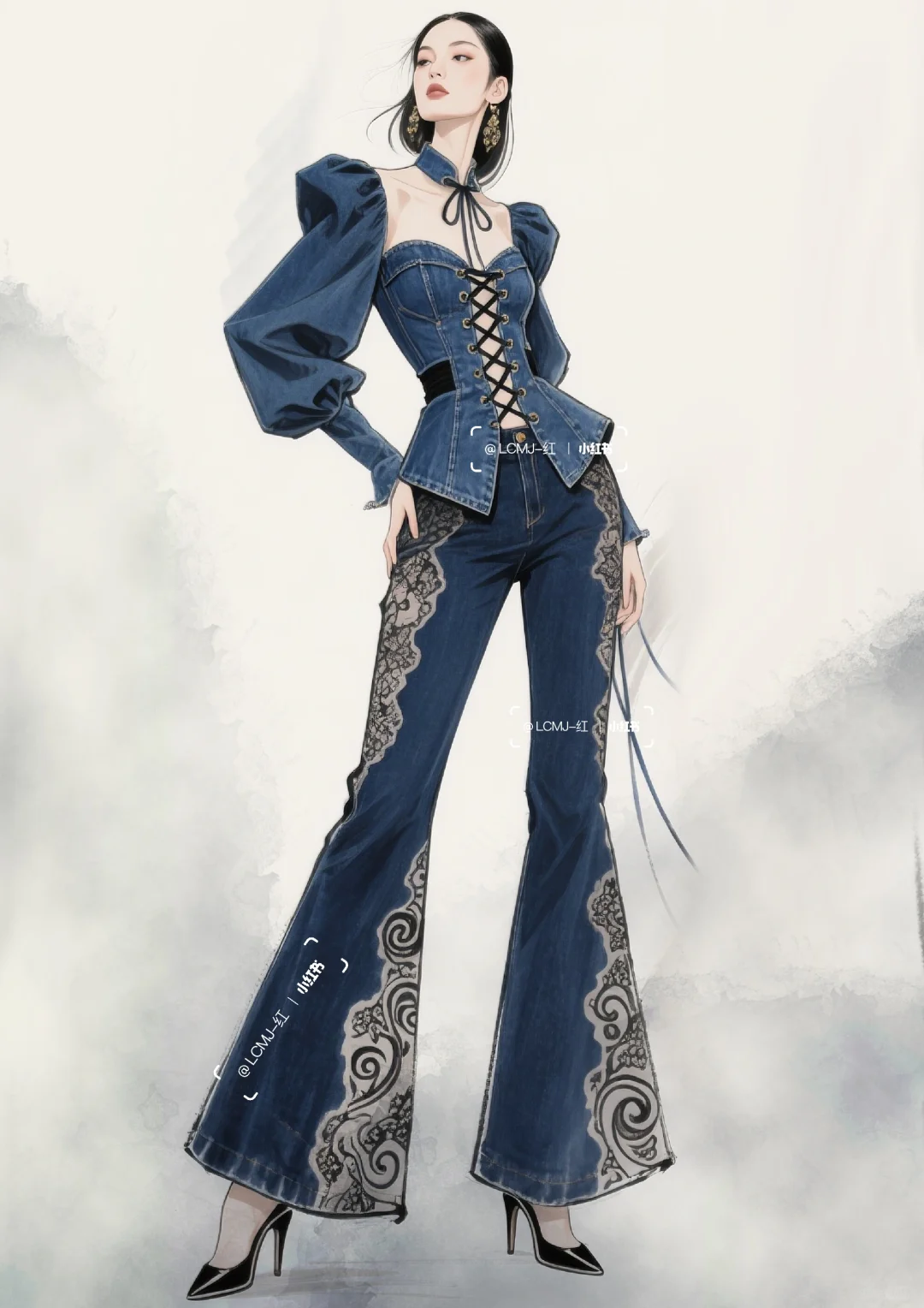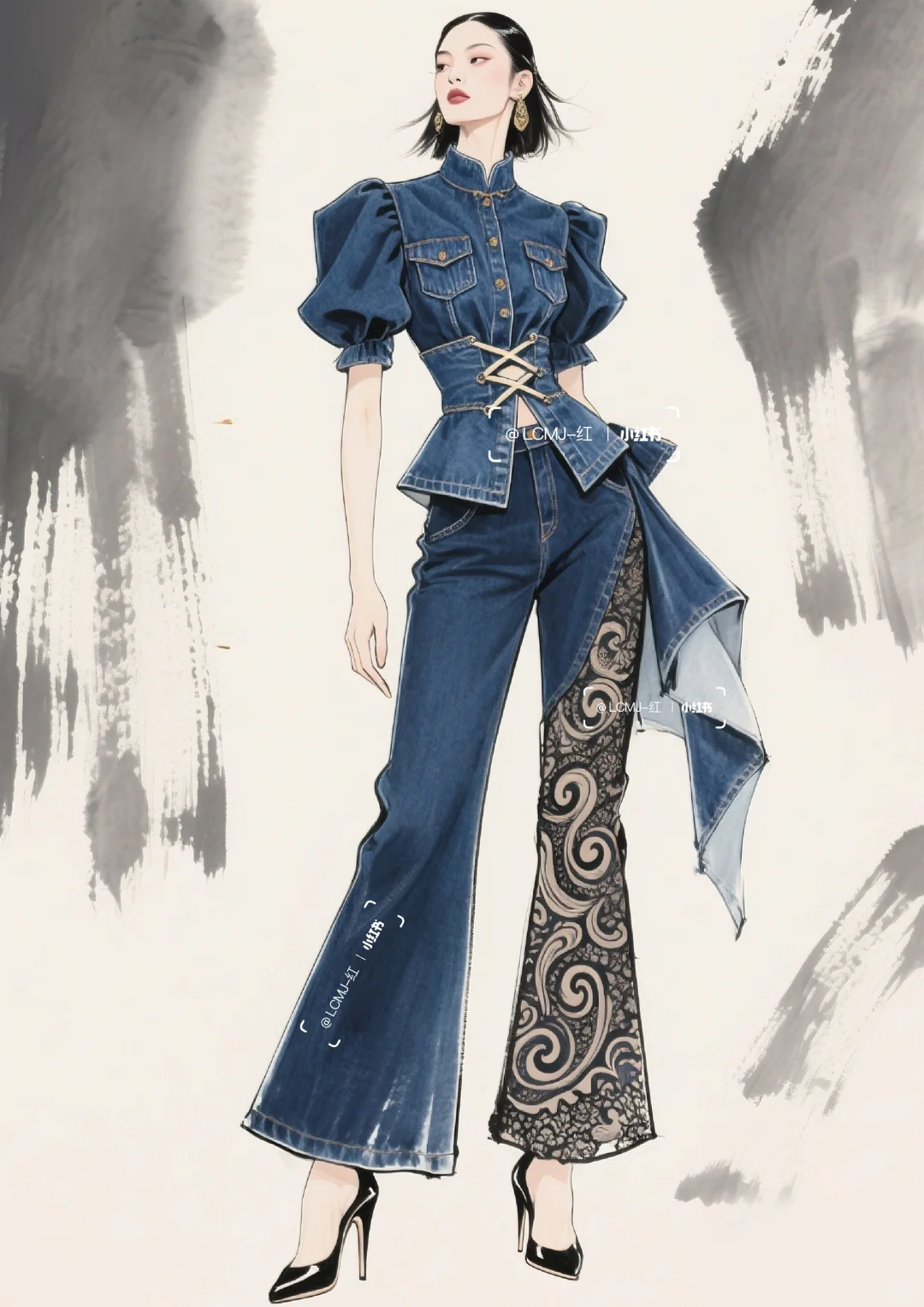以 “打破边界,融合共生” 为核心设计理念,\n \n将丹宁的粗犷不羁与蕾丝的细腻进行创新碰撞,\n \n形成 “硬”与“软”、“刚”与“柔” 的视觉与触觉反差。\n \n整体风格既延续了丹宁的休闲不羁,\n \n又通过蕾丝升华出优雅风情,\n \n既可搭配高跟鞋出席派对,展现摩登气场;\n \n也可搭配休闲鞋漫步街头,演绎随性自在。\n \n让穿着者在优雅与不羁间自由切换,\n \n释放独特的时尚态度。\n \n#服装设计 #服装设计效果图 #丹宁 #古典与时尚的结合 #蕾丝 #个性魅力展现 #时尚新境界 #复古新风尚 #时尚与古典的碰撞 #复古与时尚的碰撞 #时尚与复古 #传统与时尚先锋的融合 #时尚与传统 #复古/宫廷 #牛仔裤改造 #牛仔裙 #古典与时尚 #牛仔 #牛仔裤 #牛仔裤女 #牛仔套装#牛仔穿搭 #街头风 #街头穿搭 #酷飒穿搭 #酷飒风 #酷帅风 #酷帅穿搭 #酷帅女孩 #个性 #个性穿搭 #时装设计 #女装设计