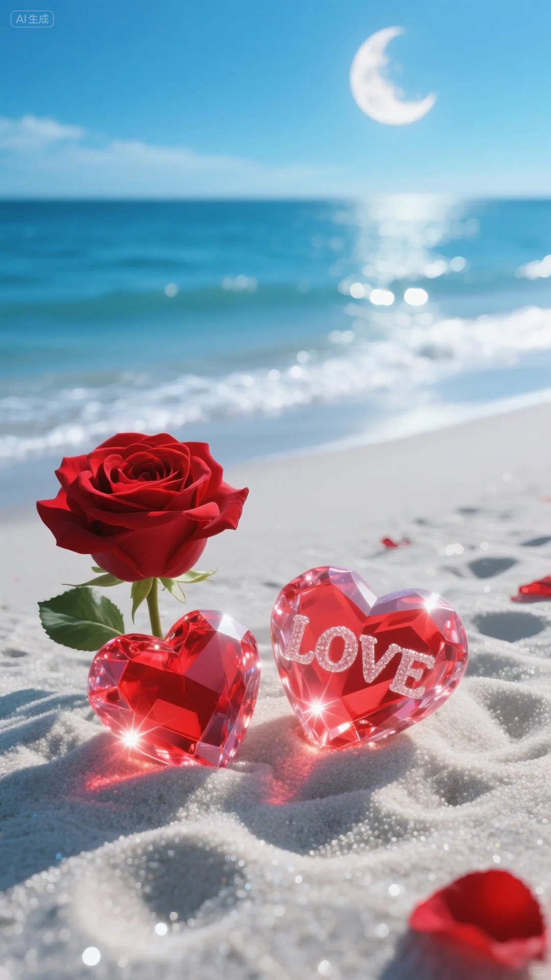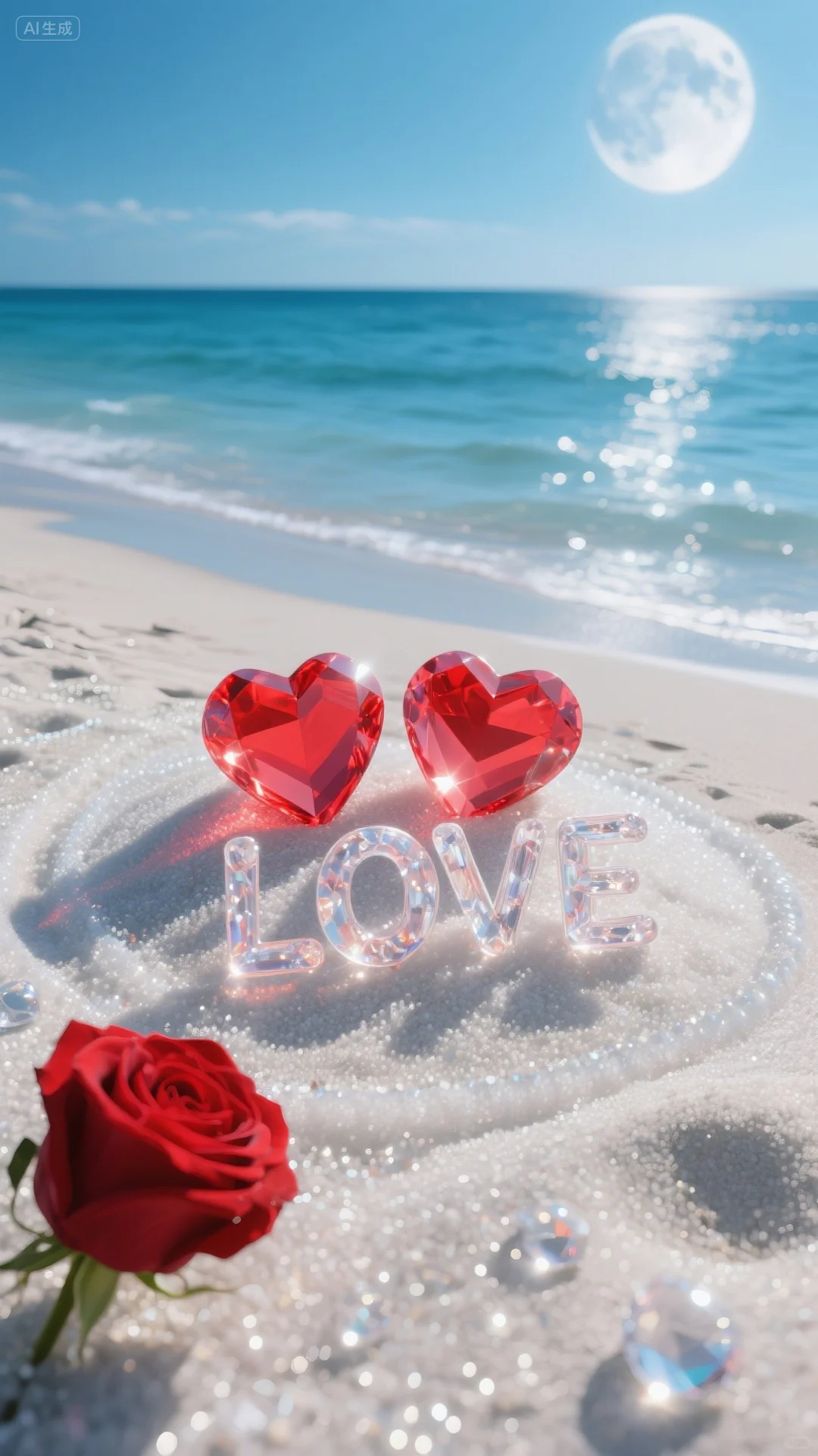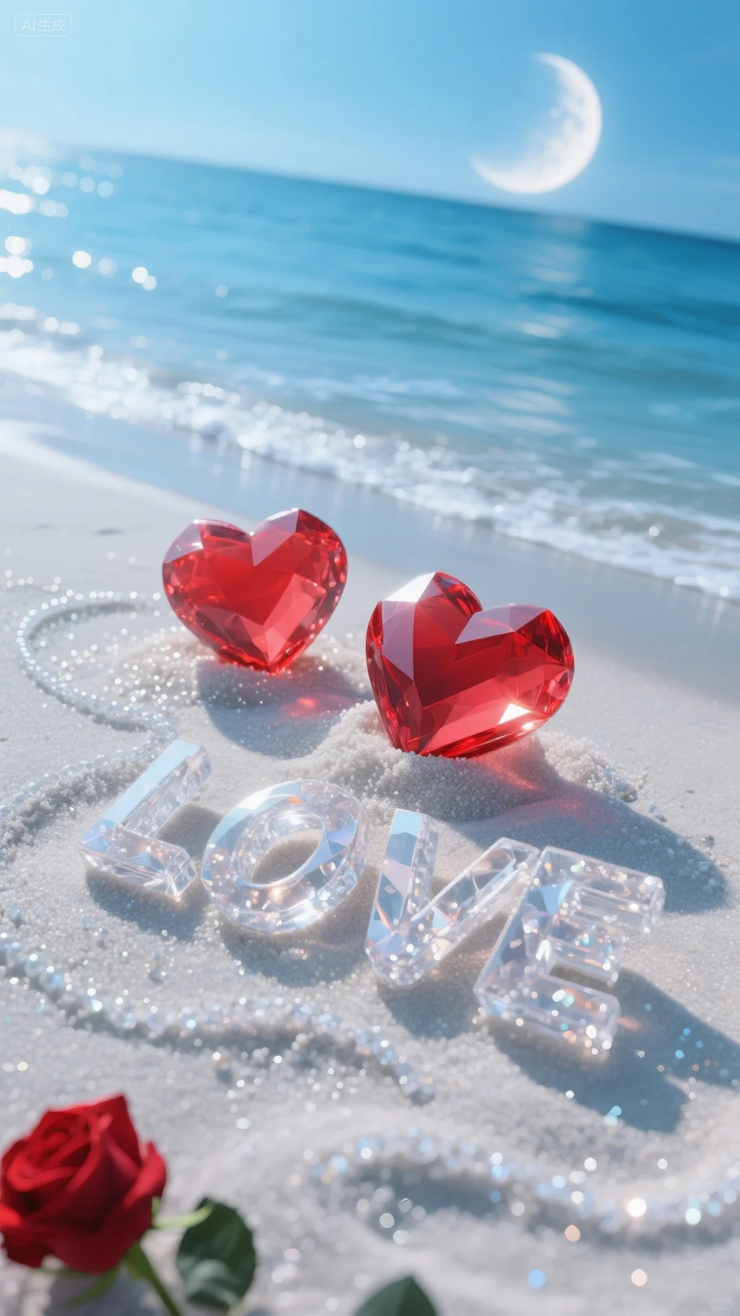 手机壁纸‖浪漫的沙滩爱心玫瑰