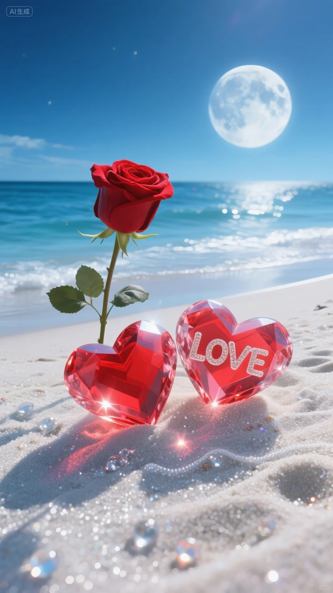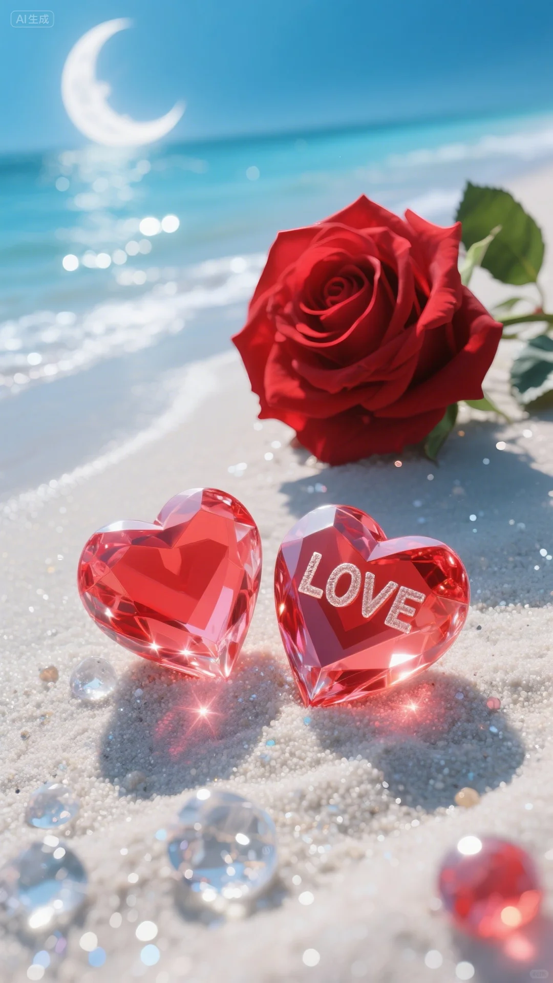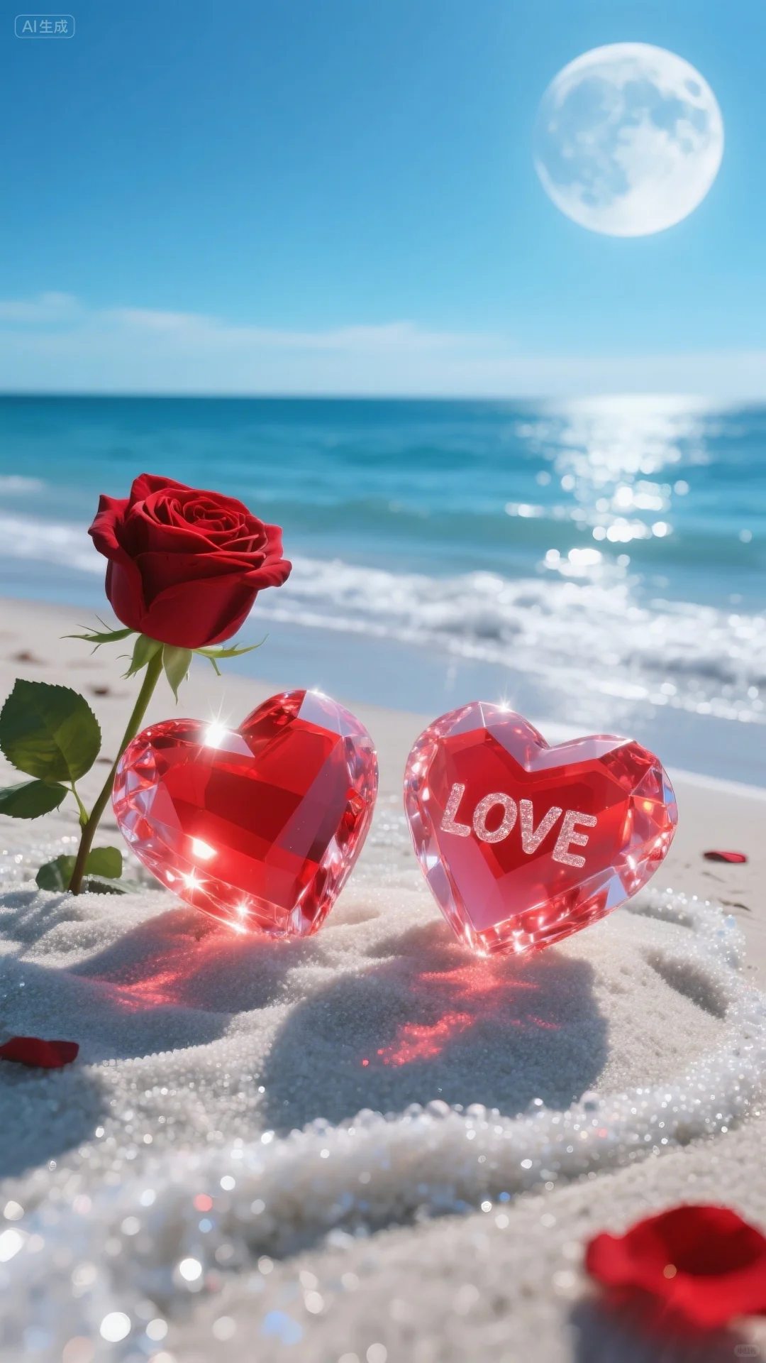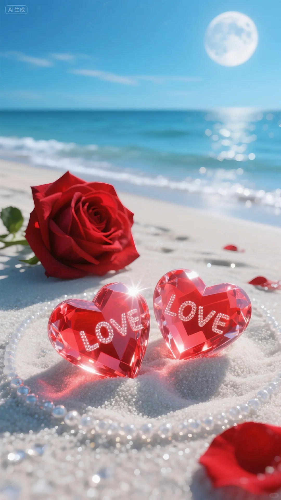 手机壁纸‖浪漫的沙滩爱心玫瑰