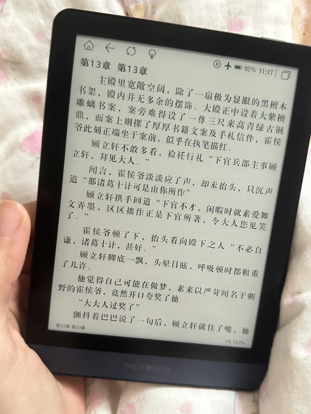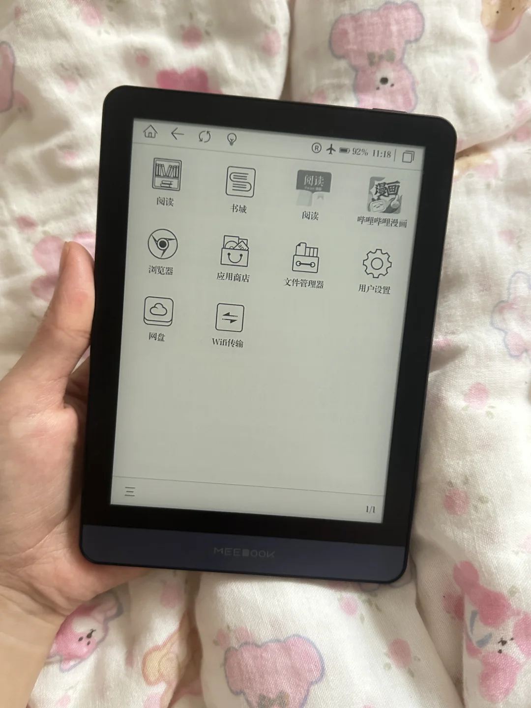 忍不住的繁殖,不得不说开放系统实在是太香了[完啦R]\n传书方便到我不可思议,wifi传书简直神速\n之前用kindle的我过的是什么苦日子[泪崩R][泪崩R][泪崩R]\n设置壁纸非常方便,还有时钟壁纸,不用的时候放桌上当个时钟摆件真的是利用率超高,爱看电纸书的姐妹们真的可以入一台国产开放系统,鼓捣半天我还下载了开源然后导入了书源,连上wifi简直就是我的手机形态的另一种体现!\n300ppi的3g➕32g配置,性价比超绝!可以蹲蹲双十一看有没有好价,我属于重度看书人群,看上头了,一天能看十几个小时熬夜通宵的看导致于我的kpw4得两三天一充所以用我的k8过渡,但是想要开放系统的心达到了顶峰,于是入手了这个性价比,真的是太香了,缺点也有我感觉只要联网耗电就很快,关了网然后开飞行模式也没太差,主要是看中开放系统,而且还能下开源,单纯就看小说足够了,反应各方面也比我的kpw4快一些,显示我自己感觉是没太大差别,跟我kpw4都是纯平的,不过肉眼看是kpw4好一些,有可能我看kpw4更顺眼一点哈哈哈哈哈……一台开放两台封闭,真的是足够用了,告诫自己要收手!目前m6是我的心头爱了,稀罕一段时间#墨水屏 #电子书阅读器推荐 #无纸化生活 #电子书自由 #m6 #meebook #MEEBOOK