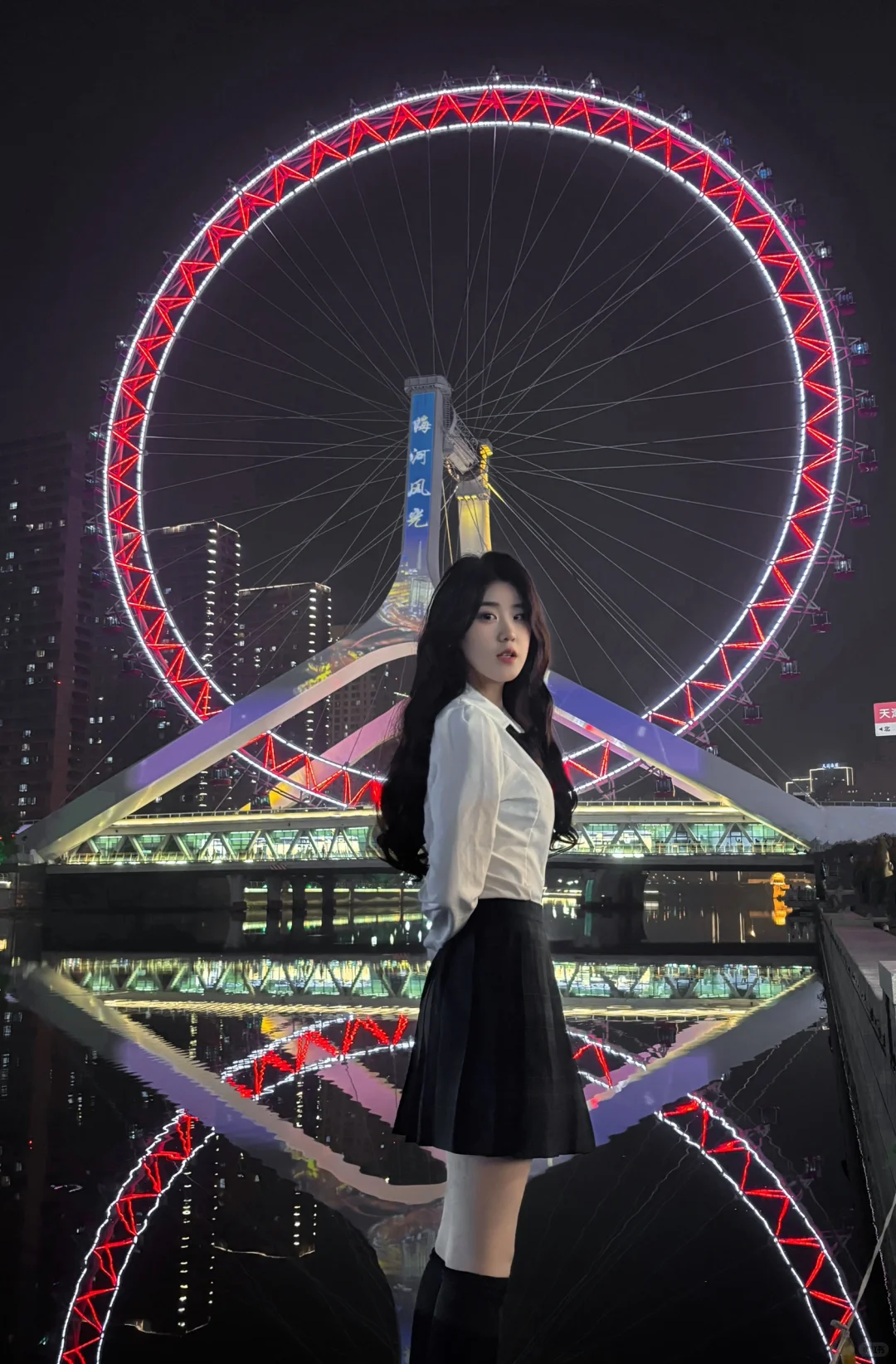 我宣布拍摩天轮和jk就是最搭的!!!简单不出错!天津现在的天气,外面搭个外套配个光腿神器刚刚好,不冷不热,大家冲鸭!!!