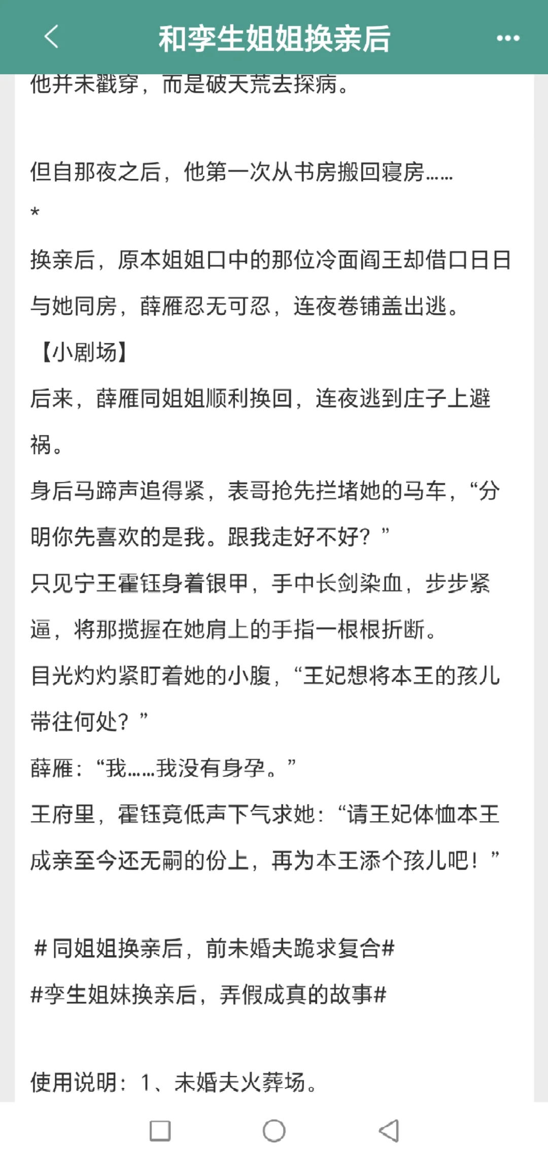 男主虽然娶错了妻,但打脸真香了。梗太香了吧!!男主从嫌弃,前一秒嘴硬绝不和妻子圆房,但分分钟打脸,在见到女主的那一刻,他的嘴都要咧到耳后根了,笑死!把所有的男下属都问了一遍,圆房该注意的事项,狗男人其实只为了炫耀自己娶了王妃,而下属都是一群单身狗,嫌弃他们不懂,笑死!!\n狗男人甚至好不掩饰自己想和女主圆房,你追我躲,女主因为男主过于黏人,天天躲他。\n后来狗男人更是无数套路女主圆房,女主不堪困扰,跑了,男配也是痴汉,天天跑人家夫妻家院子外面蹲着。女主想翻墙,发现院墙底下蹲两男人,哈哈哈哈,笑疯了!!#甜宠文小说 #甜甜的恋爱 #文字 #甜宠 #先婚后爱 #我会被文字打动 #书荒焦虑求推荐 #恋爱脑 #高甜来袭 #小说推文