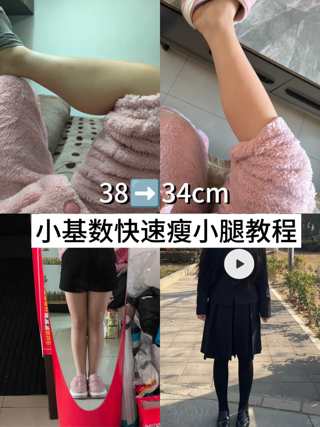 ·初始体重:112\n·今日体重:101.5\n·已掉:10.5\n·早餐:🈚\n·午餐:12个饺子➕一块桃酥\n·晚餐:水煮白菜\n \n本人情况:\n19年顽固梨型身材,上半身90斤,下半身120斤,以前曾经靠纯饿掉到100斤后,小腿依然在37cm左右\n \n今日整理了一下小腿一个月的对比,从38cm到34cm,比起体重的变化,我更欣喜小腿能够瘦下来!\n \n 针对小腿的训练我很有心得,在这一个月的磕磕绊绊里总结了一套高效的瘦小腿运动(教程放在p6啦❗)\n \n训练①:全身训练\n帕梅拉三部曲(40min)\n \n训练②:有氧后腿部拉伸\n帕梅拉8分钟腿部拉伸(8min)\n \n训练③:小腿训练\n韩小四12min无跑跳快速瘦小腿(12min)\n \n一套下来刚好一个小时,瘦小腿不是短期过程,它需要我们长期的坚持❗❗大部分人小腿粗是脂包肌所以在运动过程中有氧运动也是非常重要的,全身瘦下来小腿也会瘦^O^但像很多我们梨型身材的宝宝们,想要小腿有纤细感就得加上运动\n不要让“我”待在收藏夹里落灰啦宝宝^O^要动起来❗❗\n#live图 #运动给我带来的变化 #健身放松小腿 #减肥 #减肥打卡 #直腿 #塑形腿部线条 #运动 #瘦小腿 #瘦小腿肚