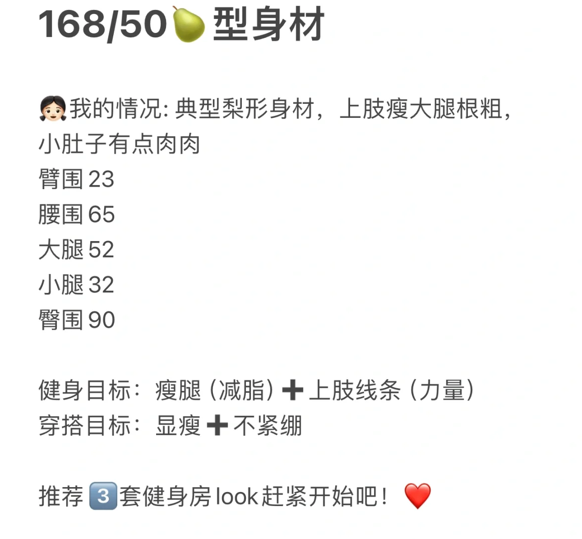 168/50🍐梨形身材小基数显瘦3️⃣套健身房穿