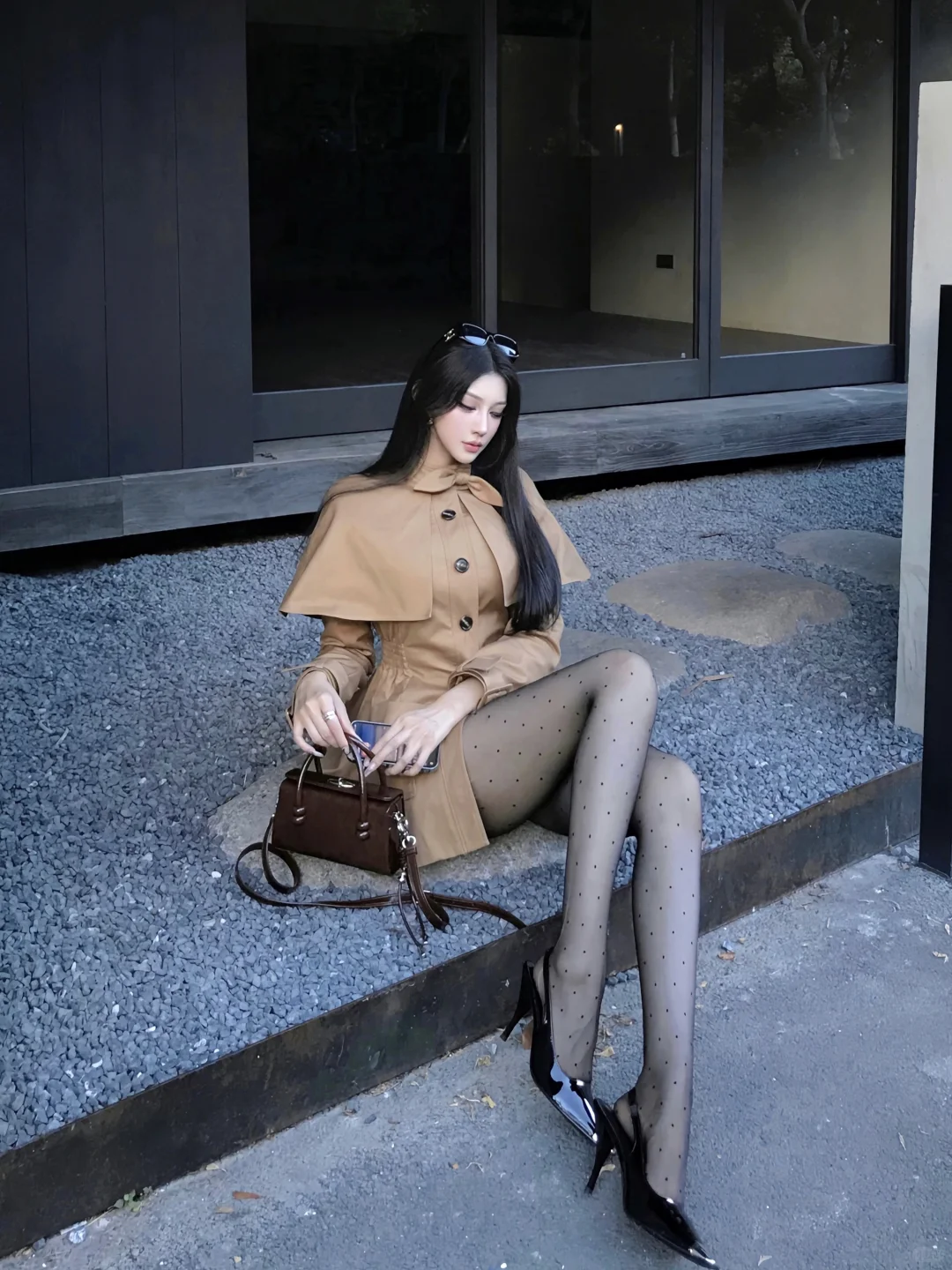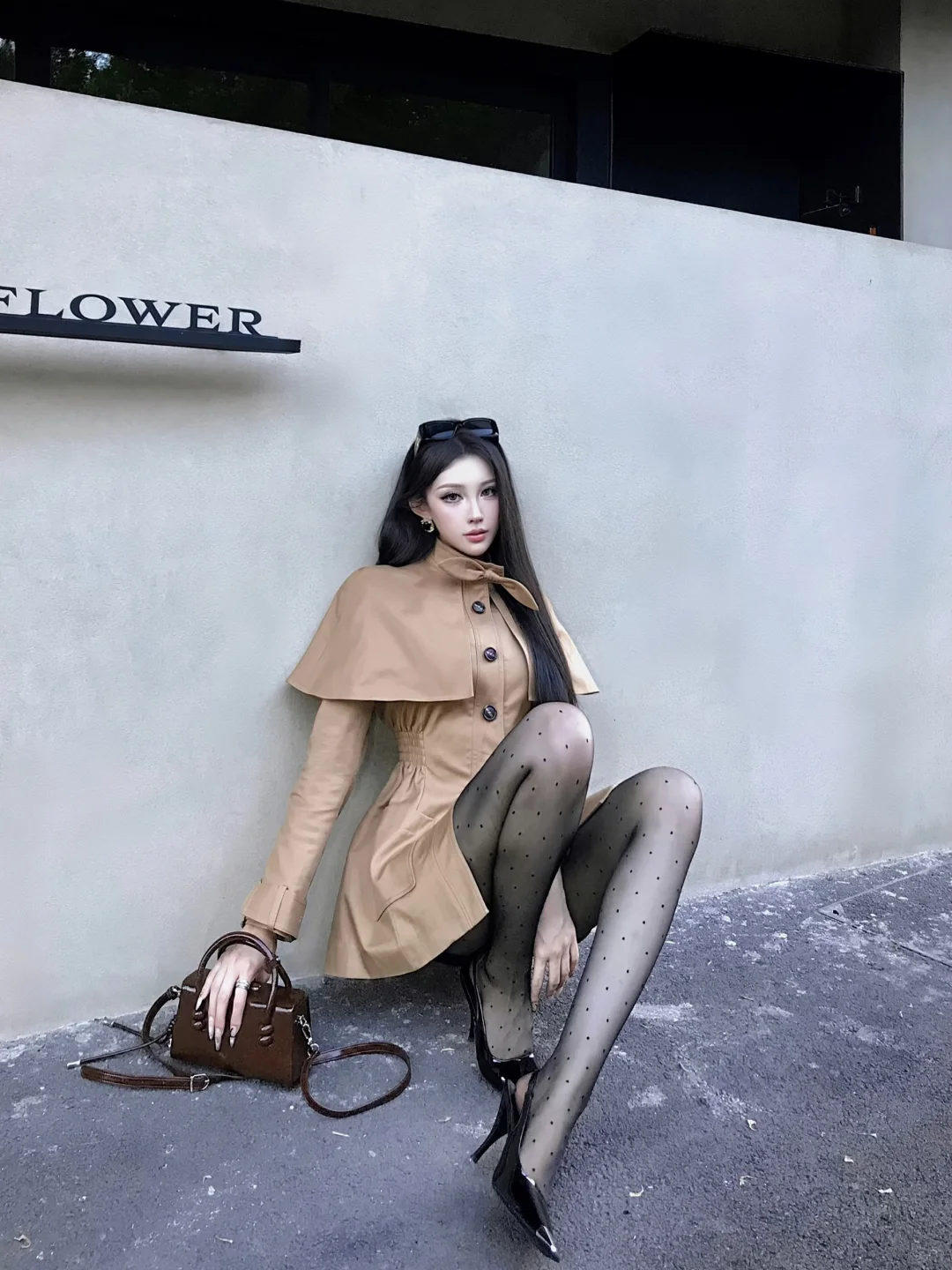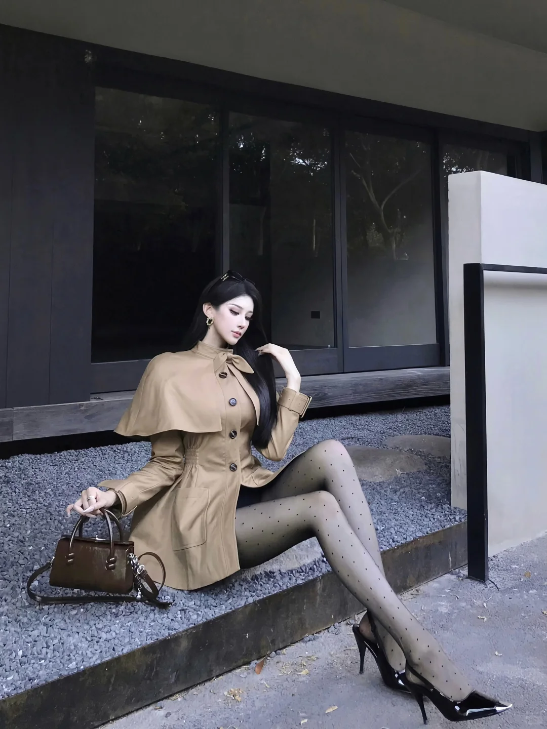 御姐三要素 长发 风衣 高跟鞋