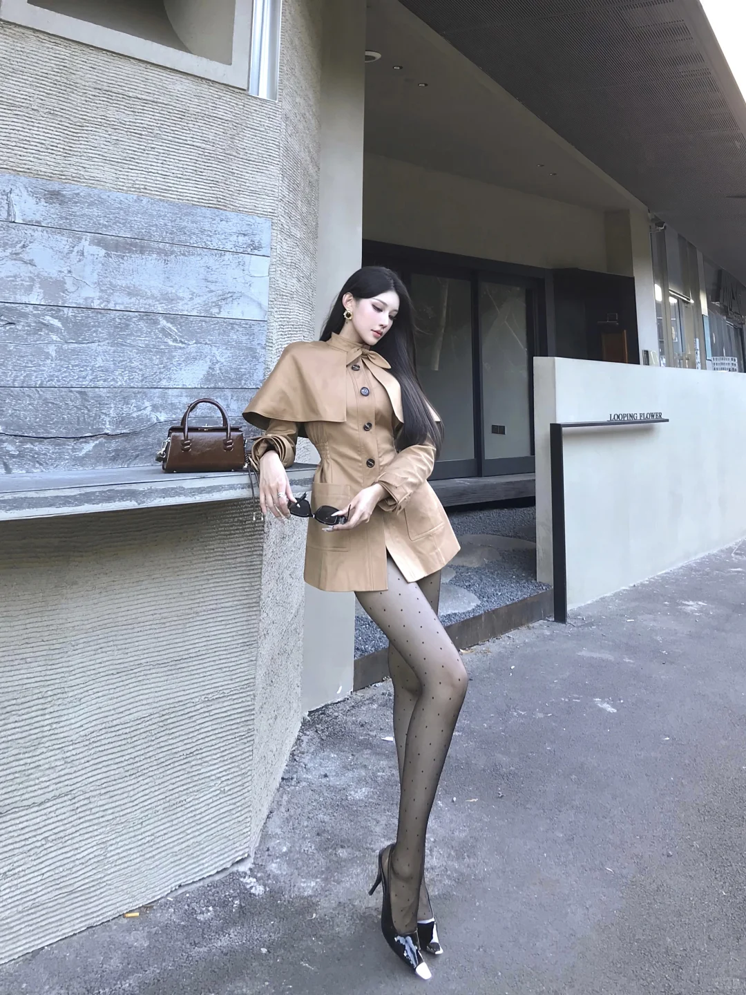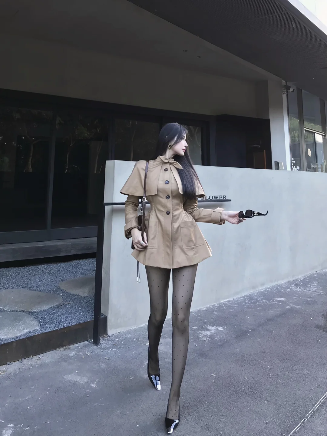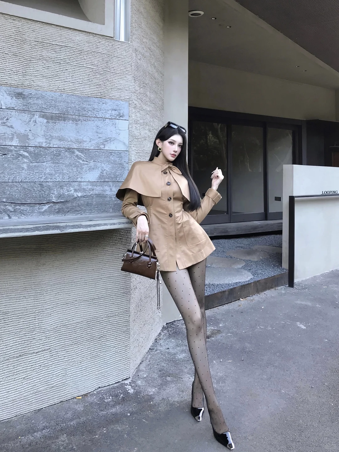 御姐三要素 长发 风衣 高跟鞋