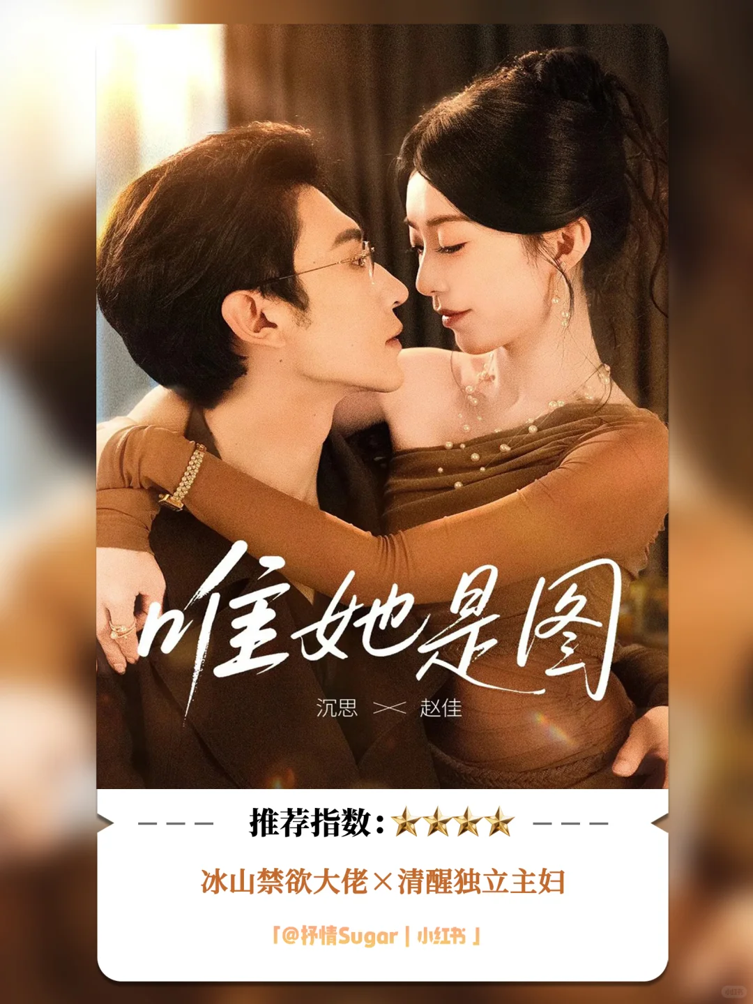 🤴🏻#沉思 +👸🏻#赵佳 熟男熟女。\n \n💛剧名:《唯她是图》\n \n🧡人设:冰山禁欲大佬✖清醒独立主妇,契约情侣❗️日久生情❗️假戏真做❗️觉醒主妇潇洒离婚开启逆袭,冷面大佬禁欲圣体爆改唯她主义,稳拿总裁,事业爱情两手抓。\n \n💜剧情:女孩八年婚姻倾尽所有,是前夫眼中免费的保姆。离婚后,她却成了港城大佬🤵🏻唯一的“解药”。两人签订契约📄,助她离婚逃离前夫一家✈️。在这段各取所需的关系里,她借势逆袭👊,直播打脸渣男,斩断原生家庭的枷锁⛓️,活成了万众瞩目的独立女性💃。他的倾心守护,也渐渐融化了她冰封的心❄️,两人从契约走向真心,共度幸福余生💕……\n \n❤️评价:三十而离第二版,剧情挺古早的,霸总厌女爱上要离婚的她。男主无限宠爱,女主不受气, 离婚快不扭捏,男二女二的出现就是无脑被虐。男女主挺贴角色的,脑子一扔就是看,挺甜挺下饭!8星推荐🤩!\n \n#短剧推荐 #短剧测评 #交换我的追剧repo #用专业看打开电视剧的多种视角 #小红书短剧金秋档 #唯她是图