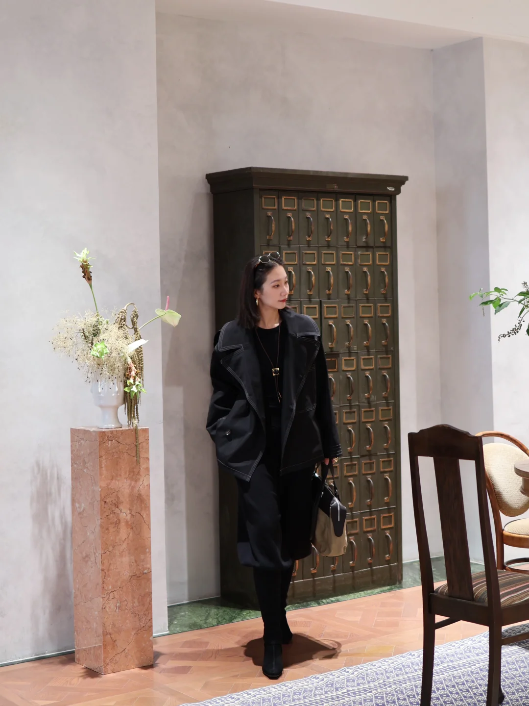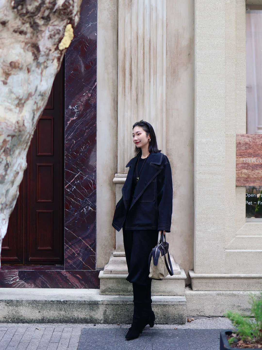 都市丽人的时髦气质☕️\n宽松又不失廓形感\n日常就喜欢这种松松的慵懒风~\n·\n🤦♀️:胸围86|腰围72|臀围98|大腿围58\n—————————————————————\n#秋日时髦尖子生 #廓系穿搭 #ootdinspo #每天一个穿搭灵感 #显瘦穿搭 #时髦女知识分子风 #超会穿企划 #松弛感穿搭 #潮流REDVibe #通勤穿搭