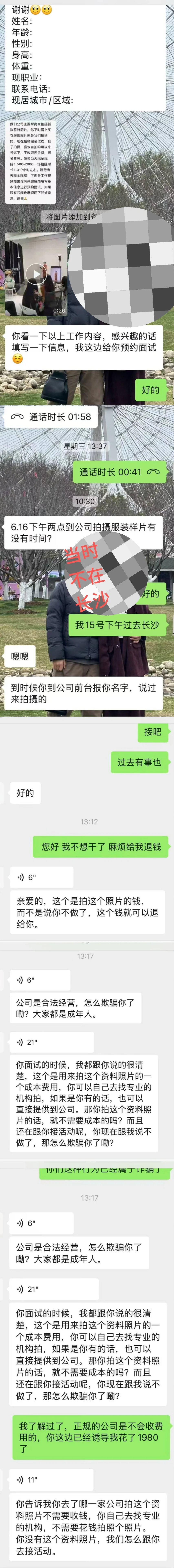模特面试被骗追钱过程
