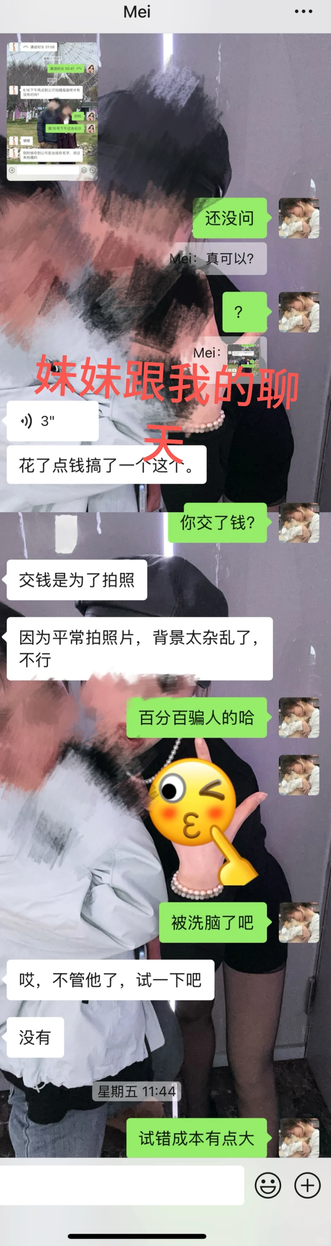 主包妹妹在6月11号去面试,开始没有意识到是骗局,公司跟妹妹说拍模卡,过程跟其他被模特兼职受害者一样,被忽悠拍模卡,傻傻交了1980块钱,除此外还有其他东西也是收钱的,比如胸贴,妹妹不愿意马上变脸,不过妹妹还是没有要。\n在6月14号公司发信息让妹妹6月16号去公司拍摄服装样片,辛亏跟我说了,我在小红书上搜了相关帖子(多看小红书还是能学到很多东西),发现模特兼职就是骗局。于是我向小红书上其他受害者学习了经验和话术,经过好几番纠缠终于把钱要了回来。\n其中公司很快就松口了,说可以退60%的费用,这让我和妹妹更加确定这就是骗局。\n还有公司拍出来的所谓模卡照片跟正规公司拍的根本不一样,而且贼丑,妹妹160,88斤,主包看了照片后也是一直在ma。\n聊天记录是妹妹发给主包的,妹妹发几条消息就会截图给主包看,所以有点乱,想发出来让大家也可以注意一下,希望大家不要被骗。\n我的追钱过程就是以上说的那些,大家不用私信我了哈\n#新人模特 #谨防上当受骗 #模特经纪人 #找工作避雷 #防骗 #防骗指南 #模特兼职 #服装模特 #模卡 #广告公司 #传媒公司 #模特日常 #防诈骗