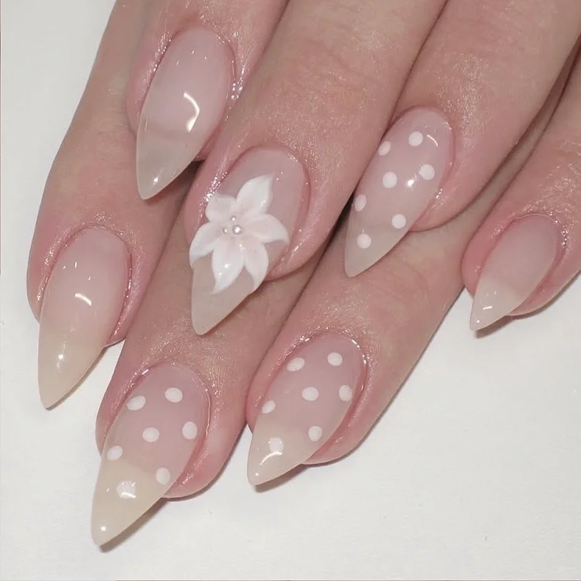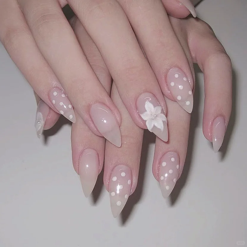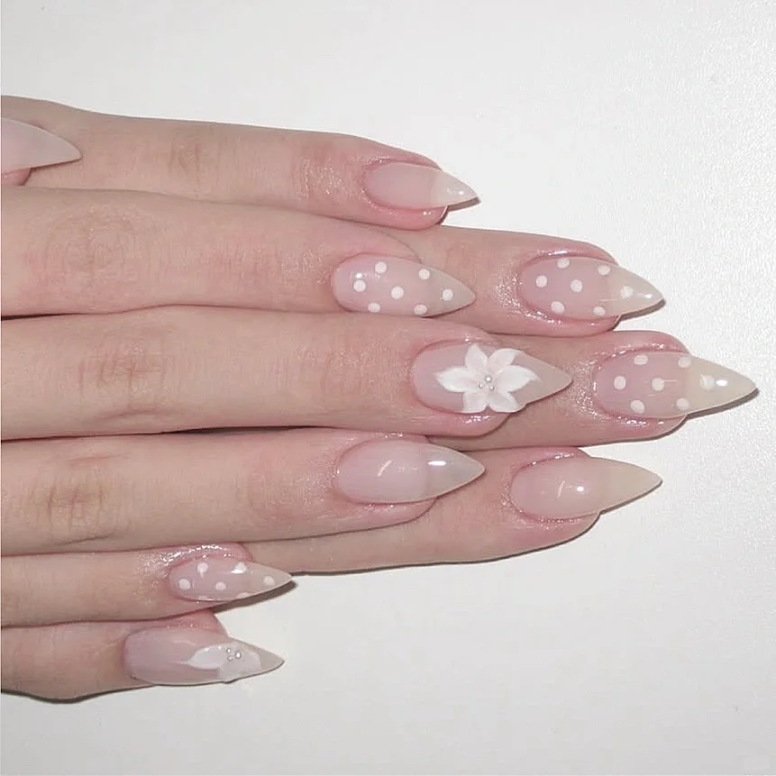 Nail share·纯欲清冷感奶油白波点花朵甲