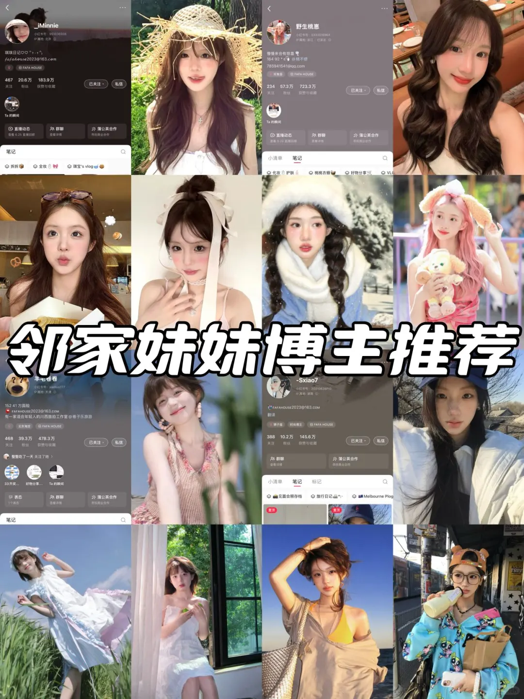 谁能拒绝邻家妹妹风格的美女啊!\n永远是那么甜甜的 温温柔柔的 看到就让人觉得世界真的很美好!\n-\n@_iMinnie\n甜妹!韩系甜妹!网感甜妹!🫧\n每一个妆容 穿搭 饰品都被种草到 想要拥有所有链接🔗\n整个人看起来像一个甜甜的水蜜桃🍑\n尤其喜欢看她的VLOG 更加生动了~\n-\n@野生桃崽\n元气邻家少女!\n谁懂啊 看桃崽的视频真的能感受到她满满的生命力 真的可以获取到能量💎\n鲜活 邻家 没有距离感的感觉\n好想跟她一起玩💛感觉会很有趣~\n-\n@羊毛卷卷\n如果要用一种水果形容卷卷的话\n我觉得是橙子🍊柠檬🍋🟩\n嫩嫩的 有活力的 酸酸甜甜的感觉~\n卷卷的VLOG也是我的日常下饭榨菜 井井有条充实的生活 让我觉得自己也想像她一样!\n-\n@-Sxiao7\n77虽然看起来潮潮酷酷的🖤\n但是只要你去了解她 就会发现 其实是一个鲜活的大学生妹妹!视频里的她太可爱啦!\n好喜欢这种反差的网感~\n-\n#美女 #博主 #邻家妹妹 #KOL #MCN #VLOG #博主推荐