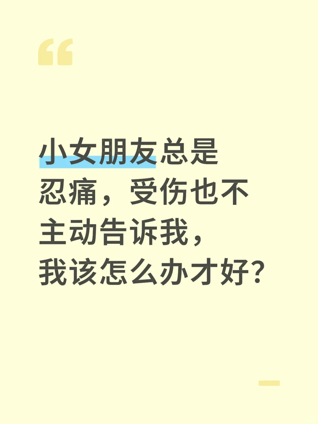小女朋友总是忍痛,受伤也不主动告诉我,我该怎么办才好?\n \n