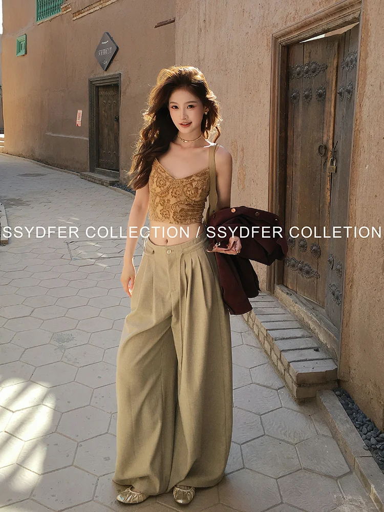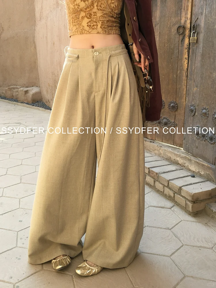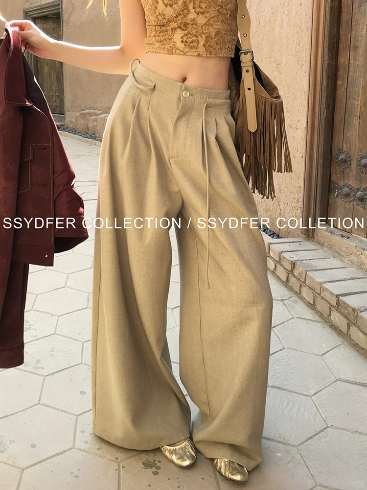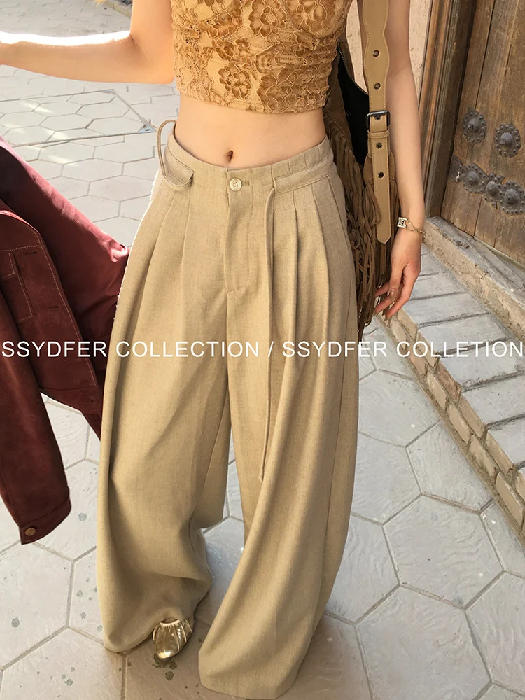 绅士Y 【高智姐感】新款褶皱气质时尚百搭设计感宽松休闲长裤女潮