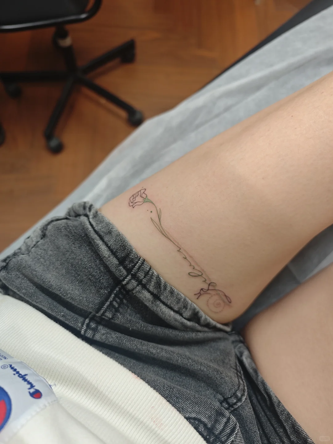 纹大腿上居然没什么感觉,相比锁骨,简直可以算作无感了