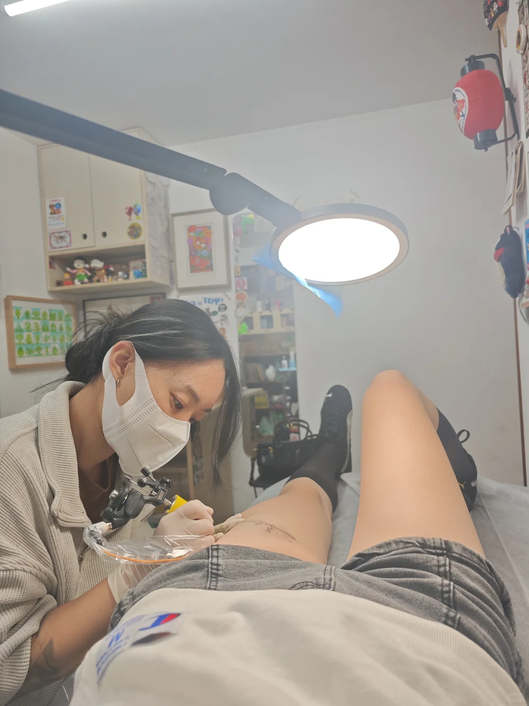 \n纹身师手稳得一批,20分钟不到就纹好了,她设计的图案也很好看哇\n