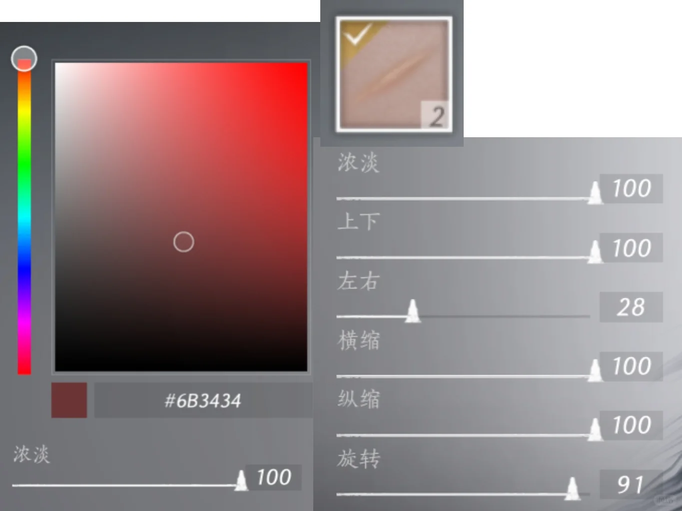 女人的伤疤妻子的荣耀\n二编:面纹拉条在p2-4可自取,再根据自己的捏脸调整位置颜色就好了!\n