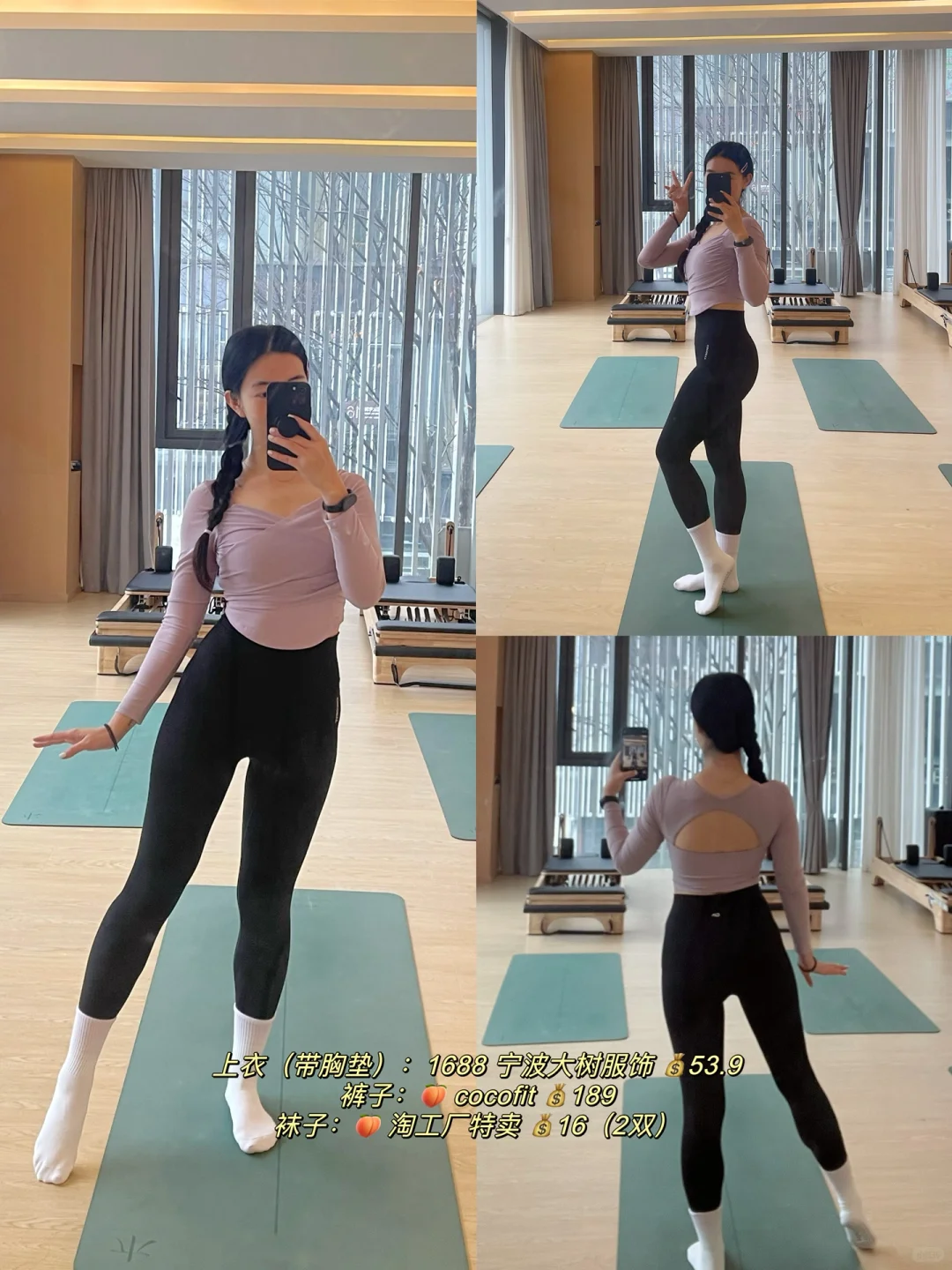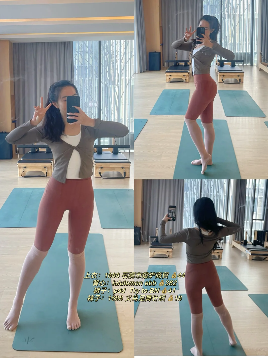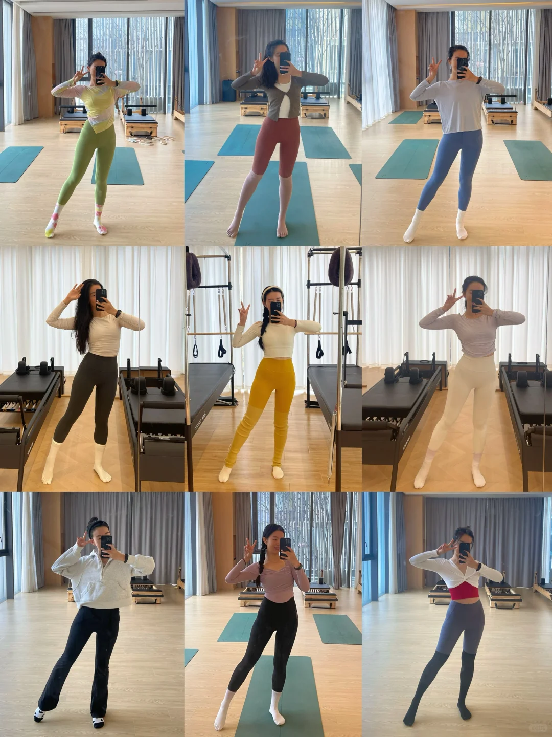 😁前段时间拍了好多ootd,\n一直没时间分享出来~\n \n今天想分享下:\n【冬天练瑜伽&普拉提,\n应该怎么穿~】\n \n作为一名瑜伽&普拉提老师,\n我的冬季穿衣原则是:\n保暖、好看、舒适,\n三者缺一不可~\n \n保暖:\n冬天天气寒冷,\n瑜伽馆如果没有地暖的话,\n垫上或器械上都还是蛮冷的,\n一定要做好足部保暖,\n穿上瑜伽袜,\n还可以需要看看要不要穿袜套~\n \n瑜伽服可以换成长款的上身&夏装,\n也可以里面穿短款背心,\n外面穿上贴身的长款上衣~\n无论如何,\n保暖是我的di一要义~\n \n舒适:\n瑜伽服要贴身,\n方便教练看到你的肌肉发力、\n身体曲线,\n有助于教练帮你调整体式正位,\n在正确的动作下进行练习。\n \n具有包裹性的同时,\n注意也不要过紧过肋,\n影响自然顺畅的呼吸~\n也影响练习时的动作。\n \n选择合适自己的尺码,\n弹力比较好的材质,\n舒适柔软的面料~\n \n好看好看好看!\n好看也是购买和选择瑜伽服的重要因素!\n尽管到了冬天好像窗外一片凋敝,\n但通过彩色系的穿搭,\n好像能让练习的时候更愉悦~\n \n再加上运动本身会分泌多巴胺和内啡肽,\n让你更加愉悦和满足~\n除了黑白灰这种常规不出错的颜色,\n也可以通过彩色系的穿搭,\n让自己成为教室里坠靓的崽!\n \n图片里都附上了穿搭的来源和💰,\n我的原则是:\n只买对的,不执着于贵的\n(而且作为自由瑜伽&普拉提老师,\n收入真的不高啊啊啊,\nlulu这种价位的买几件差不多了😅)\n \n因为每天几乎都是瑜伽穿搭,\n也挖到了很多性价比超高的宝藏店铺 🤪\n \n#瑜伽 #瑜伽日常 #普拉提 #我的普拉提日常 #瑜伽穿搭 #瑜伽服 #瑜伽服推荐 #瑜伽普拉提 #瑜伽服搭配 #瑜伽老师 #瑜伽老师的日常 #瑜伽老师养成记 #瑜伽老师日常穿搭 #普拉提老师 #普拉提教练日常 #我的瑜伽服穿搭