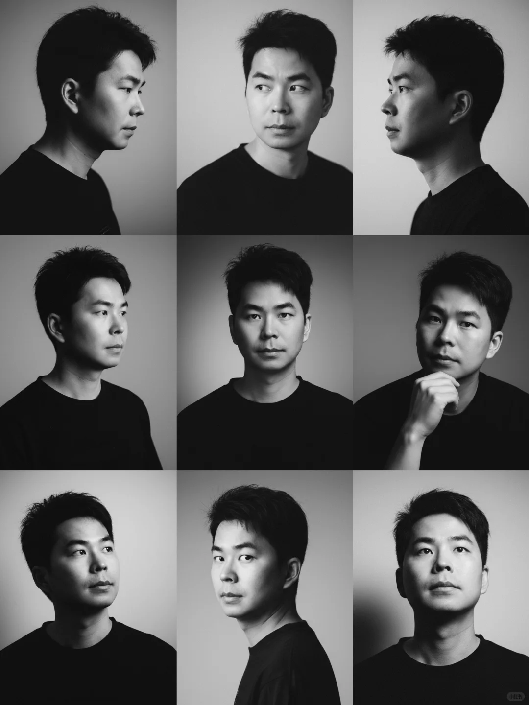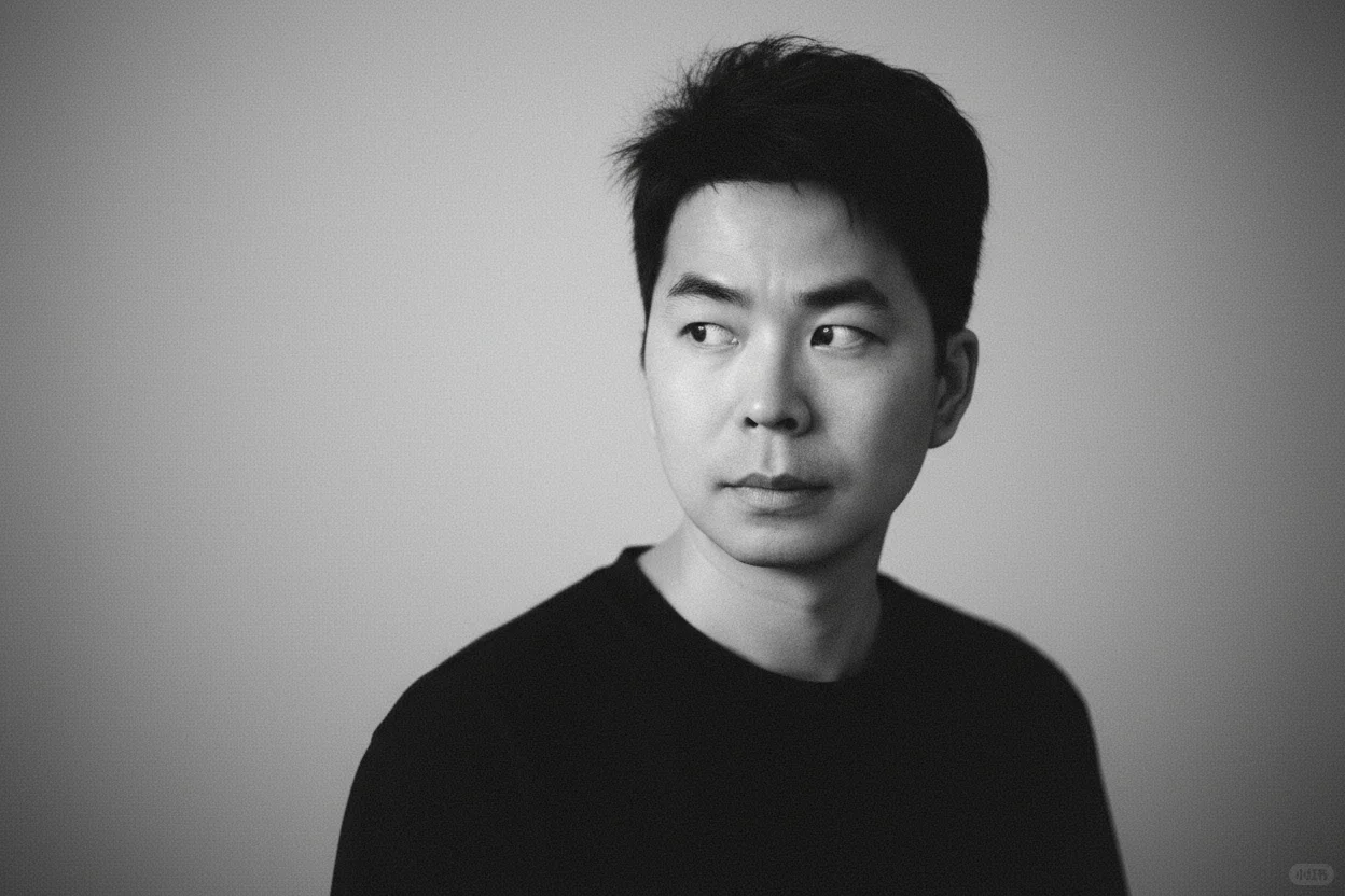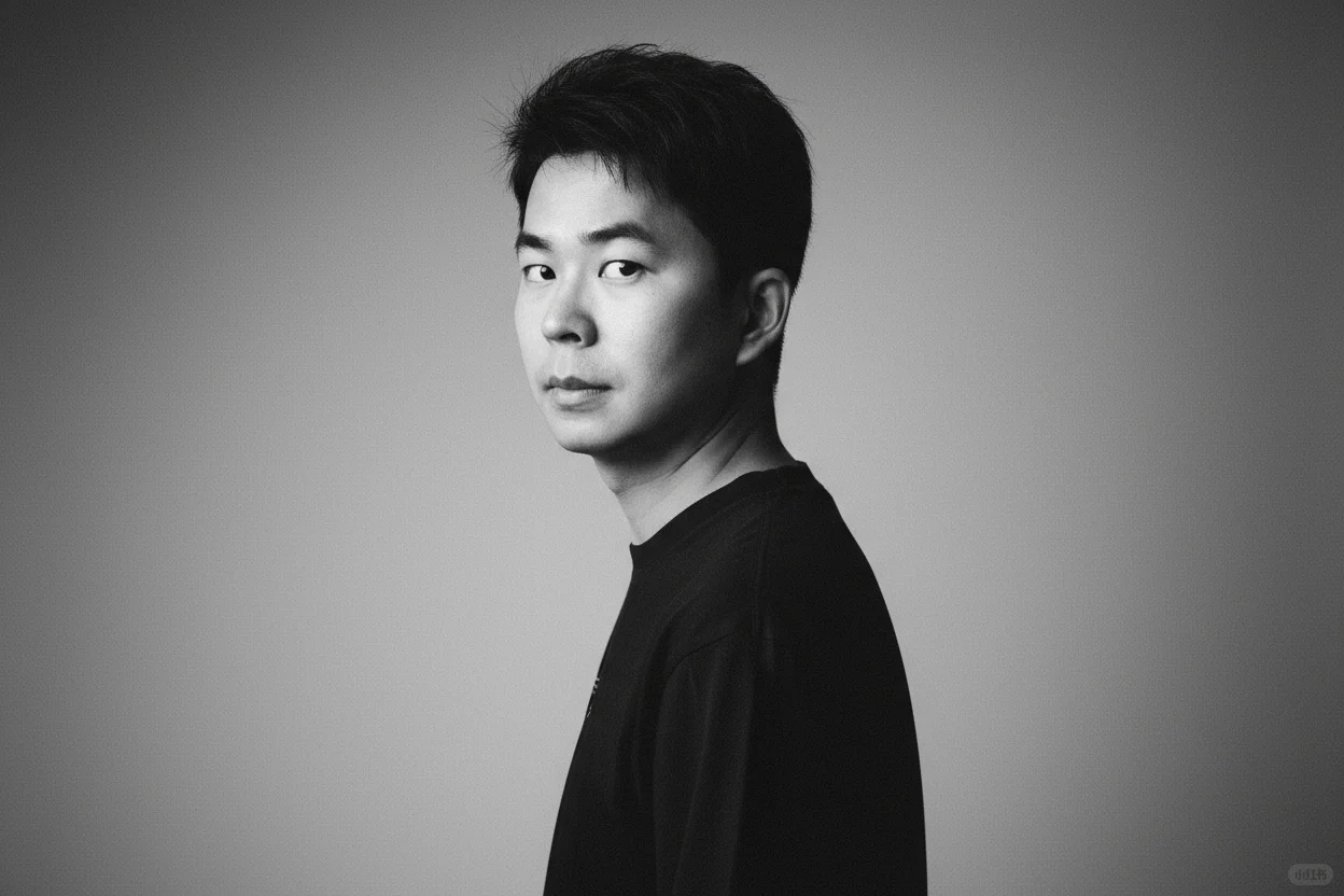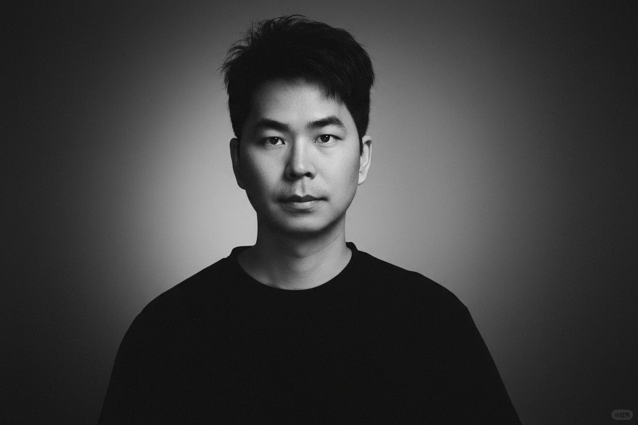 一束温柔的定向光,柔和地漫射开来,轻抚他的面颊曲线,或在眼中闪现光点——这是画面的情感核心。其余部分以大量负空间占据,刻意保持简洁,使画面自由呼吸。画面中没有文字、没有标志——只有光影与情绪交织。