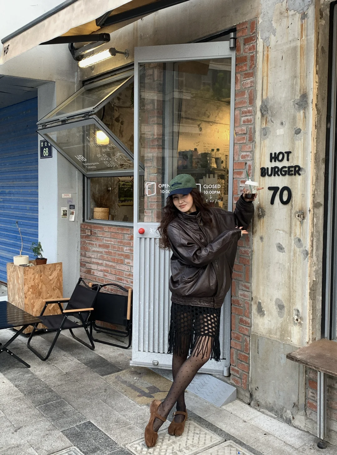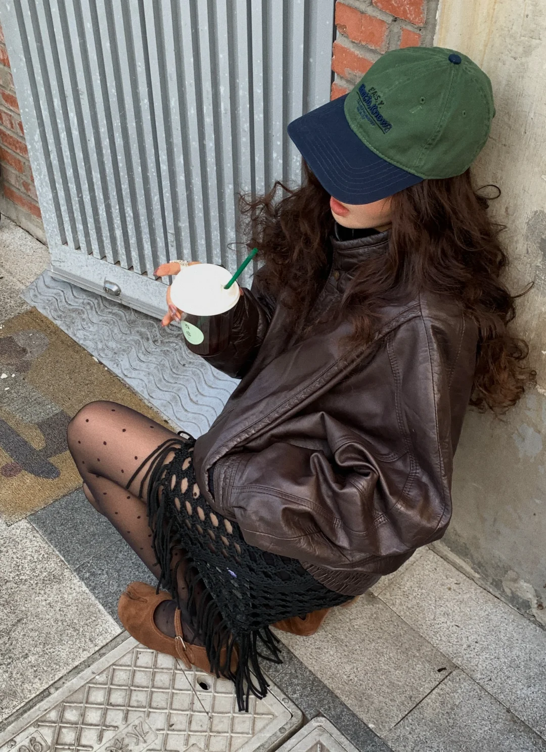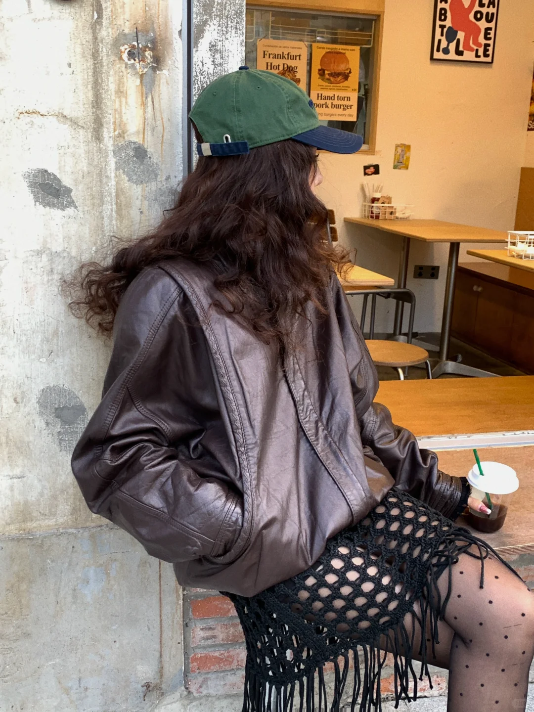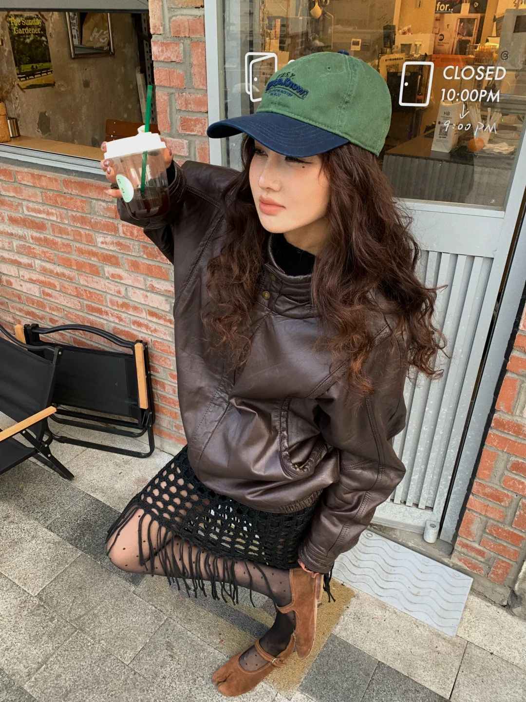 秋冬穿搭 | 复古棕皮衣配上绿帽子就是精髓