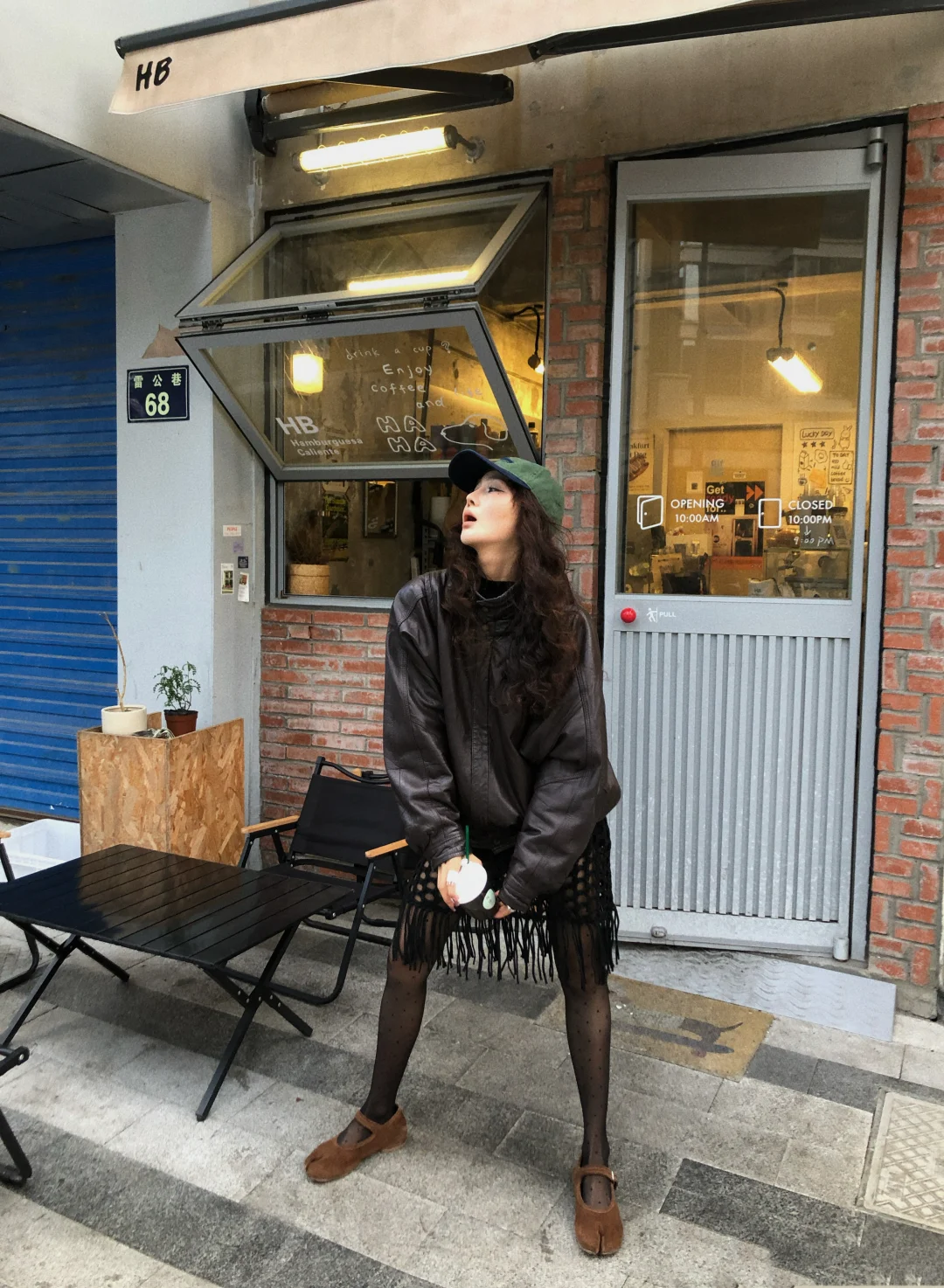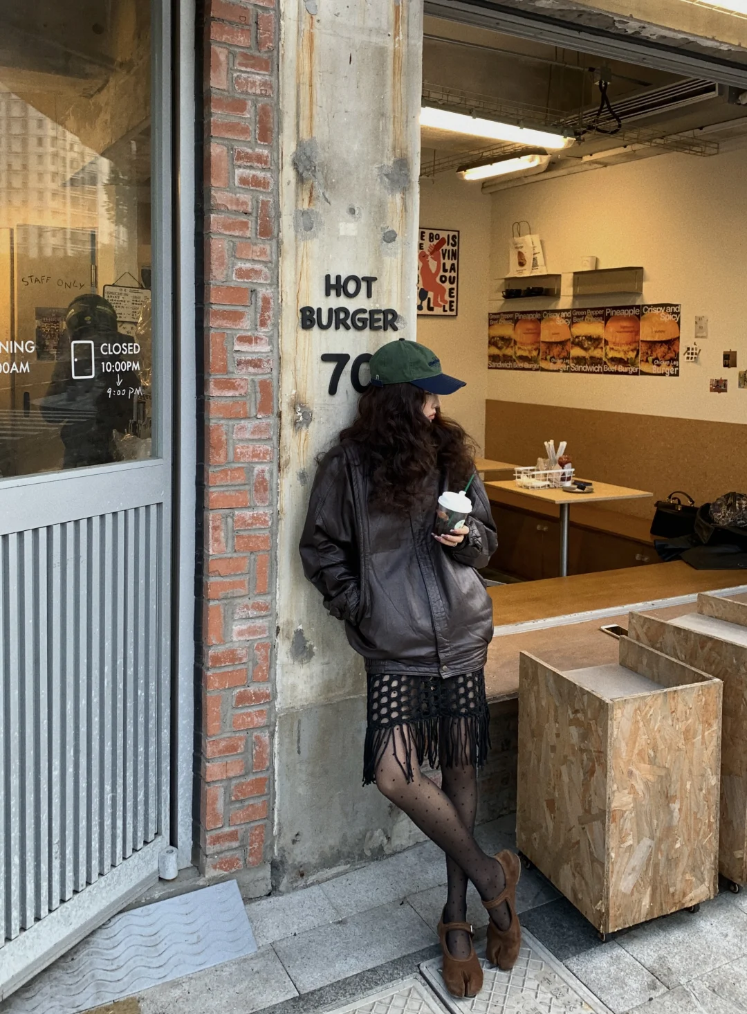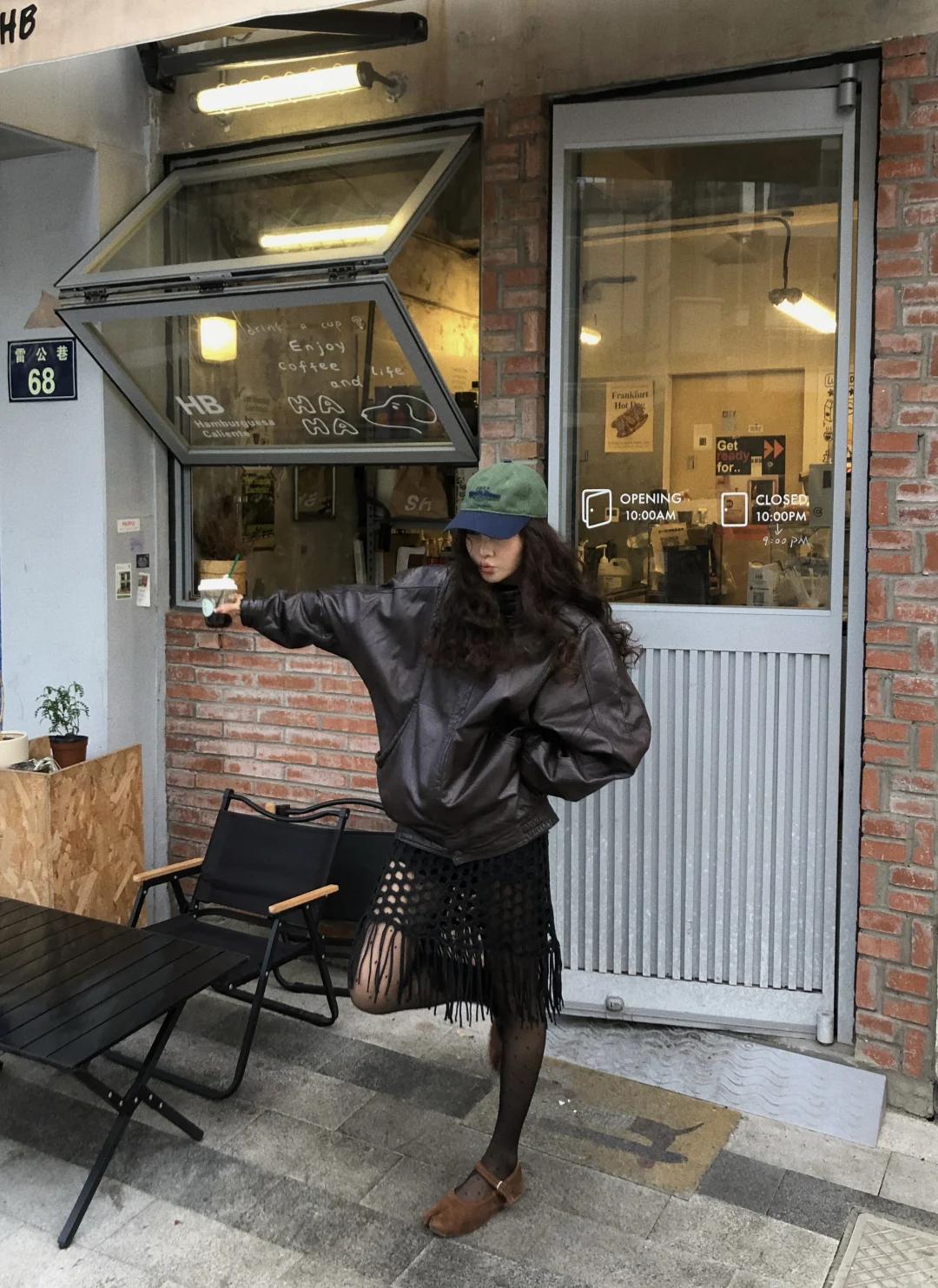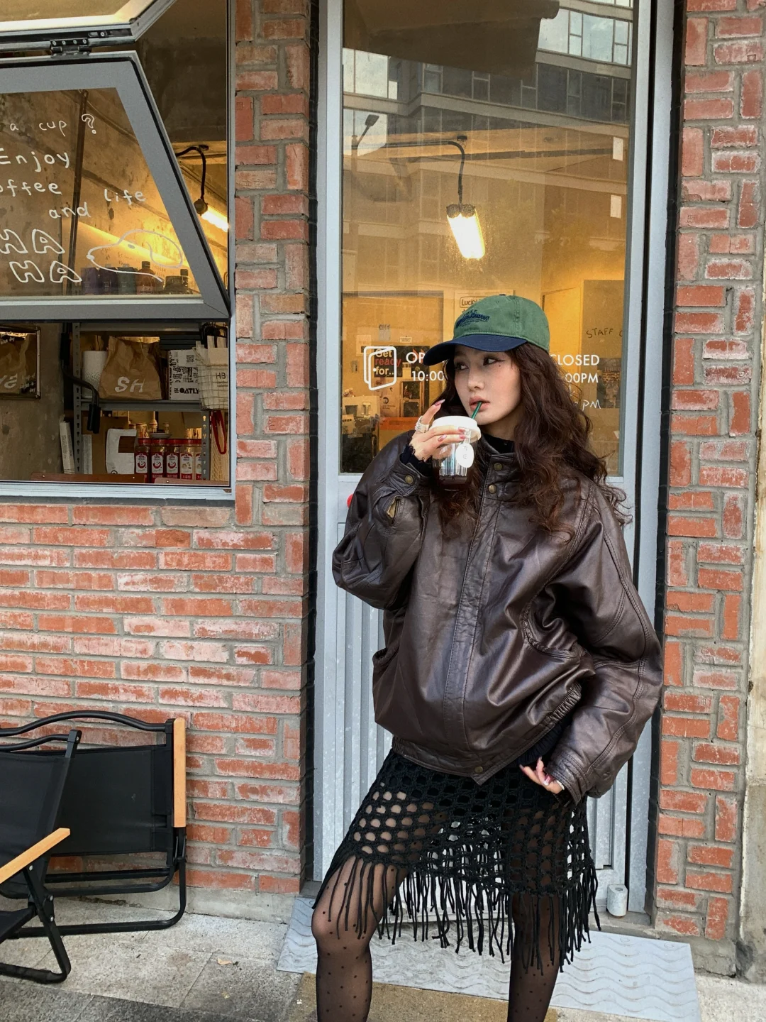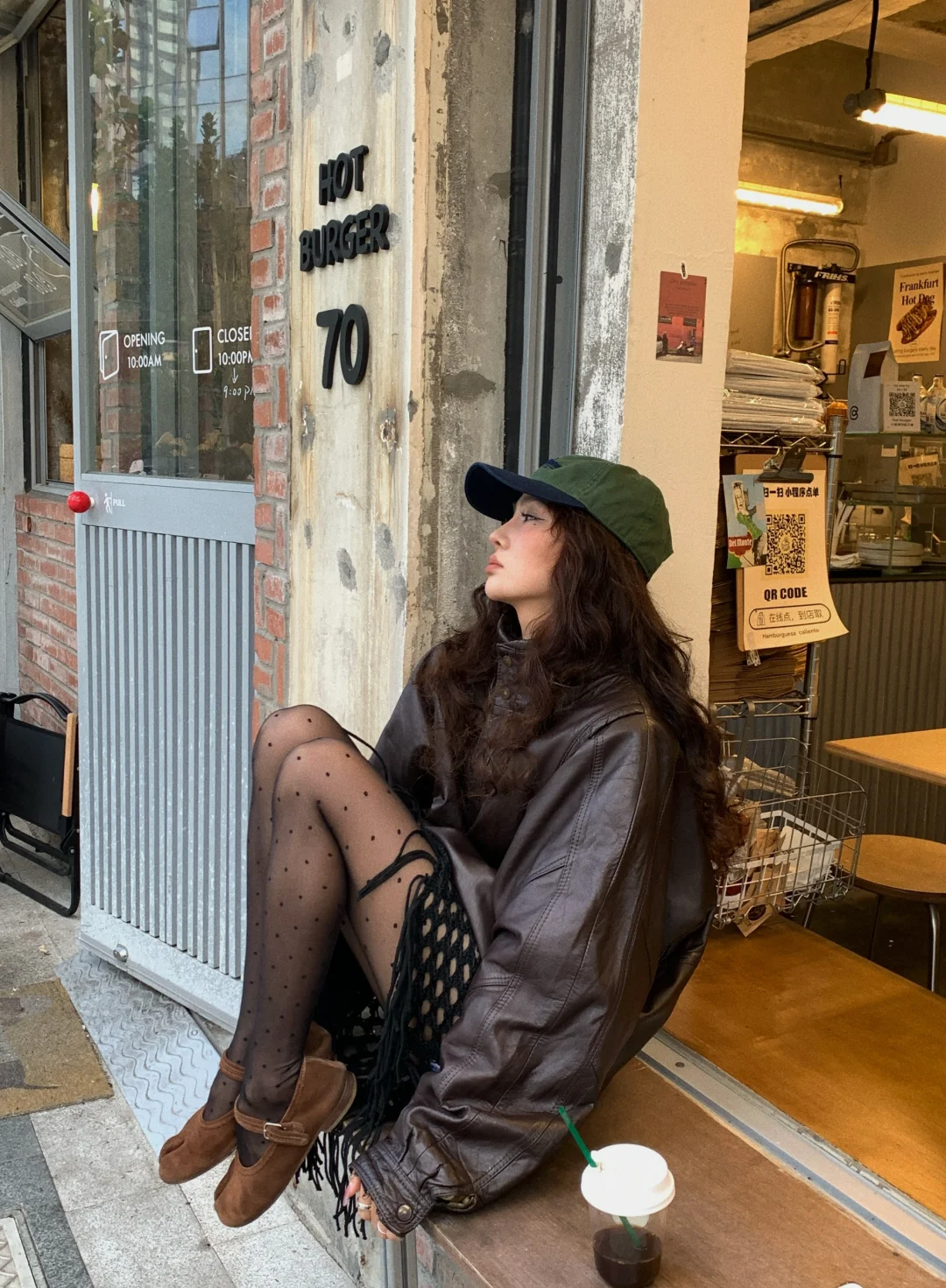 秋冬穿搭 | 复古棕皮衣配上绿帽子就是精髓