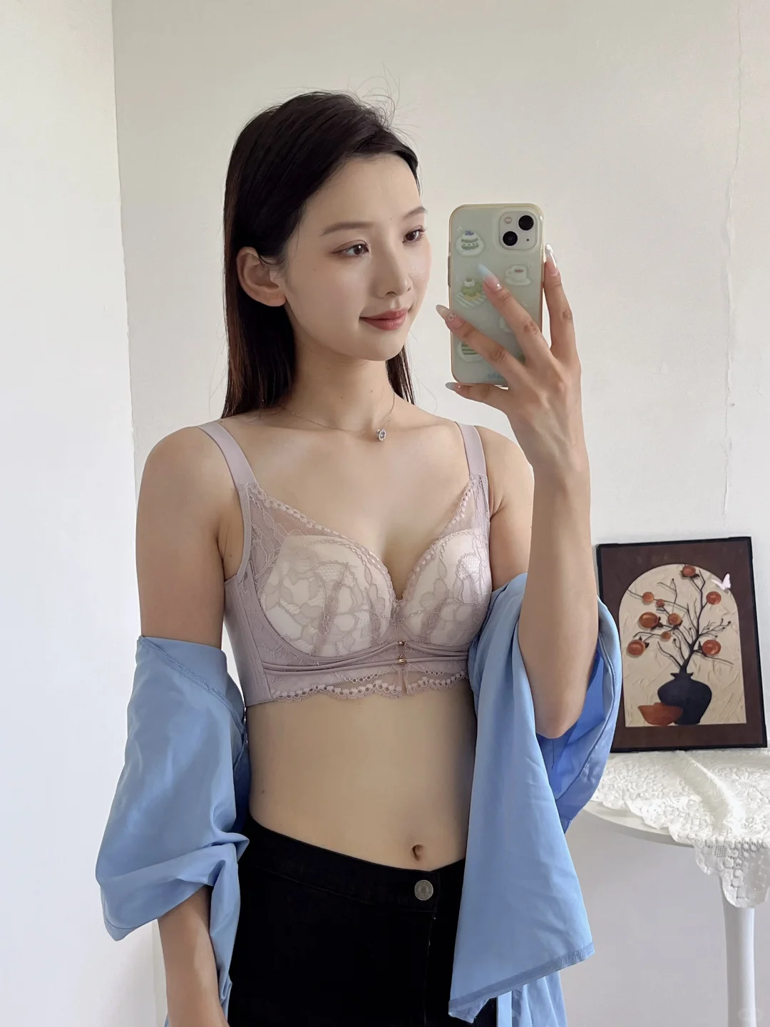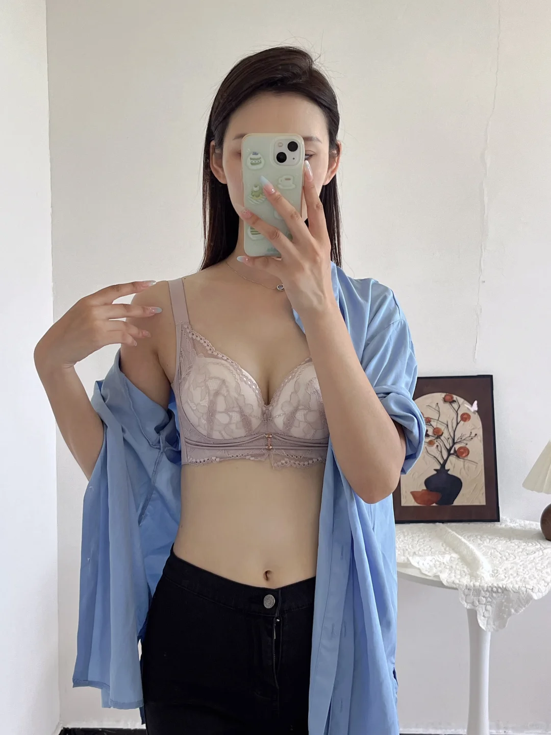 小胸姐妹在哪里!!谁懂找内衣的痛啊 —— 要么空杯到尴尬,要么聚拢得像束缚带,\n直到遇到这件蕾丝 bra,我直接大喊 “挖到宝了”\n✨颜值党狂喜!蕾丝太会了\n浅调的蕾丝花纹精致又温柔,像把月光织在了上面~\n软乎乎的蕾丝完全不扎肉,敏皮也能安心穿!穿上瞬间觉得自己又纯又欲,照镜子都忍不住多盯两眼!\n✨ 75A 聚拢救星!不空杯 + 自然沟\n以前穿内衣,要么杯型大到晃荡,要么勒得胸口闷。但这件!! 罩杯贴合度绝了,75A 穿完全不空杯,还能把胸型托得圆圆润润,自然挤出一点点沟(但不是刻意勒出来的那种!),小胸瞬间有了 “存在感”,纯欲感直接拉满,再也不是平板女孩啦~\n🌿 舒适度直接焊在身上\n里料软软糯糯的,像云朵贴在皮肤上!\n肩带宽度刚好,不会滑落也不会勒出红印子,一整天下来肩膀都没负担~\n还有前扣设计(穿脱超方便!),懒癌星人狂喜~\n🛍️ 搭配性拉满!外穿也封神\n单穿的时候,蕾丝边若隐若现,小性感直接戳中审美;\n像我这样搭件衬衫当外搭,解开几颗扣子露出蕾丝,\n氛围感直接拉满,约会、逛街被问了好几次链接!\n小胸姐妹真的闭眼冲!颜值、聚拢、舒适全在线,\n穿上你就是纯欲天花板本人,这波草种得值哭了👙✨\n🔖 标签: 小胸内衣推荐 #75A 内衣 #聚拢不勒内衣 #蕾丝纯欲风 #内衣种草#舒服内衣分享 #超美文胸 #升杯逆龄显瘦