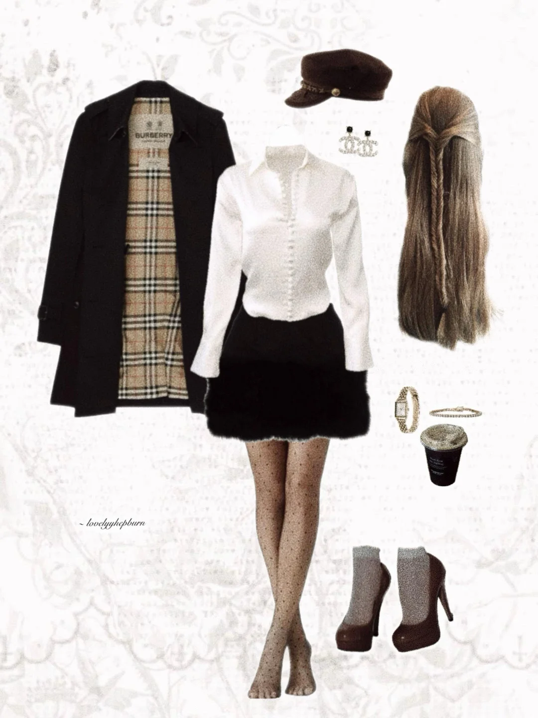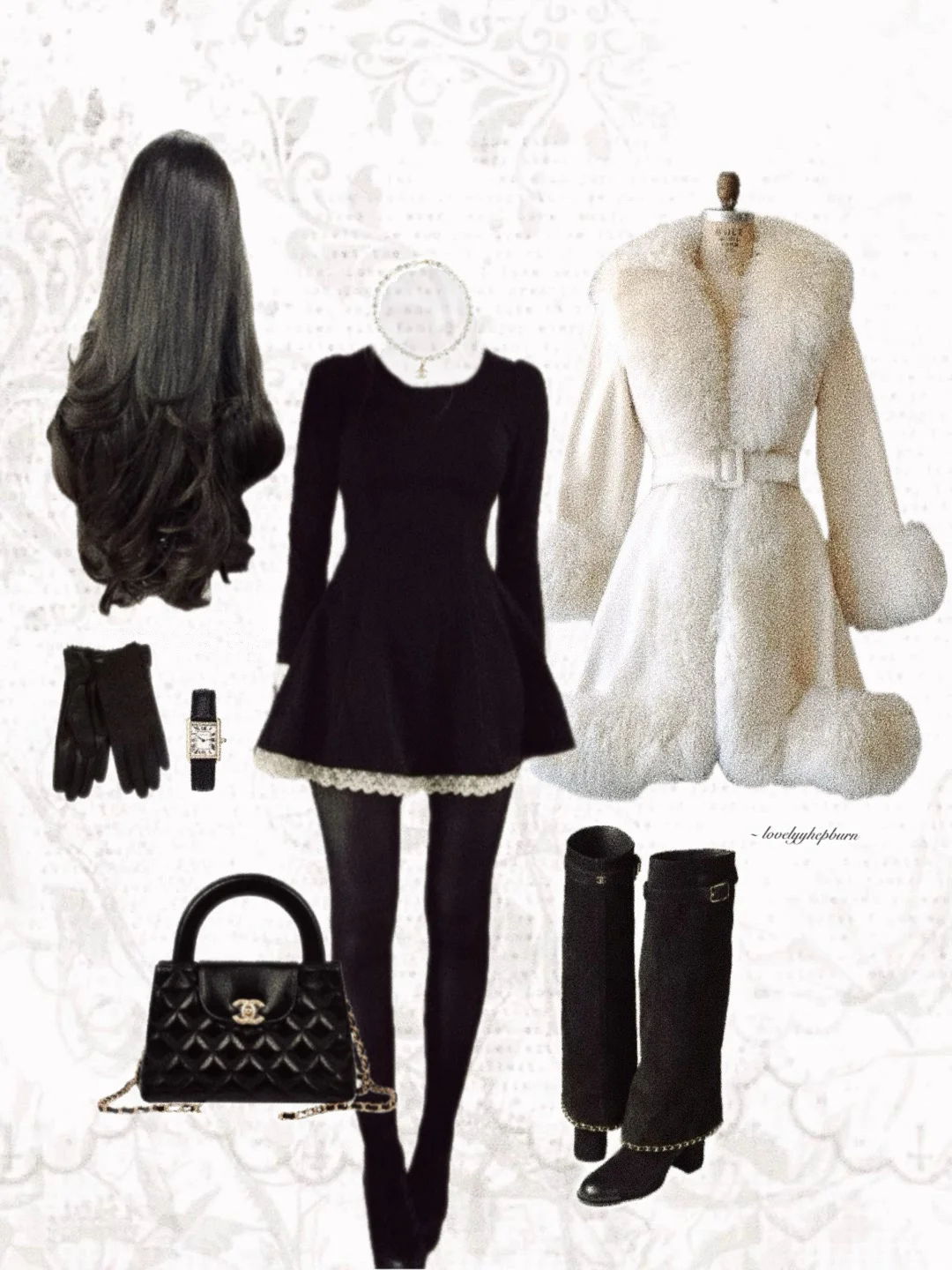 宝子们!挖到6套绝美的复古名媛黑白穿搭,每一套都像从老电影里走出来的,优雅又高级,约会、晚宴、轻奢出街全场景拿捏~\nBurberry风衣套装\n黑色Burberry风衣搭配白色衬衫+黑色毛绒半裙,再戴顶棕色报童帽,英伦复古感直接拉满~踩上棕色高跟鞋,拎个复古手提包,轻奢聚会选这套,“富家千金”既视感说来就来~\n黑白撞色连衣裙\n黑白撞色连衣裙搭配白色毛绒外套,优雅又别致~踩上黑色蝴蝶结高跟鞋,拎个鳄鱼纹Chanel包,重要场合选这套,“复古名媛”既视感说来就来~\n白色风衣套装\n白色收腰风衣搭配黑色蕾丝内搭,复古又干练~踩上黑色高跟鞋,拎个Chanel花呢包,晚宴选这套,“气质女神”直接焊在身上~\n👗皮草外套+小黑裙\n白色皮草外套搭配黑色蕾丝小黑裙,奢华又吸睛~踩上黑色长靴,拎个Chanel菱格包,高级派对选这套,贵气感直接溢出屏幕~\n蕾丝上衣+皮裙\n白色蕾丝上衣搭配黑色皮裙,甜酷又复古~踩上蕾丝高跟鞋,戴顶Chanel贝雷帽,日常出街选这套,吸睛率100%~\n粗花呢外套套装\n黑白粗花呢收腰外套搭配黑色过膝袜,复古又时尚~踩上黑色高跟鞋,拎个Chanel菱格包,通勤选这套,干练感直接焊在身上~\n每一套都戳中名媛审美点,把复古优雅穿进生活,宝子们快pick喜欢的look,一起美成复古画报女主角~\n#复古穿搭 #名媛风 #黑白配 #ootd#时尚是轮回 #黑白色系搭配 #气质黑色系 #黑白穿搭 #优雅与精致 #法式优雅穿搭\n \nget衣服进裙👇
