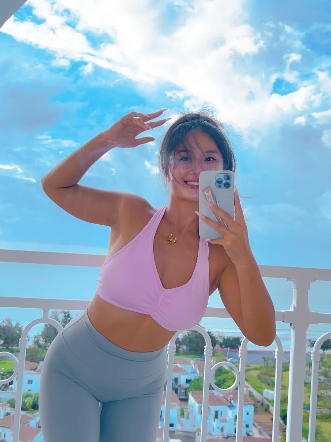 好爱今天的天气,淡淡的蓝色,清晨起来,浅浅运动一下🧘🏽♀️\n今日ootd是灰粉配,是甜辣味~女孩子肉肉的真的很美呀\n#我的运动日常 #flowfit #浪漫生活的记录者 #辣妹 #微胖穿搭 #微胖才是真性感 #瑜伽 #自信的女孩会发光 #她很迷人因为她擅长做自己 #当我放弃白幼瘦审美