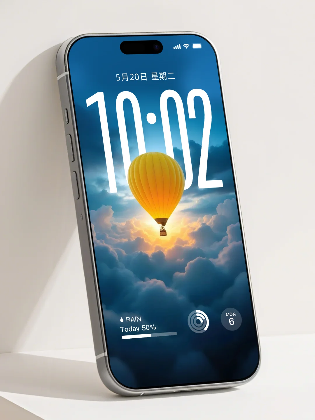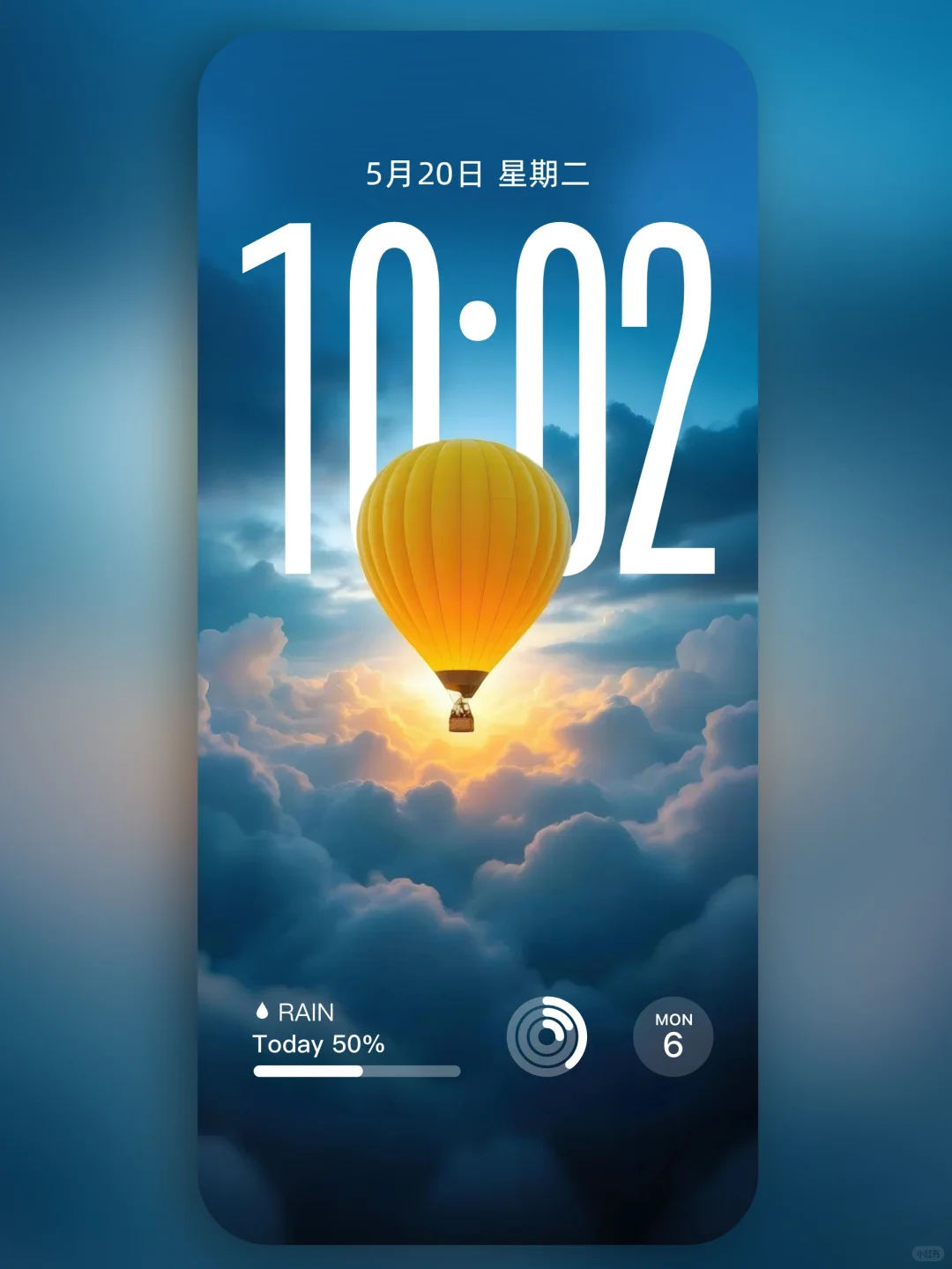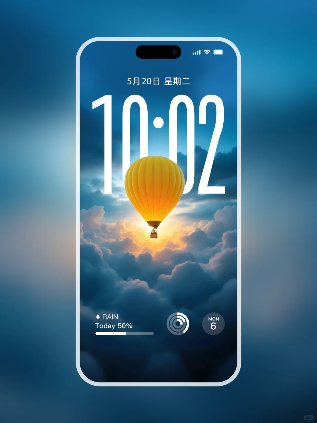 🎈 明黄色的热气球在云层间飘着,阳光从旁边透出来,像把所有温柔都聚在一起。\n \n☁️ 层层叠叠的云朵,有的被染成暖黄色,有的还带着天空的蓝,看着特别顺眼。\n \n每次解锁手机,都感觉像跟着热气球一起,在天空里慢悠悠地飘,烦恼都被甩在后面了。\n \n✨ 把它设成壁纸,好像每天都能拥有一段属于自己的、轻飘飘的时光~\n \n
