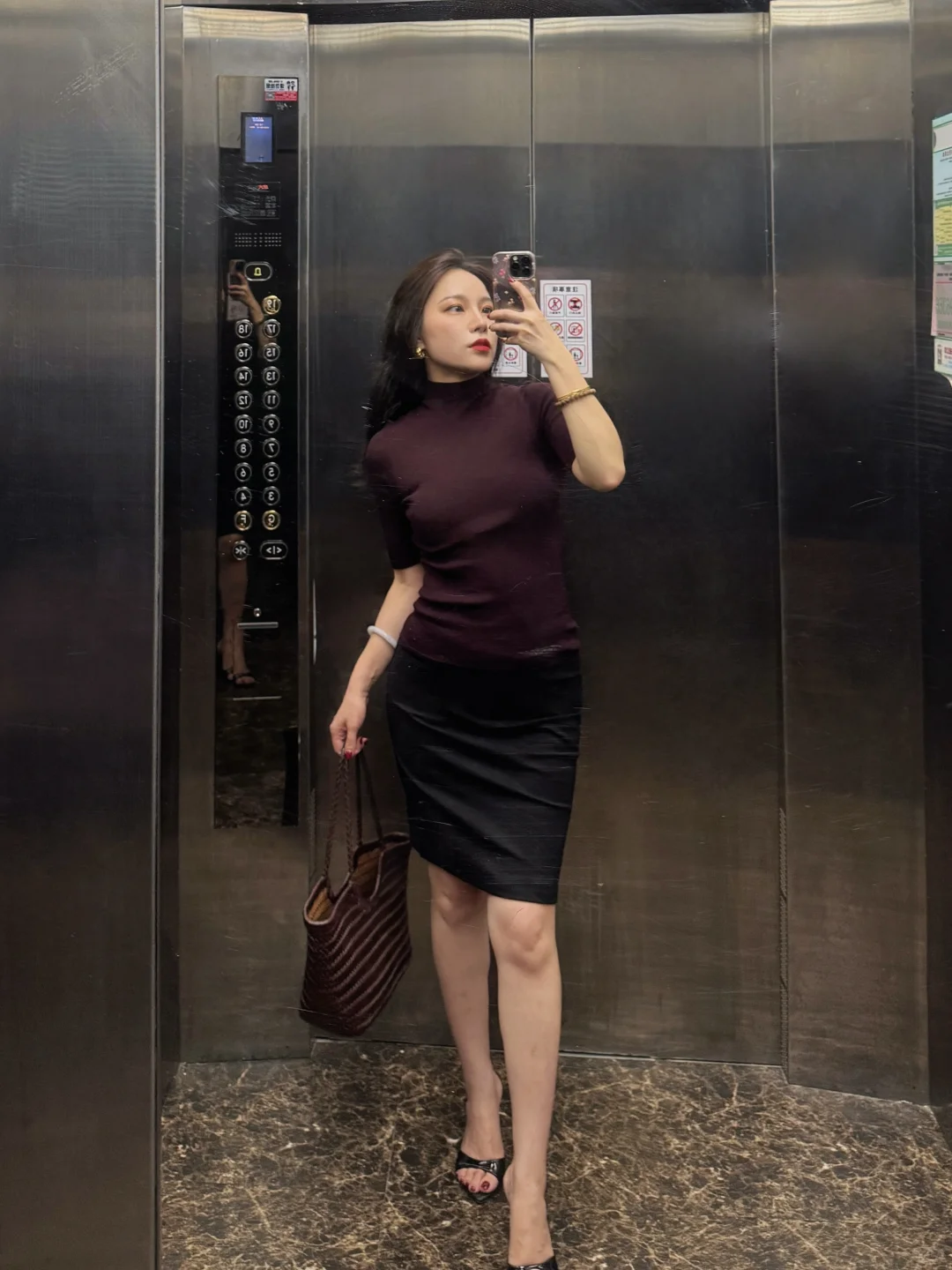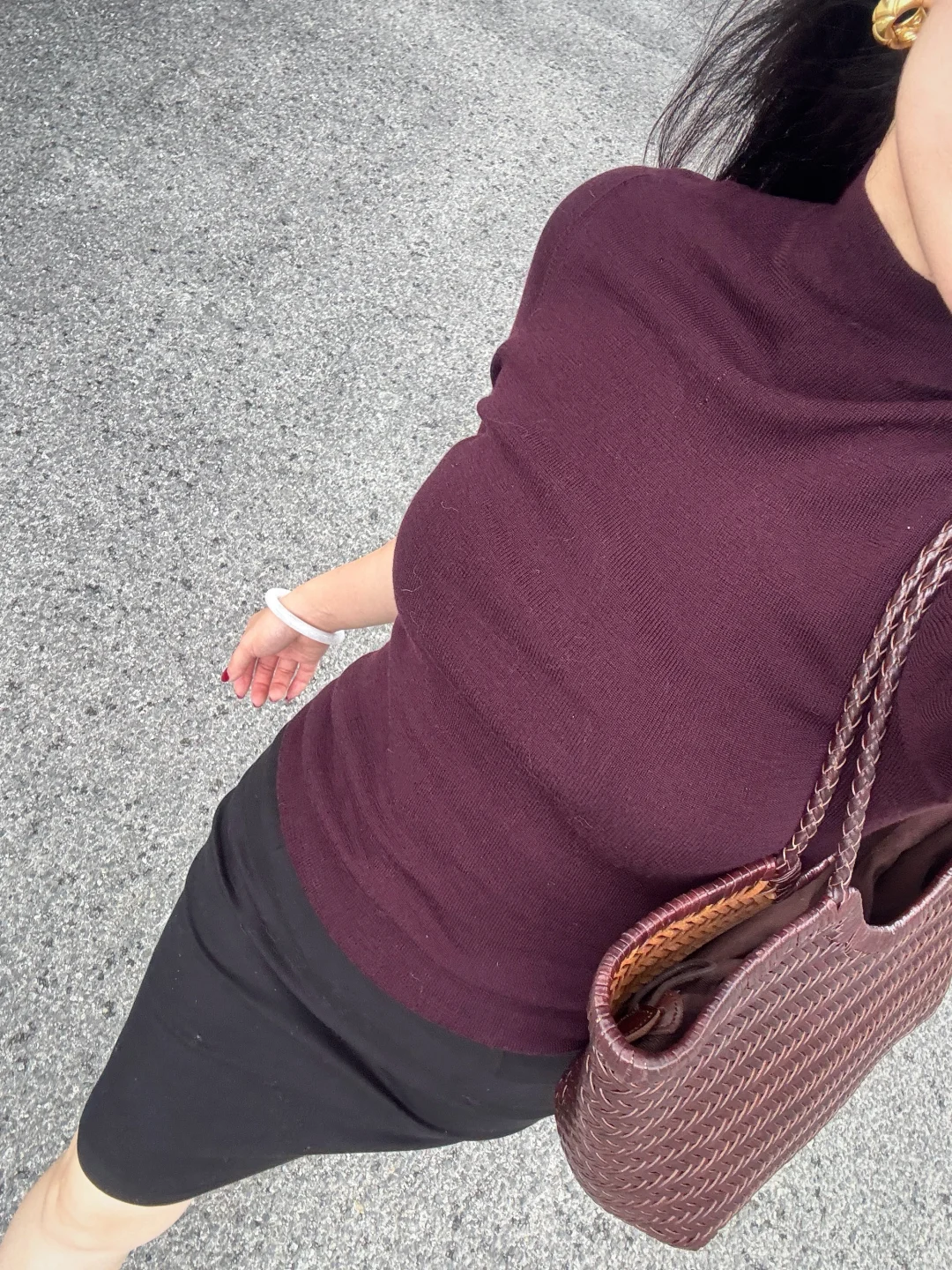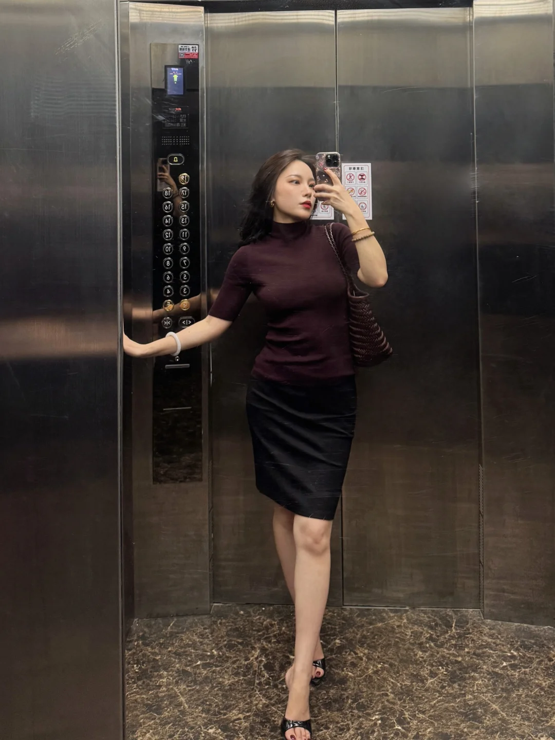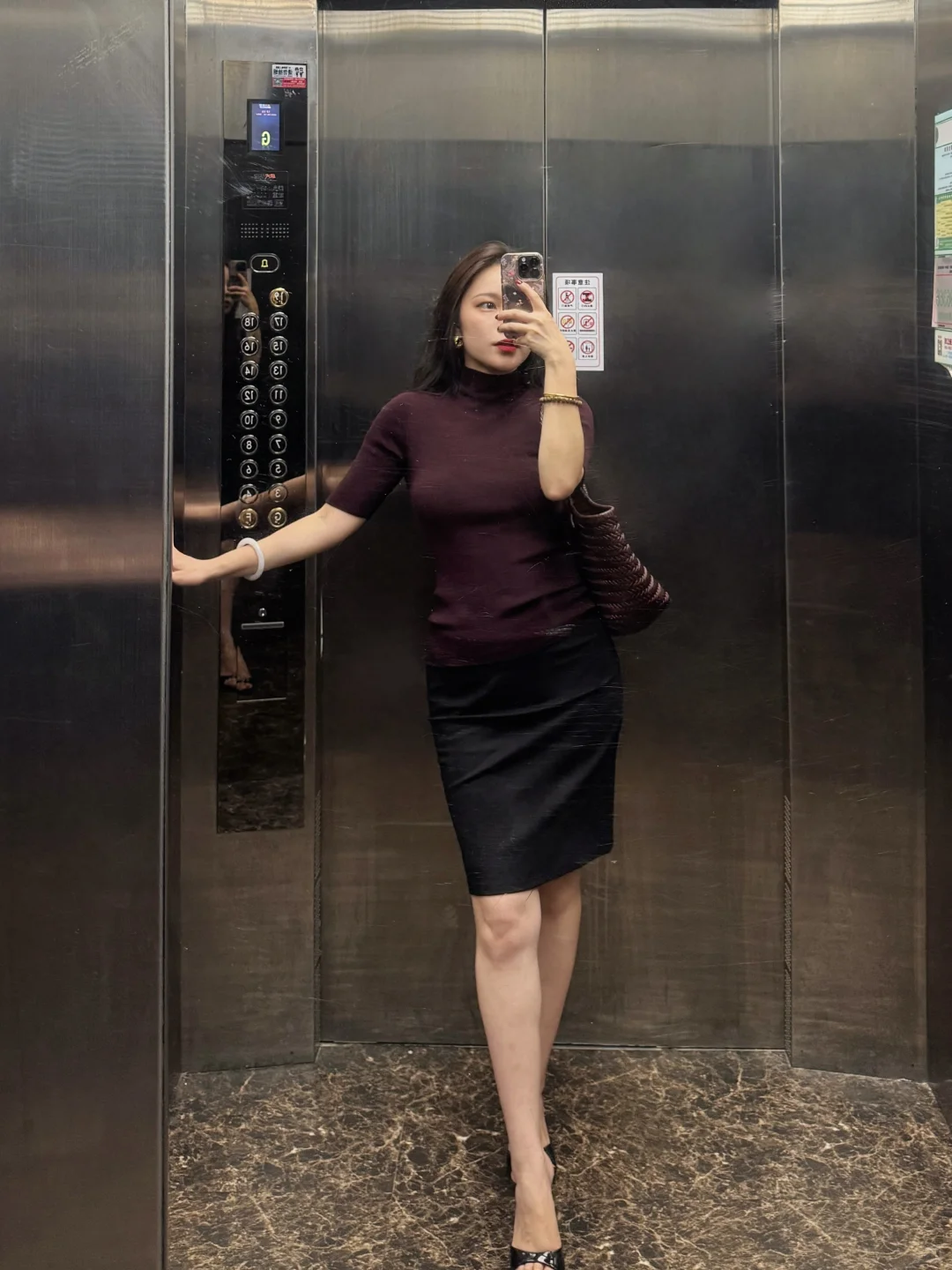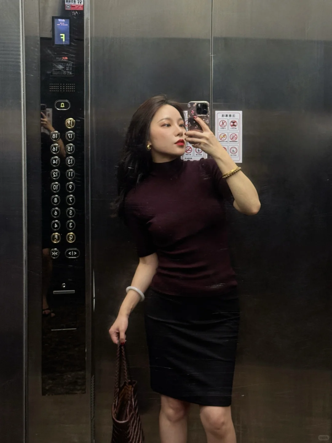 拒绝不了的古早姐感穿搭。\n立秋之后的几场雨终于带来了一点点早秋的凉意\n实穿度很高又经典不过时的针织上衣加半裙的搭配\n气质又不失女人味的暗紫色真的很有韵味啦!\n \n