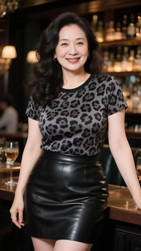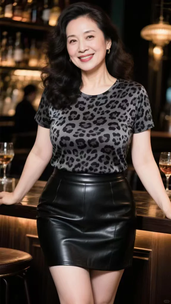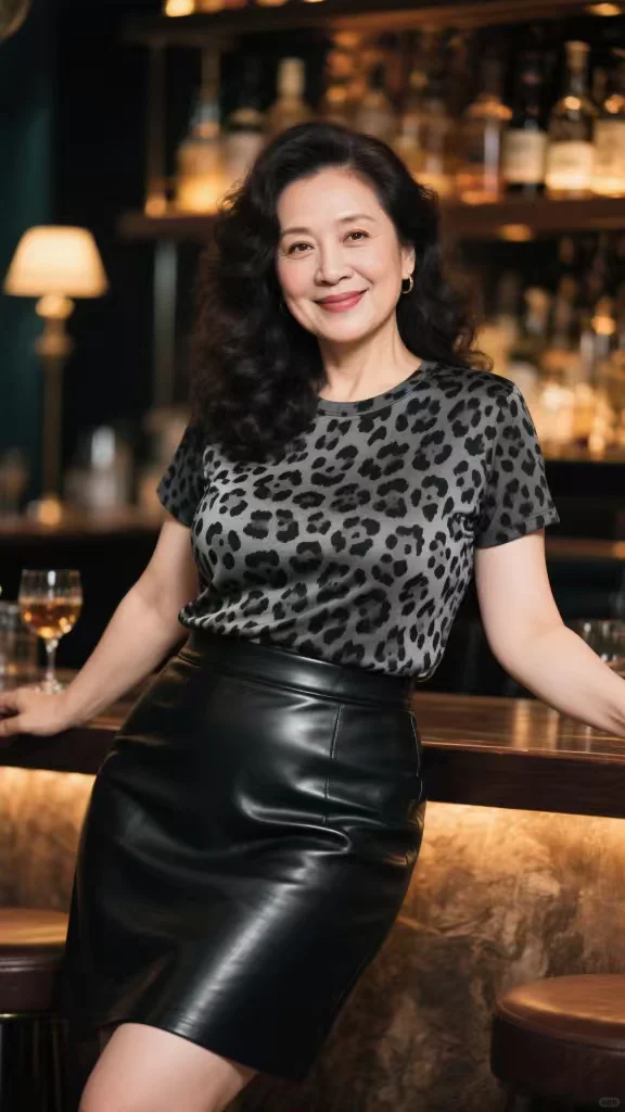 成熟范尽显,48岁的豹纹阿姨在酒吧
