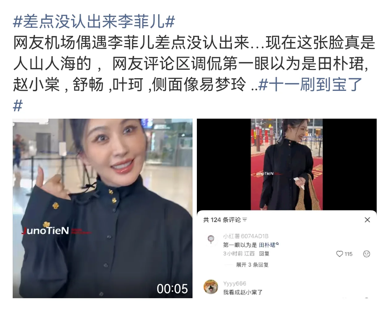 网友机场偶遇李菲儿差点没认出来,现在这张脸真是人山人海…早期真的好美\n